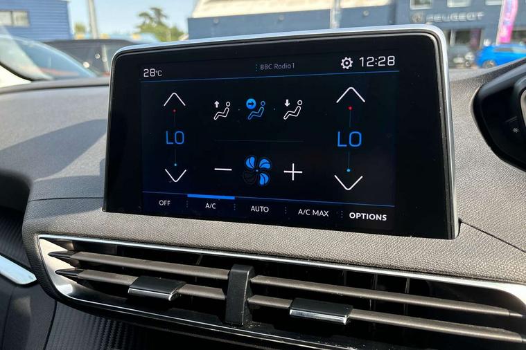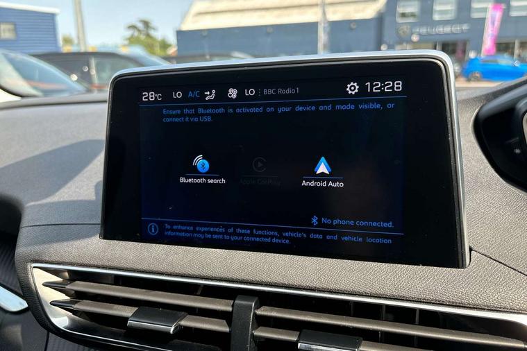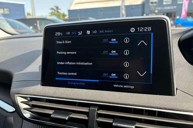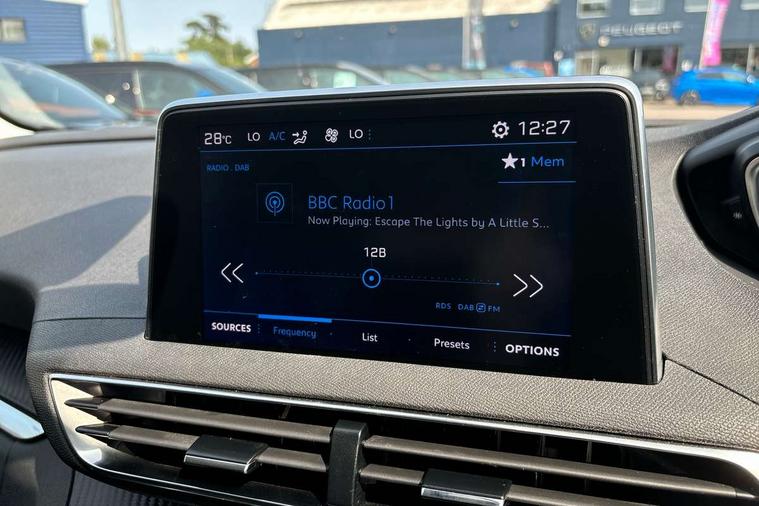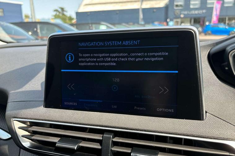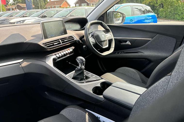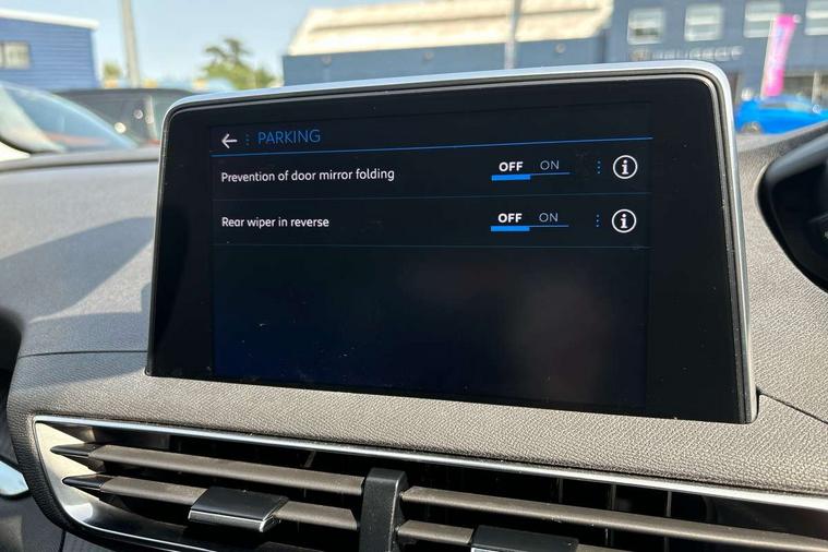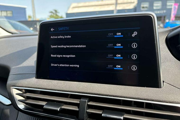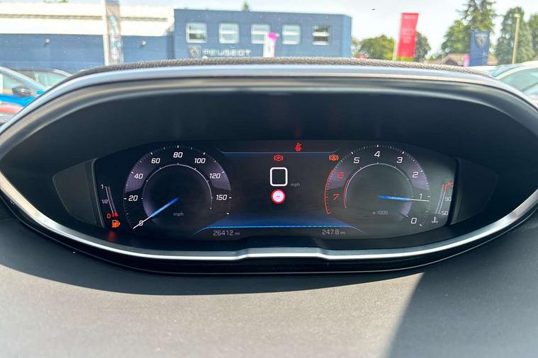 180 degree colour reversing camera, Apple car play and Android auto, Bluetooth telephone facility, Drive modes select (Eco, normal and sport), Driving Time Warning (DAA1), Emergency services call system, Extended traffic sign recognition, Exterior temperature indicator with ice warning, Lane departure warning system, Lane Keeping Assistance (LKA) with road edge detection, Multi function trip computer, PEUGEOT i-Cockpit with 8.0" capacitive touchscreen in centre console, Peugeot i-cockpit with compact multi-function sports steering wheel, PEUGEOT i-Cockpit with configurable 12.3" Head-up digital instrument panel, Programmable cruise control and speed limiter, Speed limit recognition and recommendation, Dynamic stability control and electronic anti-skid system, Stop/start function, 6 speakers radio with mp3 compatible, DAB Digital radio, USB socket, Aluminium front door sills, Aluminium longitudinal roof bars, Automatic hazard light activation upon heavy brake application, Automatic triggered rear windscreen wiper in reverse gear, Black front wing trim, Black rubber side window trim, Body colour door handles, Body colour rear roof spoiler with stainless steel edging trim, Body colour roof, Body protectors (bottom of front and rear bumpers + wheel arches + protection at bottom of doors) in black, Chrome frameless 'Classic' grille, Chrome rear bumper facia, Dark tinted rear window and rear side windows, Diamond Black door mirror shells, Door mirror mounted LED courtesy floor lighting, Eco LED headlights, Electric folding door mirrors with exterior courtesy LED lighting, Electric operated/heated door mirrors, Front and rear door sill protectors, Front bumper lower trim in Silver, Front windscreen wiper with magic wash cleaning system, Gloss black B and C pillar and aerodynamic deflector trim, Gloss black front bumper air scoops, Gloss black rear cluster connecting strip, Gloss black windscreen trim, Headlights left on audible warning, Heated rear windscreen with integrated antenna, LED daytime running lights, LED front indicator, LED rear number plate lighting, LED side indicator lights integrated into door mirrors, LED third brake light, One touch electric front/rear windows with pinch protection, Rear LED Peugeot signature 'Claw Effect' lights, Rear side wing doors, Stainless steel roof arches, 12V Sockets in dashboard, rear cabin and load area, 2 cupholders in front centre console, 2 x Rear reading spotlights, 2x Rear coat hooks, 3 seat rear bench, 3x Isofix child seat fittings in the front passenger and outer rear seats, 4 Grab handles retractable and damped, Aluminium pedals, Blue ambient lighting for connecting zone, Blue ambient lighting to headup instrument panel, Brumeo fabric trimmed door armrests, Centre front armrest with butterfly wing opening and illuminated storage compartment, Driver seat manual adjustment (longitudinal and back rest angle), Dual zone automatic climate control, Electric power steering with reach and rake adjustable steering column, Flocked glovebox interior, Front interior light with 2 reading spotlights and rear interior light with timer, Front passenger seat manual adjustment (longitudinal and back rest angle), Front seat back map pockets, Gear shift indicator, Height adjustable front seats, Illuminated glovebox, Interior lighting in storage spaces and load area, Leather steering wheel with detail stitch, Meco cloth upholstery, Rear centre console ventilation system, Roof lining - Salin light grey, Satin chrome dashboard trim, Satin chrome digital instrument panel and touchscreen trim, Satin chrome interior door handles, Satin chrome scorpion's tail and toggle switch trim, Seatbelt not fastened audible and visual alert for front seats, Seatbelt unfastened on the move audible and visual alert for front and rear seats, Single front passenger seat, Two position boot floor, Safety pack with emergency braking system - 3008, Visibility pack - 3008, 3x Rear three-point retractable seatbelts with force limiters in the outer rear seats, ABS (Anti-lock Braking System) with EBD (Electronic Brakeforce Distribution) and EBA (Emergency Braking Assistance), Adaptive driver and front passenger airbags with passenger airbag deactivation function, Driver and front passenger side airbags, Electric child locking functionality on rear windows and doors, Electric parking brake, Front and rear curtain airbags, Front optimised safety headrests and 3 x rear retractable headrests with height adjustable, Front three point retractable seatbelts with pre tensioners and force limiters, Front ventilated disc brakes and rear disc brakes, Hill start assist, Single tone horn, Automatic door locking when moving off, Electronic immobiliser, key operated exterior door lock from the left hand door, Keyless Start, Perimetric and volumetric alarm with lift and tilt sensor, Remote control central locking with two plip keys, Carbon effect Dashboard, front and rear door panel finish, 18" Detroit storm grey diamond cut alloy wheels, Puncture repair kit including compressor, sealant cartridge and towing eye,