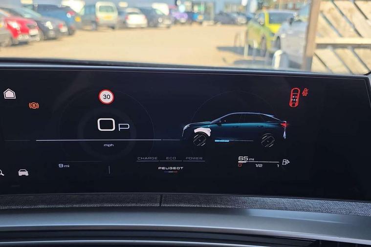 Bluetooth with two microphones (Connect up to 2 phones), Drive modes select (Eco, normal and sport) with configurable ambient lighting, Driver attention alert, Driver foot rest, Driver profile selection, E-call, Exterior temperature indicator with ice warning, Front passenger seat detection, Lane keep assist, Manual gear changes via steering mounted paddles, Multi function trip computer, Natural voice recognition, PEUGEOT i-Cockpit - 21" HD panoramic curved display incorporating instrument panel and touchscreen with 3colour themes, PEUGEOT i-connect advanced HD fully customisable touch screen, Navigation with Tom Tom Live updates and over the air map updates, PEUGEOT SOS and assistance, Rear parking sensor, Speed limit and traffic sign recognition and recommendation, Wireless mirror screen with apple carplay and android auto, Wireless smartphone charger with status light and ambient lighting, Dynamic stability control and electronic anti-skid system, 6 speakers, AM/FM bi-tuner, DAB Radio (Digital Audio Broadcasting), Peugeot customisable virtual iToggles, USB-C sockets (2 x front and 2 x rear), 3008 model designation badgers front and rear in basalt grey, Acoustic windscreen, Automatic hazard light activation upon heavy brake application, Automatic headlamp activation, Automatic windscreen wiper activation with interval wiping intensity control, Body colour floating effect rear roof spoiler, Body colour roof, Body coloured exterior door handles, Dark tinted privacy glass for rear door, Tailgate and Quarter windows, Door mirrors - Welcome lighting and integrated LED indicators, Eco LED headlights, Electric adjustable/heated/folding door mirrors, Electrochrome rear view mirror, Flat blade wipers with magic wash integrated nozzles, Front and rear electric windows with one touch, Front grille with body coloured accents, Gloss black connecting strip between rear lights, Gloss black finish B pillar, Grained black lower door claddings and wheel arches, Hybrid rear badging in basalt grey, Laminated windscreen, LED exterior lighting, LED third brake light, Lower front and rear bumper trims in meteor grey, Orbital gloss black door mirrors, Peugeot 3-claw signature front and rear daytime running lights, Rain sensor, Rear side wing doors, Rear wiper, Tailgate with heated rear window, 12V socket in front and boot, 2 cupholders in front centre console, 3 seat rear bench, 4 Grab handles retractable and damped, 4 tie down luggage rings, 40/20/40 folding rear seat backrest with fixed base, 8 colour ambient lighting, Aluminium pedals, Arch design central console with concealed storage, Cabin high efficiency filter, Central front armrest with ventilated storage compartment and LED lighting, Chrome finish interior door handles, Compact split leather mutifunction steering wheel with gloss black and satin chrom detailing, Dual zone climate control, Dynamic front seats, e-Toggle compact gear selector, Electric power steering with reach and rake adjustable steering column, Glasses storage box, roof mounted, LED boot light, LED footwell lights, LED front and rear reading lights with push button control, LED Glovebox light, LED illuminated driver and passenger concealed sunvisor mirrors, Luggage cover, Mistral black pillars and headlining, Quick launch cabin heating/cooling function, Rear air vents, RISPY embossed fabric upholstery, Roof lining - Meteor grey, Seatbelt unfastened on the move audible and visual alert for front and rear seats, Single front passenger seat, Two bag hooks, Two position boot floor, 2x Isofix child seat fitting on outer rear seats with zipped cover, 3x3 point rear seat belts, ABS (Anti-lock Braking System) with EBD (Electronic Brakeforce Distribution) and EBA (Emergency Braking Assistance), Advanced Emergency Braking System with radar (AEBS3) providing night detection of pedestrians and cyclists, Child locking functionality on rear doors, Driver and front passenger airbags with airbag deactivation function, Driver and front passenger side airbags, Electric parking brake, Front and rear curtain airbags, Front optimised safety headrests and 3 x rear retractable headrests with height adjustable, Front/rear disc brakes, Hill start assist, Post collision safety brake, Seatbelts - Front and rear outer seats with pyrotechnic pretensioners and force limiters, 2x Keys (Lock, Unlock, Boot release function with concealed key), Acoustic vehicle alert system (AVAS), Automatic door locking when moving off, Deadlocking system, Electronic code immobiliser, Exterior passenger door lock, Locking wheel nuts, Peugeot Open and Go (keyless entry and push button start), Seatbelts reminder and unfastend warning indicator, Thatcham category 1 Perimetric and volumetric alarm with anti-lift detection, Stene grey finish for dashboard, door panels and central console decors, 19" BREDA diamond cut alloy wheels with star center cap in orbital black, Michelin e-primacy class A tyres,