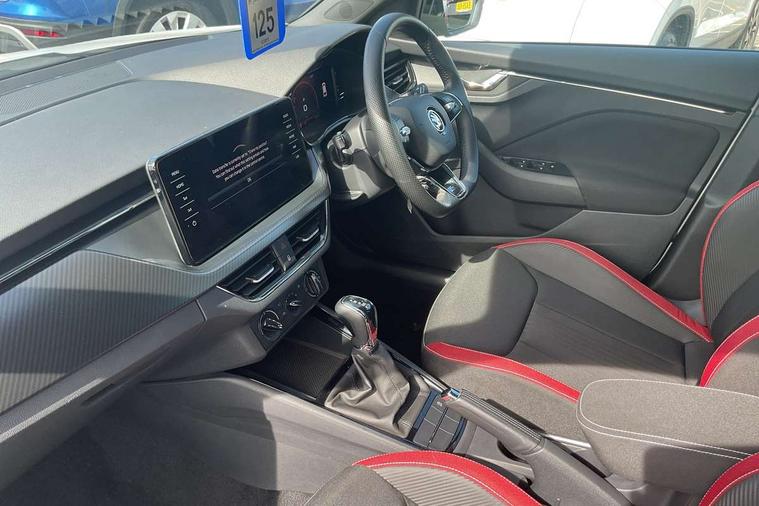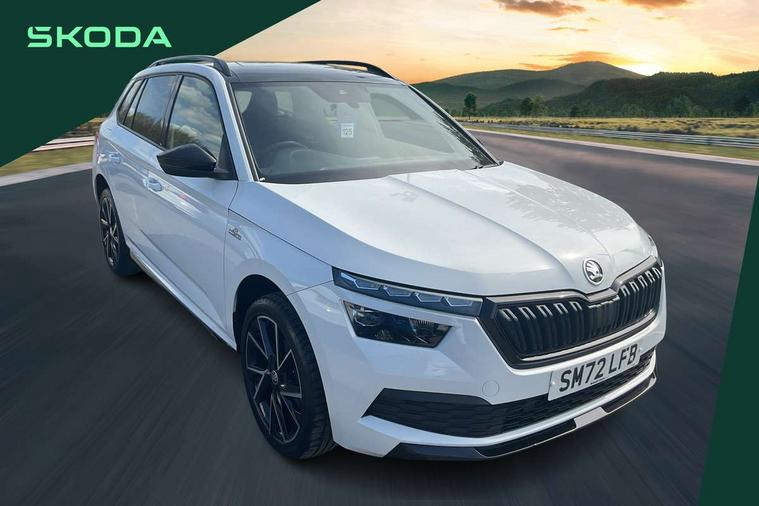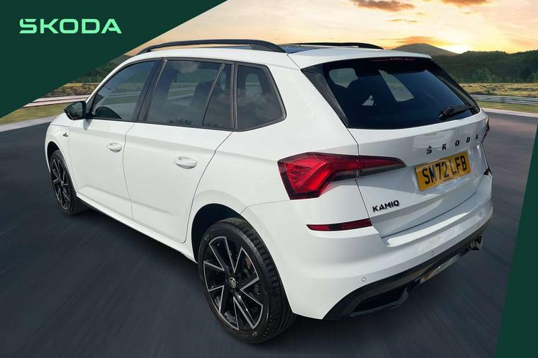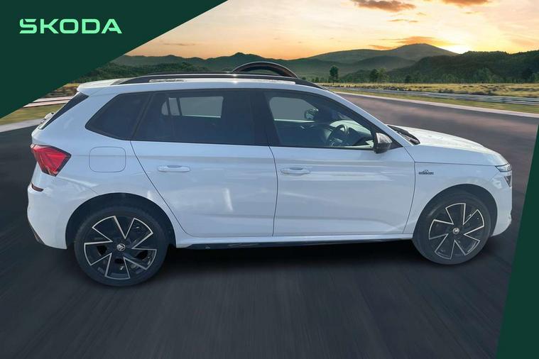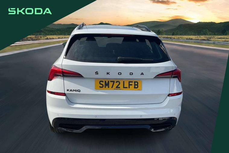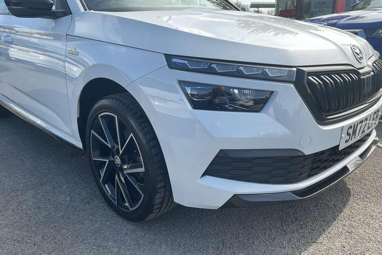 Amundsen satellite navigation with 9.2" glass colour touchscreen display, web radio, voice control and traffic sign recognition, Bluetooth system, E-call, Front assist system, Gesture control, PAS, Service indicator, Speed limiter, Wireless SmartLink for apple car play, android auto and mirrorlink, 8 Speakers, Auxiliary input socket, DAB Digital radio, Black door mirrors, Black radiator grille, Black rear diffuser, Body colour bumpers, Body colour door handles, Body colour roof spoiler, Boot lettering in black, Chrome grille surround, Dimming rear view mirror with black surround, Electrically adjustable and heated door mirrors, Fixed panoramic sunroof with black roof rails, Front and rear electric windows, Front sport bumper, Full LED headlights with adaptive front light system and front cornering fog lights, Headlight range control, Heated rear window, High functionality rear led lights with dynamic indicators, KAMIQ Door sills, LED daytime running lights, LED third brake light, Light sensors, Monte carlo plaque, Privacy glass, Rain sensor, Rear fog lights, Rear side wing doors, Rear wiper, 12V Accessory socket in centre console, 3 seat bench in 2nd row, Aluminium pedals, Black ceiling for black/beige interior, Black roof lining, Chrome inner door handles, Cloth upholstery, Front head restraints, Glove compartment with illumination, Ice scraper, Isofix child seat fittings on outer rear seats, ISOFIX on front passenger seat, Leather gear lever, Manual lumbar support for front seats, Rake/reach adjustable steering wheel, Reading lights, Single front passenger seat, Sports seats, Sun visors with illumination on front passenger, Textile floor mats, Third rear headrest, Top tether for front passenger seat, Umbrella in driver's door, 3x3 point rear seatbelts, Airbags - driver and front passenger, ESP, Front passenger airbag deactivation switch, Front side airbags with curtain airbags, Hill hold control, Manual parking brake, Manual rear child locks, One tone horn, Rear disc brakes, Seatbelt reminder for driver an co-driver, Traction control, Tyre pressure monitor, Anti-theft alarm system with interior monitoring, backup horn, towing protection and remote central locking with SAFE system, Anti-theft wheel bolts, Electronic engine immobilizer, Chrome air vent surrounds, 18" Vega alloy wheels in black,