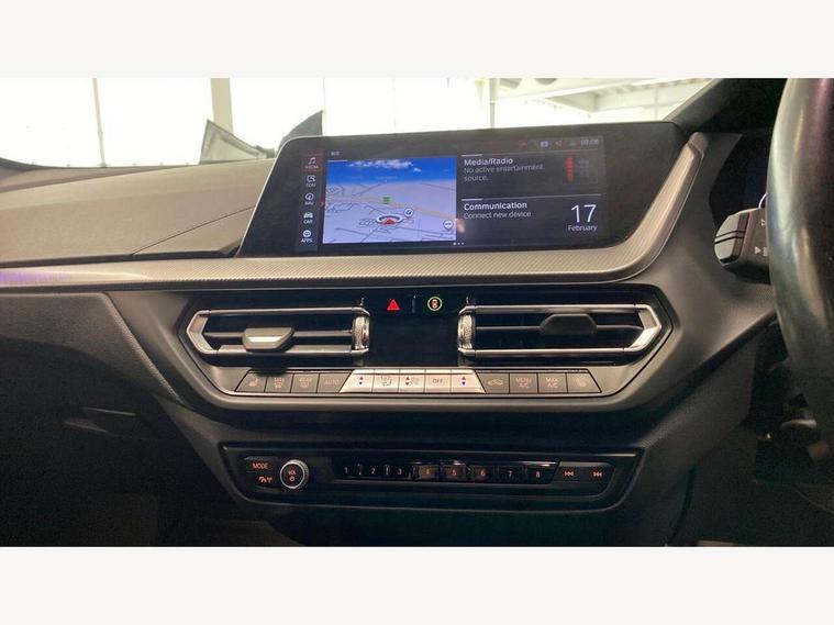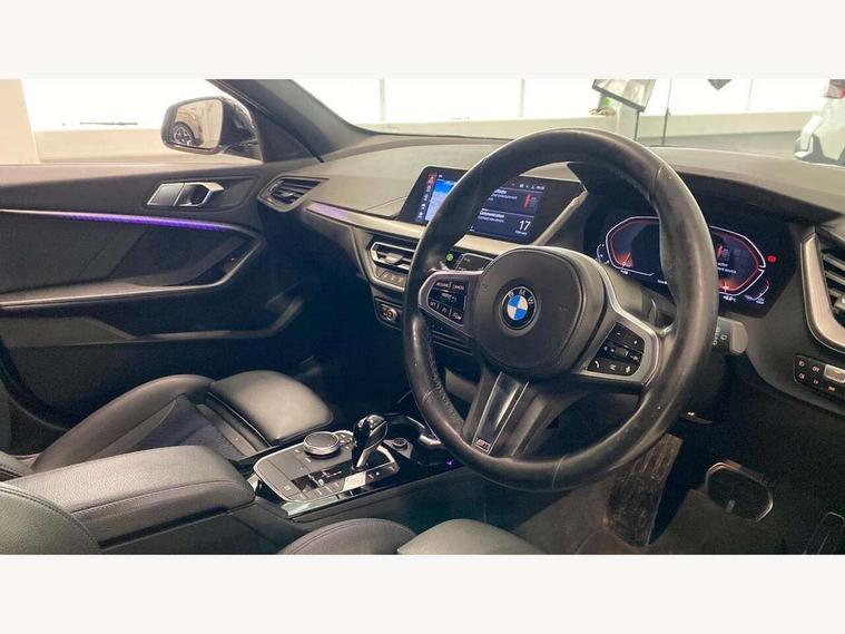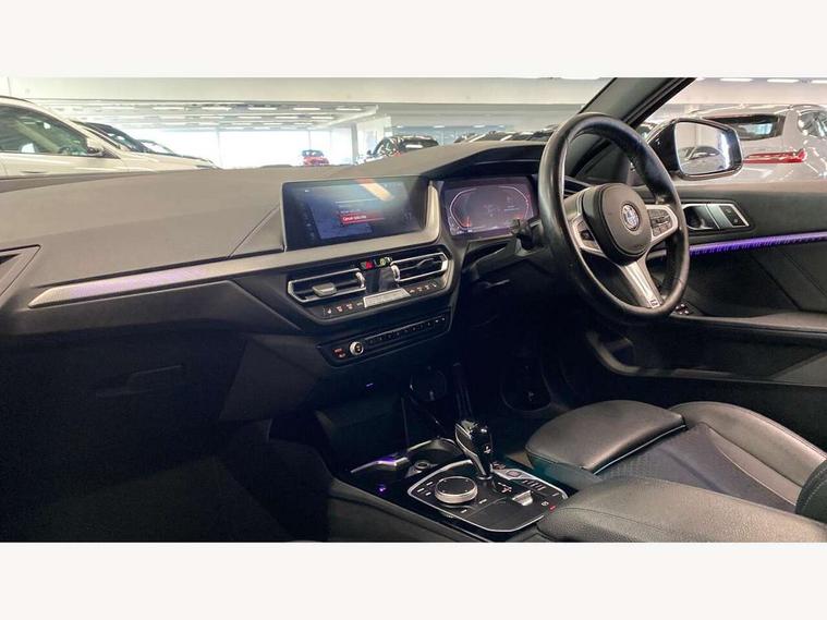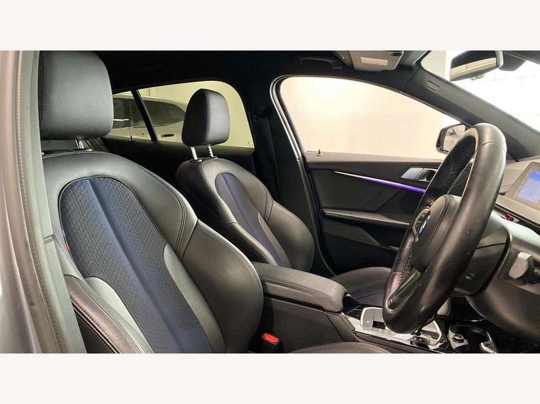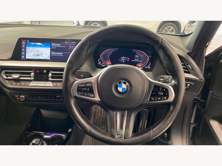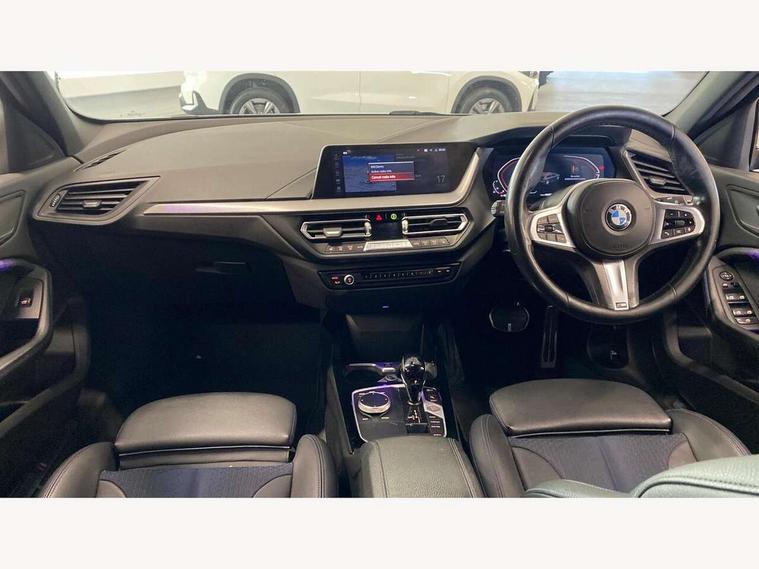 Active guard plus, Attentiveness assist, BMW ConnectedDrive online services, BMW Teleservices, Check Control warning system for monitoring of lights and door/luggage compartment open warning, Cruise control with brake assist, Eco pro mode, Front axle single joint with specific axle kinematics to minimise drive influences on steering + provide increased rigidity agile driving behaviour, Integrated owners handbook, Lane departure warning system, Oil sensor for level and grade, On board computer, Optimum shift indicator, Personal Profile, Pull away assistant, Rigidly mounted rear subframe - Multi link construction with separate spring / damper configuration and excellent driving characteristics, Speed limit Info including no-overtaking indicator, Speed limiter, Aluminium lightweight construction, Anti roll bar front and rear, Balancer shaft, Double VANOS twin scroll turbocharging system, Drive Performance Control, Electronic differential lock, High precision injection, M sport suspension, Petrol Particulate Filter, Twin tube gas filled shock absorbers with degressive characteristic curve, VALVETRONIC engine management, DAB Digital radio, Auto dimming rear view mirror, Automatic headlight beam throw control, Automatic windscreen wipers and automatic headlight, Body colour door handles, Body colour mirror caps, Body colour roof trims, Chrome 'M' logo side designation, Chrome exhaust twin tailpipes round 90mm in left, Chrome kidney grille frame with Satin Aluminium struts, Direction indicator side lights in exterior mirrors, Fading support, Folding side mirrors with auto dimming/folding wing mirrors with auto dimming, Follow me home headlights, Front and rear bumper system with replaceable deformation elements, Front and rear electric windows with open and close fingertip control, anti trap facility and comfort closing, Front door sill finishers in black plastic with M designation in metallic look, Green tinted heat protection glazing, Heated, electrically adjustable exterior mirror aspheric on driver side, convex on passenger side, High gloss shadowline window frame, Recess cover mirror frames and B/C pillar embelisher trim, High level third brake light, Integrated front windscreen with washer jets, LED daytime running lights, LED eyebrow turn indicators, LED front fog lights, LED Headlights, Lightweight engineering, Matt black air guide grilles, Matt black wheel arch trim, Model designation on electric bootlid, Nearside reverse light in rear light cluster, Preparation for high beam assistant, Rear fog lights, Rear side wing doors, Rear window wiper, Shark fin antenna, Trailer stabilisation logic, Visible VIN plate, Welcome lighting, 12V power socket in front centre console with blanking plug, 3 rear seat head restraints, 3 seat bench in 2nd row, 3 spoke sports leather steering wheel with black leather and stitching, pearl chrome decorative finish, specific M Badge, Anthracite headlining, Black boot net with lashing eyes, Cargo function on 2nd seat row, Child seat ISOFIX attachment for two outer rear seats and front passenger seat with anchorage points, Conditioned based service, Driver and front passenger seat heating, Folding rear clothes hook, Four grab handles integrated in roof lining, Front and rear door pockets with bottle holders, Front and rear side armrest integrated into door trim, Front armrest, Front sports seats, Glove compartment, Height adjustable front head restraints, Luggage compartment for bag hooks on left and right, foldable luggage compartment liner and four lashing eyelets, Manual adjust steering wheel, Multi-function controls for steering wheel, Single front passenger seat, Storage compartment in centre console, Sun visors with vanity mirrors and insert tab, Two front centre console cupholders, Two zone automatic air conditioning, Velour floor mats, Additional interior lighting pack - 1 Series, BMW live cockpit professional pack- 1 Series, Connected pack professional - 1 Series, Interior lights pack - 1 Series, M Sport exterior styling aerodynamics pack - 1 Series, 2 tone horn, 3 point seatbelts on all seats, front pyrotechnic belt tensioners, stopper and belt force limiters, rear coded belt buckles, Airbags - Front driver/passenger, front and rear curtain head protection, front side, manual deactivation of front passenger airbag, Anti lock braking system (ABS) with brake assist, BMW emergency call, Brake drying, Braking readiness, Child proof locking system in rear door, City braking function, Comfort modes, Cornering brake control, Crash sensor activating central locking release, hazard warning lights, fuel cut off, interior lighting + activation of safety battery terminal clamp, Driver and front passenger seat belt security check, Dynamic stability control + (DSC+), Dynamic Traction Control - DTC, Electrically operated hand brake including automatic hold function, Front and rear disc brakes, Seatbelt warning, Side impact protection, Tyre pressure monitoring system, Warning triangle and first aid kit, Central locking switch for all doors, fuel filler cap and luggage compartment, Deadlocking function system to all doors, Drive away locking system on all doors and luggage compartment with de-activated in iDrive settings, Locking wheel bolts, Remote control with integrated key with High-gloss Black inlay and M designation and 1 button for open/ close lock, window, open luggage compartment, Start/stop button illuminated in centre console with keyless engine start and auto start stop deactivation button, Thatcham Cat.1 alarm and immobiliser, Wheel slip limitation close to the actuator (ARB), Contrast stitching on instrument panel, Electrically powered 12V compressor, Reduced rolling resistance tyres,