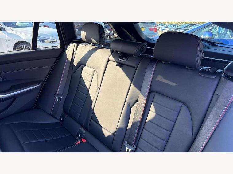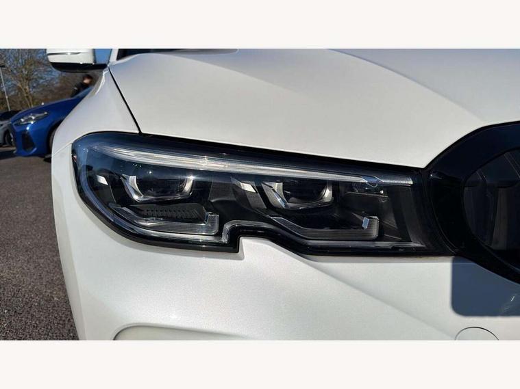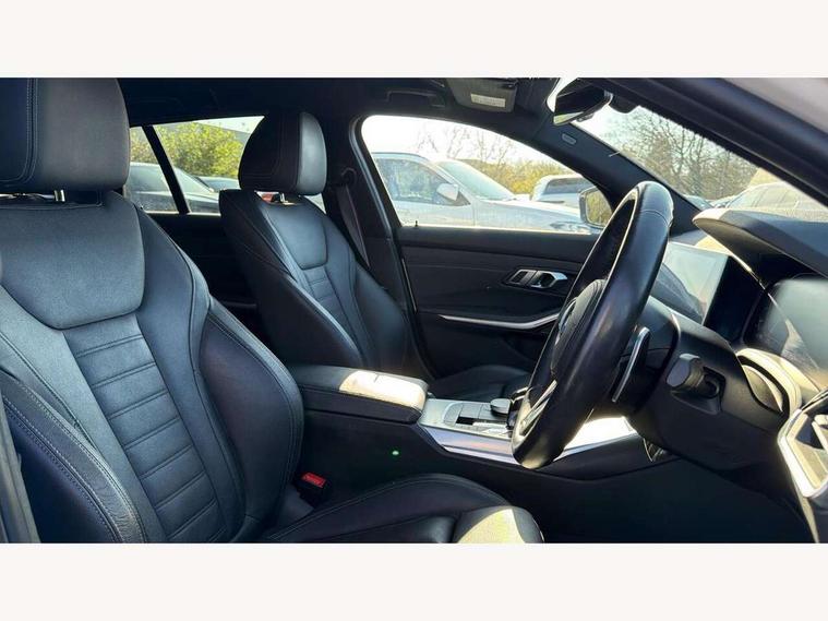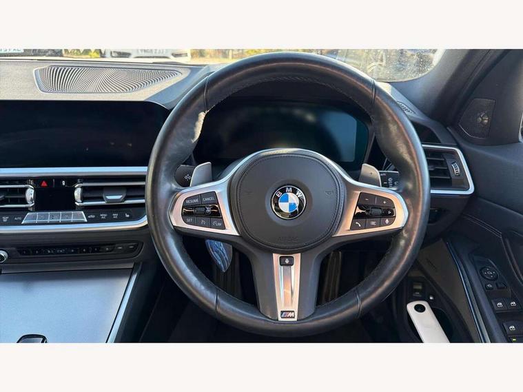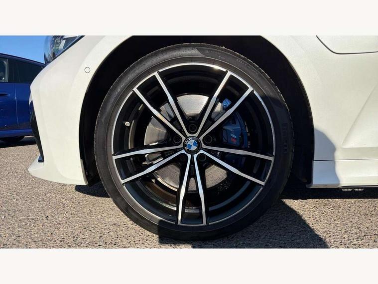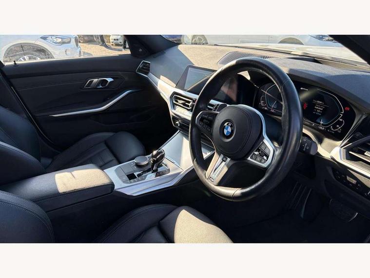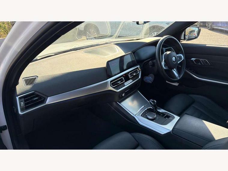 Active guard plus, Attentiveness assist, Auto start-stop, BMW ConnectedDrive oline services with BMW apps, BMW iDrive controller on centre console, BMW service history, BMW Teleservices, Brake pad wear indicator in front and rear, Check Control warning system for monitoring of lights and door/luggage compartment open warning, Condition based service, Electric power steering with Servotronic steering optimised at all speed ranges, Gearshift time display in manual mode, Instrument cluster with speedometer with mph readout, tachometer, fuel gauge and oil temperature gauge, Integrated owners handbook, Oil sensor for level and grade, warning by check control system, On board computer - average speed+fuel consumption, service interval, clock/date, odometer/trip meter, outside temperature display and ice warning, Optimum shift indicator, Personal Profile - automatic lock when driving away selectable, Balanced 50/50 weight distribution, Battery cut-out switch, Drive performance control - ECO PRO, comfort and sport modes, Electronic differential lock control (EDLC), EU6 emissions management, Sport automatic transmission with steering-wheel mounted gearshift paddles and launch control, Stroke dependent dampers, DAB tuner, Electronic service booklet, Acoustic glazing, Active airstream chrome frame kidney grille with 8 high gloss black vertical slats, Automatic headlight activation/adjustment, Automatic headlight beam throw control with load dependent regulating reaction, dynamic compensation of braking dive and acceleration squat, Black roof mouldings, Body colour door handles, Body colour fuel filler flap, Body colour mirror caps with bottom segment in matt black, Dynamic brake lights, Electric windows - front and rear, with open/close fingertip control, anti-trap facility and comfort closing, Exhaust tailpipe - split left and right, Exterior mirrors - electrically folding with anti-dazzle, Fading support, Front and rear bumper system with replaceable deformation elements, Front black door sill finishers with BMW designation, Green tinted heat protection glazing, High gloss black exterior B pillar, Interior rear view electrochromatic mirror with automatic anti dazzle function, LED daytime running lights, LED front fog lights, Lightweight engineering, M designation on front side panels, left and right, Model designation on right side of tailgate, Rear wiper, Shark fin antenna, Two part LED tailights in L-shape with components in smoked glass, brake light, LED turn indicator and rear fog light, Visible VIN plate, Welcome lights in interior and door handle area, Windscreen wipers with integrated washing jets, 12V power socket in front storage compartment, 2 front cupholder in centre console with clamping elements and matt black inlay, 3 zone automatic air conditioning, 4 pieces lashing eyelets in luggage compartment, 40:20:40 split folding rear seat with loading system, Ambient lighting with welcome carpet light, Anthracite headlining, Armrest integrated in front and rear door trim + front centre console armrest, Centred top Luggage compartment lights, Four grab handles integrated in roof lining, Front and rear door exit lighting (left / right), Front and rear door pockets, Front and rear reading lights, Front and rear velour floor mats, Front head restraints, Front sport seats, Heated driver and front passenger seats, Height adjustable mechanically and infinitely variable steering column, Illuminated armrest storage compartment, Illuminated glove compartment with separate small compartment, Interior lighting - front centre over interior mirror with soft light, rear centre and front and rear footwell lighting, Make-up mirror lights, Rear centre armrest with 2 cupholders, Rear centre console with storage compartment and ventilation grille, Sunvisors with vanity mirrors and ticket pocket, Three spoke multifunction M sport leather steering wheel, Toolkit located in luggage compartment, Connected pack professional - 3 Series Saloon/Touring, Live cockpit professional pack - 3 series, M sport exterior styling pack - 3 Series Saloon/Touring, 2 tone horn, 3 rear seats with non folding headrests, Airbags activation controlled with intensity and scope, BMW emergency call, Brake energy regeneration, Braking pre-tensioning, Child proof locking system in rear door, Child seat ISOFIX attachment rear outer seats, Coasting in idle in ECO PRO mode, Crash sensor activating of airbags, Unlocking doors, hazard warning lights, interior light, safety battery terminal, Deactivation of fuel pump in the event of a crash, Driver and front passenger side airbags, integrated in the door side seat backrest bolsters for all seat variants, Driver/Front Passenger airbags, Dry braking, Dynamic brake control, Dynamic stability control + (DSC+) - Anti-lock Braking System (ABS) with brake assist and cornering brake control + Automatic Stability Control (ASC), Dynamic Traction Control - DTC, Electric parking brake including automatic hold function and automatic release of the parking brake when driving off, Front passenger manual airbag deactivation, Head airbags for all 4 outer seats, Hill start assist, Seat belt security check for driver and front passenger, Side impact protection, Three 3 point seat belts on all seats including front belt stopper, pyrotechnic belt tensioners and belt force limiters, Tyre pressure monitoring with three level warning strategy, Ventilated front and rear disc brakes, Warning triangle and first aid kit, Alarm system (Thatcham 1) with remote control and electronic engine immobiliser, Central locking switch for all doors, fuel filler cap and luggage compartment, Remote control with integrated key one button open/close vehicle and windows, sole opening of the luggage compartment lid and panic mode, Start/stop button with Comfort Go keyless engine start and auto Start/stop deactivation button, Vehicle key with M specific designation, Reduced rolling resistance tyres,