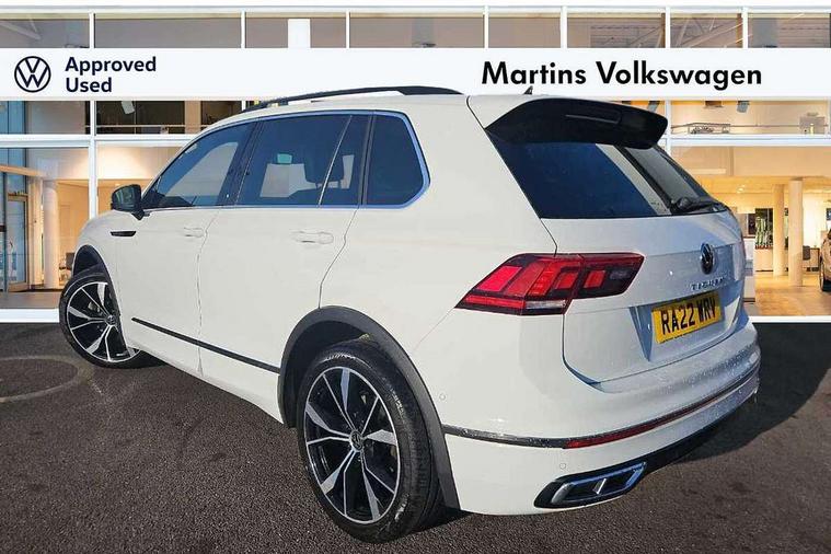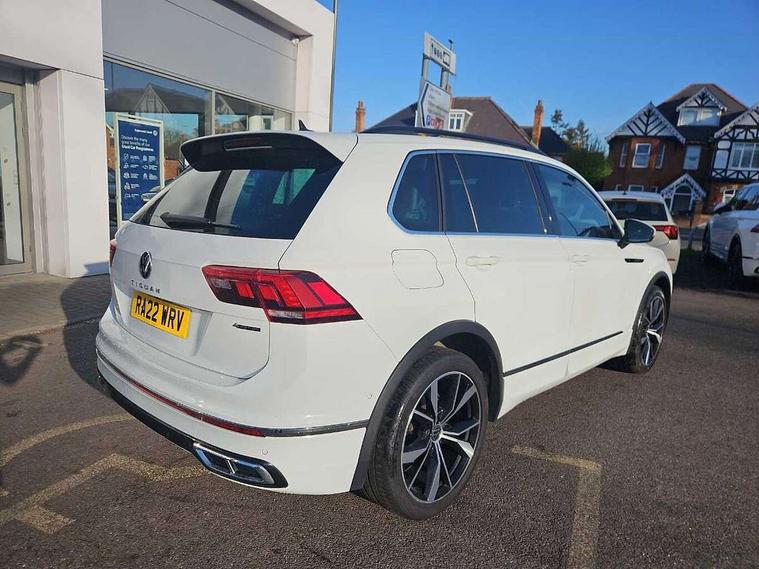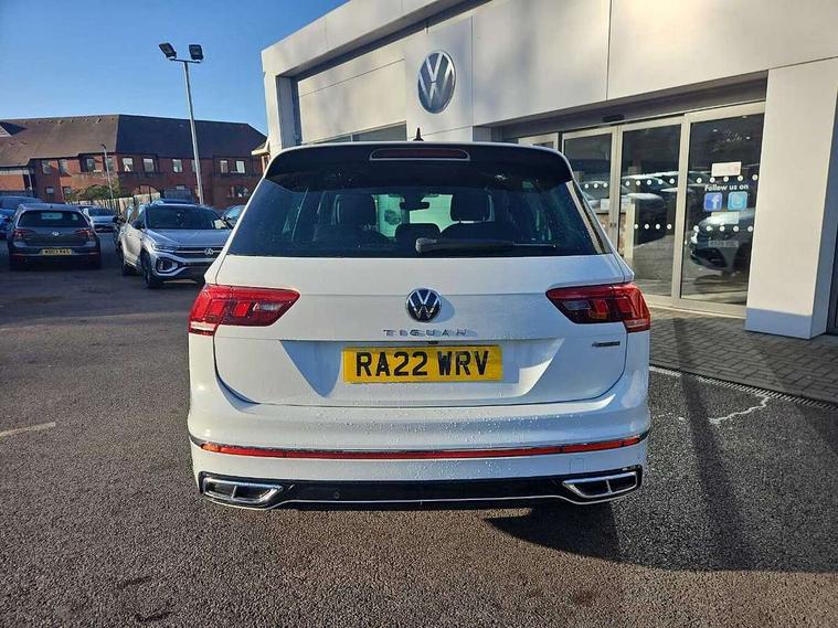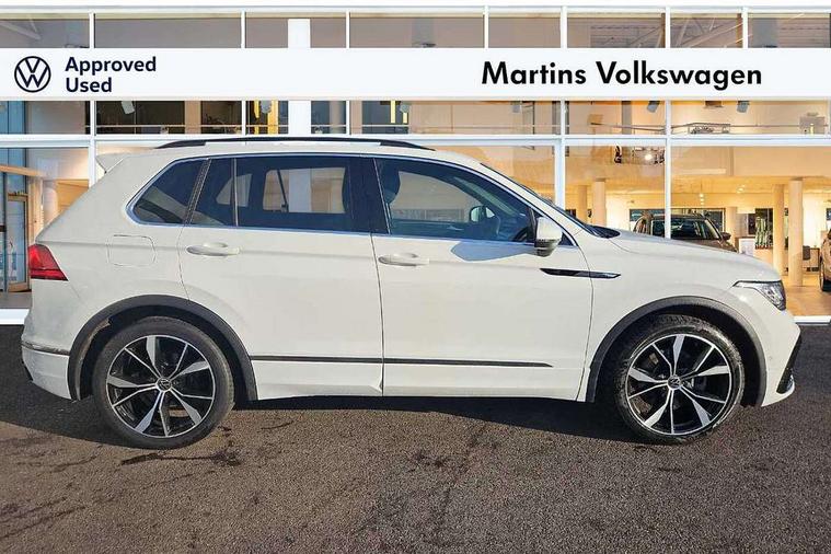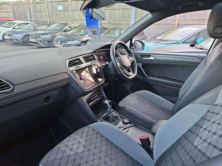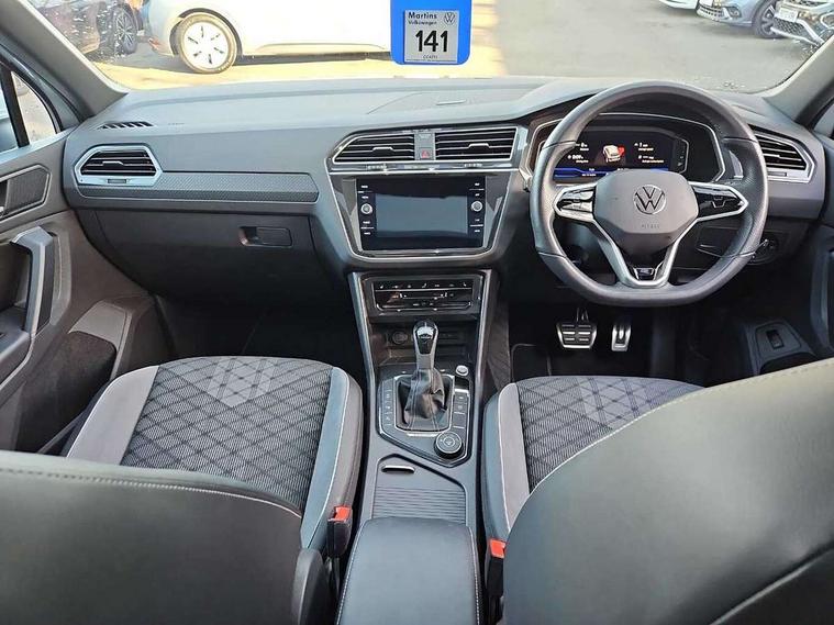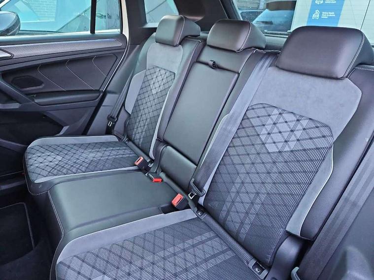 Adaptive cruise control ACC stop and go including speed limiter, App-Connect incl. App-Connect Wireless for Apple CarPlay and Android Auto, Bluetooth phone integration system, Distance control assist, Driver alert system, Driver profile selection, Dynamic road sign display, eCall emergency call system, Electromechanical speed sensitive power steering, Engine start/stop button, Lane keeping system Lane Assist, Lights on warning, Multifunction front facing camera, Outside temperature display, Premium multifunction display with multi colour display, Remote control boot opening, Rev counter, Revision / skills operating concept travel assistant, Service interval indicator, Speed limit display, Start/stop system with regenerative braking, Trip computer, Warning sound and light for doors and tailgate open, All wheel drive - 4Motion, Battery regeneration during braking, XDS electronic differential lock for improved traction and handling, 4 X 20 watt output, 8 speakers, Diversity antenna for FM reception, Radio, SD card slot, Simultaneous pairing of 2 compatible mobile devices, SMS functionality - read, compose and send SMS messages using touch-screen display, Title and cover art display, Auto dimming interior rear view mirror, Automatic headlight control system, Body colour door handles, Body coloured bumpers in R Line style, Body coloured door mirrors with integrated indicators, Chrome moldings on the side windows, Coming/leaving home lighting function, Dynamic headlight range control, Front and rear electric windows, Heated rear window, High level 3rd brake light, Laminated safety glass windshield, heat and sound insulating, LED headlamps with LED separate daytime running light and dynamic cornering light, LED rear combination lamps, LED rear number plate lights, License plate carrier in front and rear, Poor weather light and cornering light, Privacy glass for rear side windows and rear window, R Line body kit, R Line side sills, Rain sensor windscreen wipers, Rear exhaust tailpipe, Rear fog lamp, Rear side wing doors, Rear spoiler in R style, Rear windscreen washer and wiper with interval delay, Side and rear windows in heat insulating glass, Trailer Stability Programme, Unique R Line badging, Windscreen wipers/ intermittent wipe + 4 position delay, 12V outlet in center console rear and in luggage compartment, 12V outlet in front and tray, 2 cup holders in front, 2 LED front reading lights, 2 LED rear reading lights, 3 bench rear seats in 2nd row, 3 rear headrests, 4 load lashing points, 40:20:40 split folding rear seats, Air Care Climatronic 3 zone automatic climate control with enhanced air filter and controls in the rear, Backrest release for left front seat, Black headlining, Brushed stainless steel pedals and footrest, Carpet mats in front and rear with decorative stitching in Gray, Climate control unit rear with touch function, Door and side trim panel in foam film, insert in leatherette, Front centre armrest, Front footwell illumination, Front seats head restraints (x-adjustment), Height adjustable front seats, Height/reach adjust steering wheel, Instrument lighting white adjustable panel illumination, Interior light with delay, Isofix Preparation 2 Rear child seats, Leather gear knob, Lockable cooled glovebox, Luggage compartment lighting, Luggage net, Rear bench seat asymetrically split folding, longitudinally movable and folding with load-through hatch and center armrest, Remote unlocking for rear seat backrest, Removable luggage cover, Removable rear headrests, Safety optimised front head restraints, Single front passenger seat, Sliding/reclining rear seats, Standard rear seat release, Storage compartment in driver's door, Storage compartment in passenger's door, Storage compartment in rear doors, Storage compartments in luggage area left and right, Storage tray on dashboard, Sun visors with illuminated vanity mirrors, Tool kit, Top front comfort seats, Variable boot floor, height adjustable and removable, Driver assistance pack plus - Tiguan DSG, 3 point seat belt for centre rear seats, 3 point seat belts with seat belt pretensioners for the outer rear seats, Active bonnet, Curtain airbags for front and rear passengers, Driver/Front Passenger airbags, Drivers knee airbag, Electronic parking brake with auto hold, Electronic Stability Control with driver steering recommendation, ABS, ASR, EDL, EDTC and trailer stabilization, Front assist with autonomous emergency braking (for Adaptive Cruise Control ACC up to 130 mph), Front disc brakes, Front passenger airbag deactivation, Front side airbags, Height adjustable front 3 point seatbelts + pretensioners, Hill hold control, Manual child proof rear door locks, Pedestrian monitoring system, Power assisted brakes, Proactive passenger protection system in combination with front assist, Rear disc brakes, Rigid safety cell with front and rear crumple zones, Two tone horn, Warning sound and light for front seat belts if unfastened, Anti theft alarm system with interior monitoring, backup horn and towing protection, Anti theft wheel bolts, Electronic engine immobiliser, 20" Misano black with diamond turned surface alloy wheels with Airstop tyres,