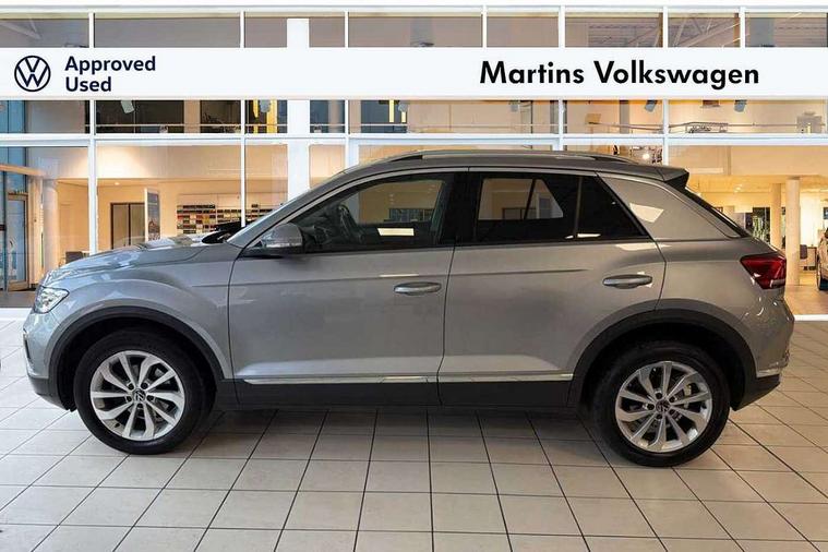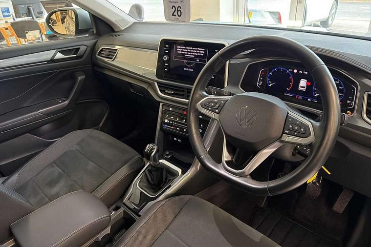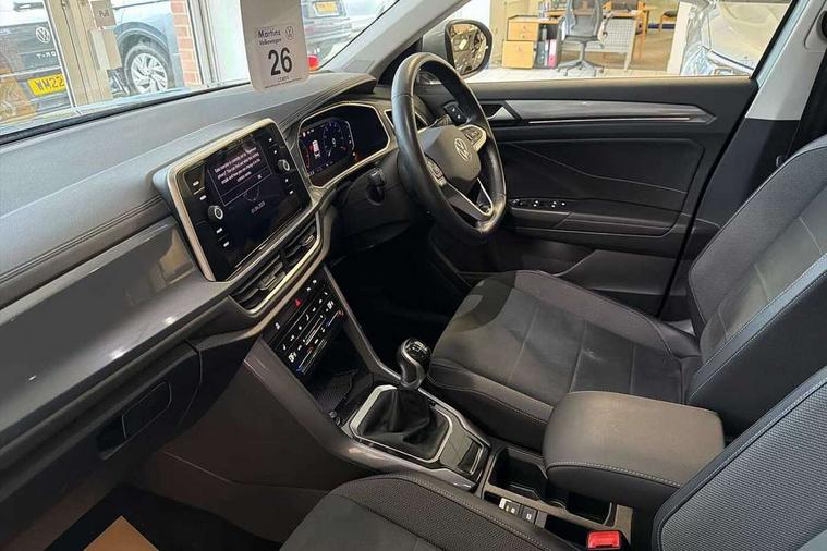 10.25" Digital cockpit pro, Bluetooth mobile phone interface, Driver alert system with fatigue detection, Driver tips and journey analysis, Dynamic road sign display, Emergency call service, Lane keeping system Lane Assist, Modified key software - reduce switch off time for key status change to Long no motion, Online services, Park assist including front and rear parking sensors, Power assisted speed sensitive steering, Service interval indicator, Tailgate/trunk lid release from outside, Think blue trainer driver tips and journey analysis, Warning sound and light for front seatbelts unfastened, Wireless app connect, Battery regeneration during braking, Front shock absorption, Rear shock absorption chassis with increased ride height, Start/stop function with battery regeneration, Diversity antenna for FM reception, Front and rear 6 speakers, Music playback - MP3, WMA and AAC files, Premium USB cable in choice of either Apple or Android smartphone compatibility, SD card slot, Simultaneous pairing of 2 compatible mobile devices, Title and cover art display, We Connect and We Connect Plus functionality, 3rd brake light, Auto dimming interior rear view mirror, Automatic hazard lights activation under emergency braking, Automatic headlight control with LED separate daytime running lights with coming/leaving home function, Body colour sports bumpers with silver metallic underbody fascia, Dynamic headlight range control with self adjusting whilst driving, Extended roof spoiler, Exterior mirrors aspherical on driver side, convex on front passenger side, External USB type C socket and charging sockets, Front windscreen wiper with intermittent wipe and 4 position delay, Heated rear window, LED Plus headlamps, LED rear combination lamps, LED rear number plate lights, LED tail lamp rear comination lamps, Light mode for poor weather, rain, fog or snow, Power windows with comfort operation and circuit breaker, Rain sensor, Rear exhaust tailpipe, Rear fog light on one side and reversing lights on both sides, Rear side wing doors, Rear wash/wipe with intermittent wipe setting, Remote electrically foldable door mirrors, puddle lights and reverse activated passenger's door mirror, 12V power socket in centre console, 3 rear head restraints, 3 seat bench in 2nd row, 4 load lashing points in luggage compartment, Air care climatronic air conditoning system with active combination filter and 2-zone temperature control, Chrome plated radiator grille inserts, air vent surrounds and light switch surrounds, Door and side trim panel with leatherette insert, Drawer under drivers seat, Front + rear carpet mats, Front centre armrest, Front comfort sports seats, Front cupholders x 2, Front footwell illumination, Instrument lighting, white adjustable panel illumination, Interior ambient lighting and surround lighting, Interior light delay, Isofix child seat preparation, Leather gearshift handle, LED interior light with switch off delay/dimmer and 2 front/rear LED reading lights, Load-through provision with cup holder when folded down ('Unsplit rear seat bench, split folding backrest, with centre armrest), Luggage compartment lighting, Non-folding front passenger seat backrest, Single front passenger seat, Storage compartment in left and right luggage area, Storage compartment in rear doors, Storage compartments in driver and front passenger doors, Sunvisors with illuminated vanity mirrors, Variable boot floor, height adjustable and removable, Driver assistance pack without proactive passenger protection - T-Roc, 3 point height adj front seatbelts + pretensioners, 3 point seatbelts in outer rear with ECE label, ABS, Child locks on rear doors, Driver and front passenger airbag with front passenger airbag deactivation, Driver and front passenger safety-optimised head restraints, Drivers seatbelt reminder, Electronic parking brake, Electronic Stability Control (ESC) inc EDL (Electronic Differential Lock) and ASR (Traction Control), Front and rear passengers curtain airbag system including front side airbags, Front assist with city emergency braking and pedestrian monitoring, Front disc brakes, Front seat side impact airbags, Predictive pedestrian protection, Rear disc brakes, Single tone horn, Tyre pressure loss indicator, Volkswagen roadside assistance, Alarm with interior protection, Anti-theft alarm system with interior monitoring, backup horn, and towing protection, Remote central locking with SAFELOCK, radio remote control with 2 remote control folding keys, Trims for alloy wheels,
