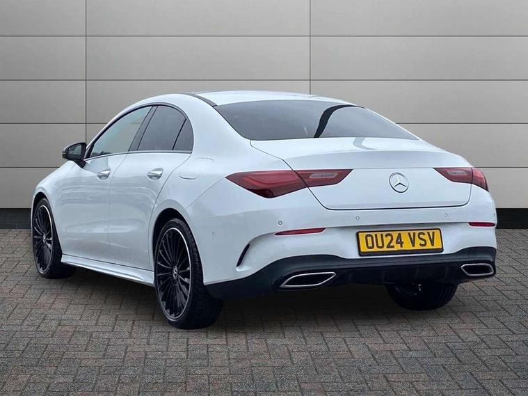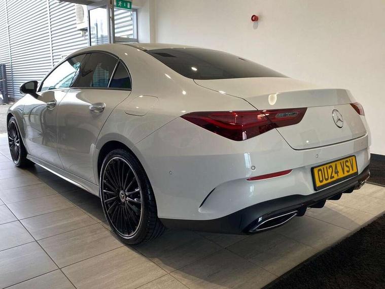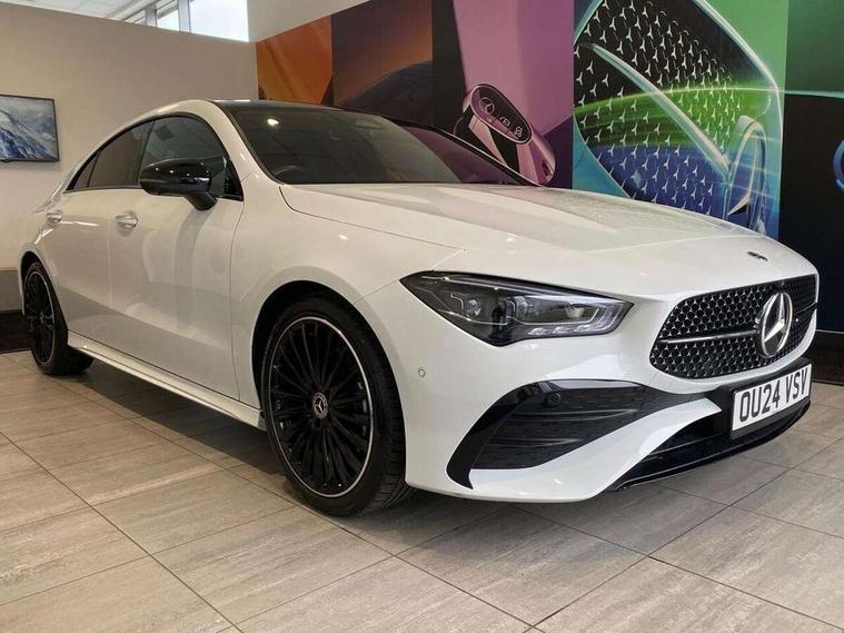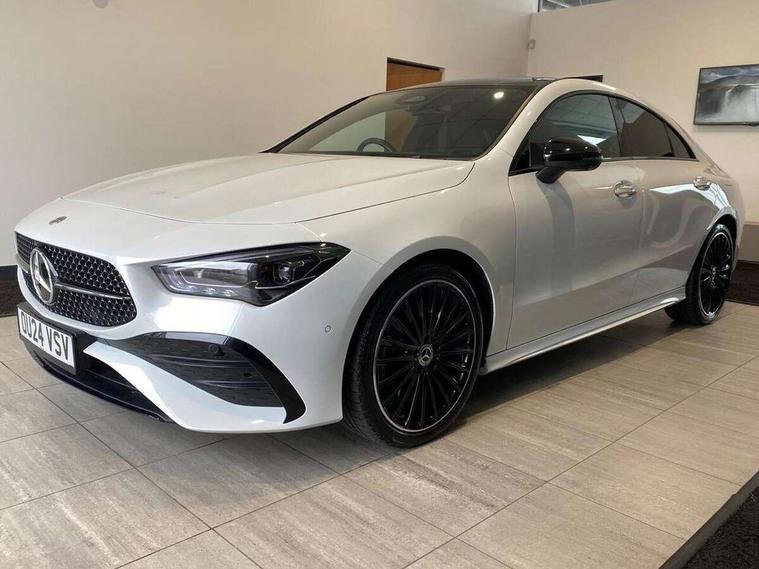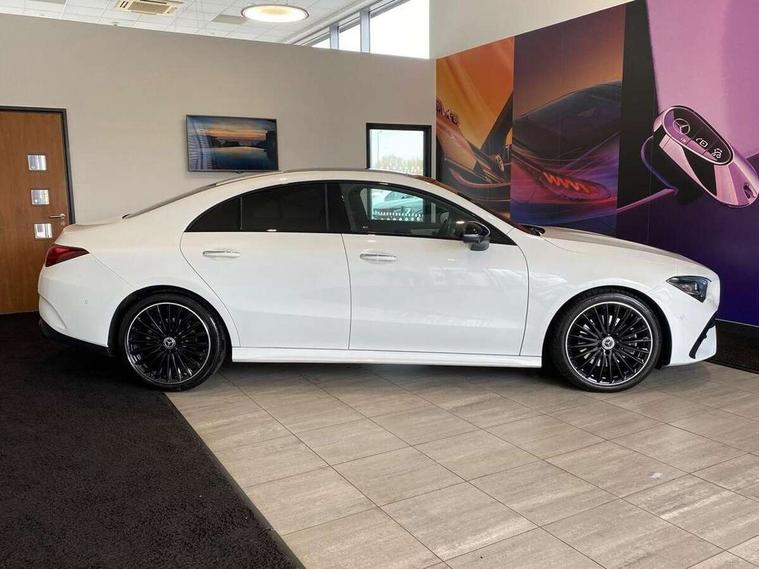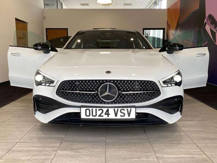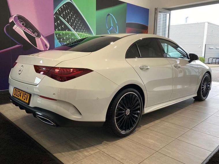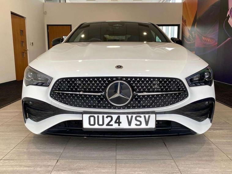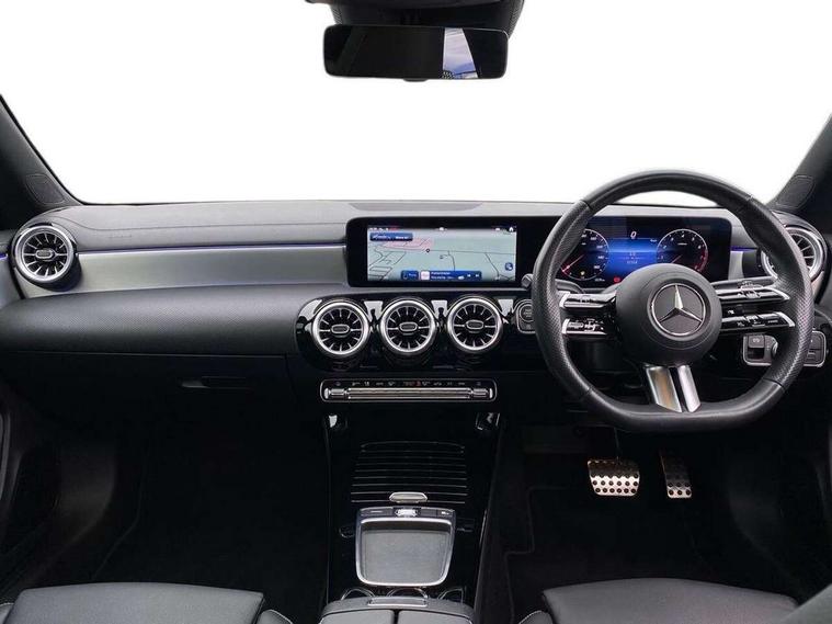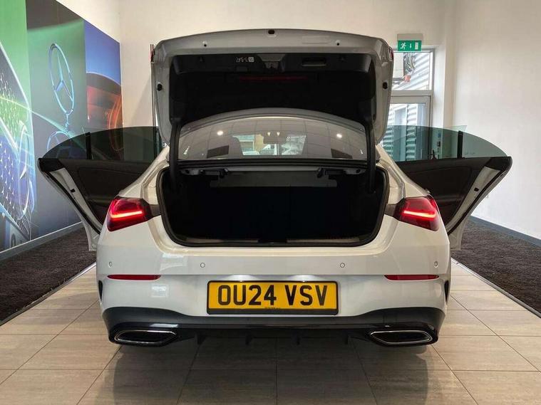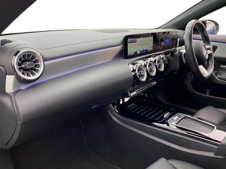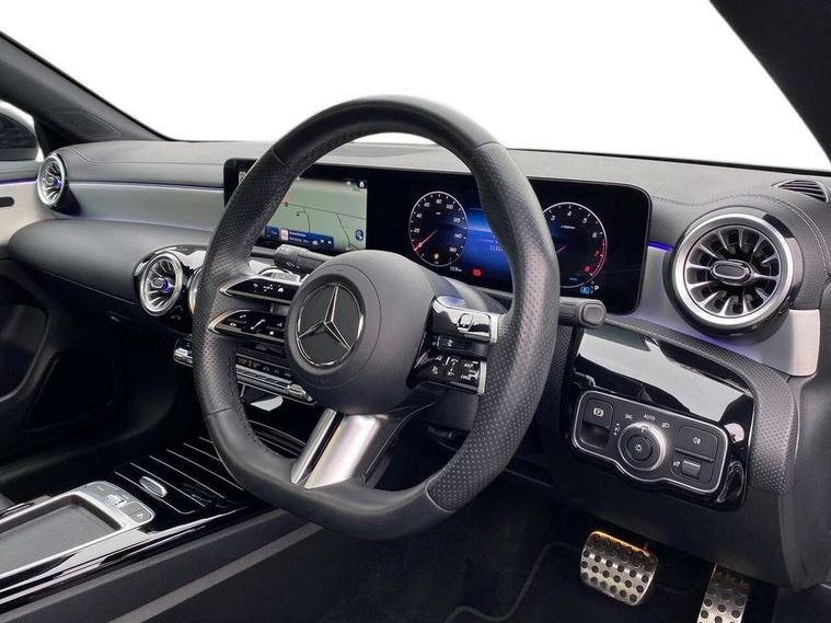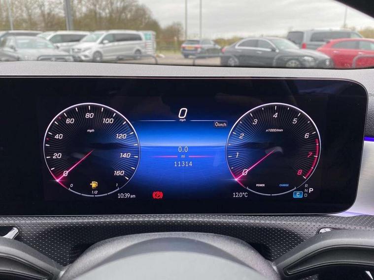 10.25 inch Instrument display with digital cockpit, 10.25 inch touchscreen central media display, Active lane keeping assist, Attention assist - Monitors steering behaviour and long journey fatigue, Bluetooth connection, Car wash mode, Cruise control with limiter, Direct steer system, DYNAMIC SELECT with a choice of driving modes (ECO, Comfort, Sport and Individual), ECO start/stop function, Fluid level warning indicator for fuel, oil, coolant and washer fluid, Hard-disk navigation, Hey Mercedes Voice activation, Lamp failure indicator, MBUX augmented reality for navigation, Mercedes me connect including emergency call system, accident recovery, breakdown and maintenance management, Mercedes me remote services, Outside temperature gauge, Owners manual in English, Pre-installation of private car share, Radio aerial integrated into front and rear windshields, Service indicator (ASSYST), Smartphone integration with Apple CarPlay and Android auto, Traffic sign assist, Trip computer in multifunction display with current consumption indicator, Wireless charging in the front centre console, Comfort suspension with ride height lowering, Rear axle multi-link, DAB digital radio tuner, MBUX multimedia system, Mercedes Benz advanced sound system (225 W) with 10 speakers, 1 central speaker, speakers on doors, a tweeter on door, one sub woofer + boost amplifier, Pre installation for Mercedes Benz Link, Adaptive brake lights, AMG body styling with AMG front apron and rear apron and visible exhaust tailpipe in chrome trim elements, Body colour door handles, Electric panoramic sunroof with automatic tilt and convenience closing fuinctions, rain sensor auto closing and electronic roller sunblind, Electric windows, Electrically adjustable and heated door mirrors with integrated LED indicators, Exhaust system with 2 Visible tailpipe trim elements and rear apron with trim in chrome, Hand free access, Headlamp assist automatic headlamp activation, Heated glass rear windscreen + timer control, High gloss beltline strips, High level LED third brake light, Integrated LED daytime running lights, Interior mirror with black reading lamps and frameless, LED tail lamp, Multibeam LED headlamps with adaptive highbeam assist plus, Privacy glass with dark tinting on rear side windows and rear window, Radiator grille with Mercedes-Benz pattern in chrome and central Mercedes star, single louvre in high-gloss black with chrome inserts, Rain sensing windscreen wipers with two sensitivity settings, Rear boot, Rear fog lamp, Rear side wing doors, Variable front intermittent wipers, 3 seat bench in 2nd row, 3 twin spoke flattened multifunction steering wheel in nappa leather - horizontal twin spoke in high gloss black, vertical twin spoke in silver chrome, 40:20:40 split folding rear seat backrests, Air conditioning - Two zone thermotronic luxury automatic climate control with display, Air vents with surround in silver chrome, Automatic child seat recognition sensor, Black roof lining, Brushed stainless steel sports pedals with rubber studs, Electrically adjustable front memory seats including 4 way lumbar support, Floor mats with stitched AMG lettering, Fluorescent jacket, Front centre armrest with stowage, Galvanished gear shift paddles in silver chrome, Heated front seats, Illuminated front door sills with Mercedes Benz lettering and changeable cover, Interior lighting - 64 colour Ambient lighting, Luggage net on driver/front passenger seat backrest, Manually height and reach adjustable steering column, Rear armrest with two integral cup holders for drinks, Rear head restraints, Single front passenger seat, Sport seats with fixed head restraints, Stowage compartment in centre console with retractable cover, Sunvisors with illuminated vanity mirrors, Twin front cupholders, Two outer rear seat isofix and top tether child seat fixing points, Drive parking assist pack with 360 degree camera - CLA, Keyless go comfort pack - CLA, Light and sight pack - CLA, Mirror pack - CLA, Night package - CLA, Seat comfort pack - CLA, USB package plus - CLA, Active bonnet pedestrain safety measure which detects an impact and raises bonnet by 65mm, Adaptive brake assist with hold function and hill start assist, Anti lock braking system (ABS) with brake assist, Black seat belts, Bonnet with power domes, Brake calipers with Mercedes-Benz lettering, Brake pad wear warning indicator, Childproof locks manually operated for rear doors and electrically operated for rear power windows, Crash responsive emergency lighting, Driver and front passenger head and sidebags, Driver and front passenger windowbags, Drivers knee airbag, Dual stage driver and front passenger airbags, Electric parking brake, Electronic stability programme with acceleration skid control, ESP curve dynamic assist, Exit warning, Front and rear seatbelt reminder, Front passenger seat occupancy sensor, Perforated front brake discs, Sports braking system, Three point rear seat belts, Tyre pressure monitoring system, Warning triangle and first aid kit, Alarm system with immobiliser and interior protection -Thatcham category 1, Guard 360 deg vehicle protection - tow away protection with visual, acoustic warning, interior monitoring, preinstallation for parking damage, Remote central locking and crash sensor with emergency opening function, Light aluminium with longitudinal grain interior trim, 19" AMG multi-spoke black painted light alloy wheels with high sheen rim finish, Summer tyres, Tirefit tyre sealant kit,
