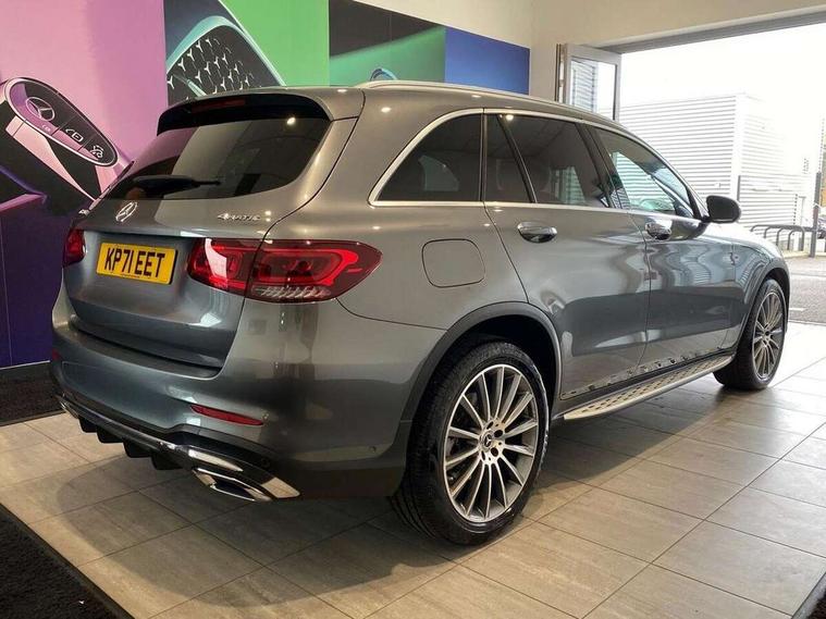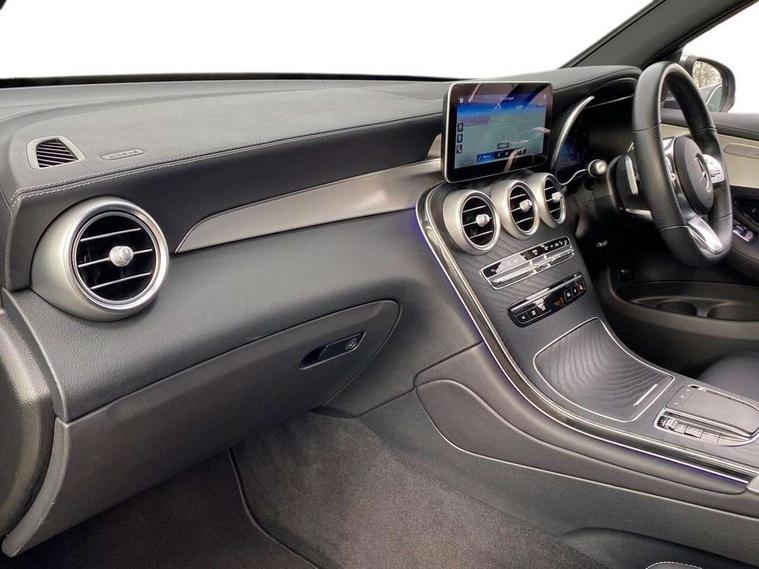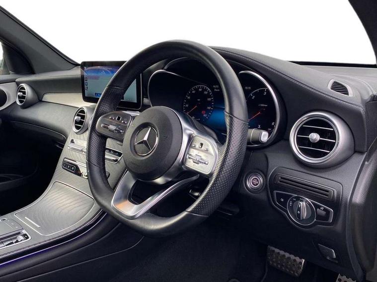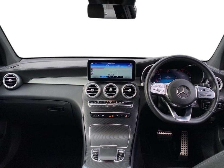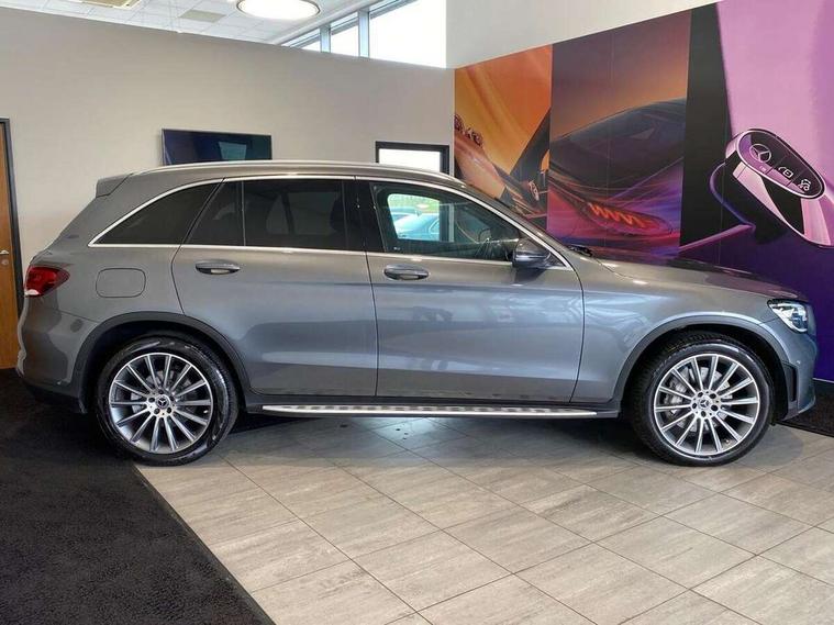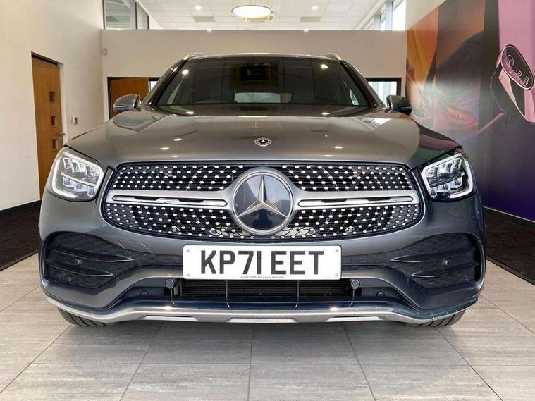 Active parking assist with parktronic system, Attention assist, Bluetooth interface for hands free telephone, Collision prevention assist plus, Cruise control with speedtronic variable speed limiter, Direct steer speed sensitive steering, DYNAMIC SELECT with a choice of driving modes (ECO, Comfort, Sport, Sport+ and Individual), Easy pack automatic powered tailgate, ECO start/stop function, Hard disk navigation, Hey Mercedes Voice activation, Instrument cluster with12.3-inch digital instrument cluster display. High resolution instrument cluster screen with choice of three display styles, MBUX Interior assistant, Mercedes connect me with remote online services, Multi function trip computer, Outside temperature display, rear seatbelt status indicator, Remote boot release, Reversing camera, Service indicator (ASSYST), Smartphone integration with Apple CarPlay and Android auto, Traffic sign assist, 4MATIC permanent four wheel drive, 66 litre fuel tank, 9G TRONIC plus automatic transmission with steering column gear selector, DIRECT SELECT steering wheel gearshift paddles, Diesel particulate filter, Sports suspension tuned for improved handling and driving dynamics, 5 speakers, Frontbass loudspeakers, MBUX multimedia system with DAB digital radio and touchpad, Media display 10.25-inch touchscreen display, Pre installation for Mercedes Benz Link, USB ports x 2 in centre console, Adaptive brake lights, Aluminium roof rails, AMG bodystyling - AMG front apron with sporty air intakes and chrome trim element, AMG diffuser-look rear apron with insert in black, Body colour door mirrors, Body coloured bumpers, Electric windows one touch open/close, Electrically adjustable and heated door mirrors, Front, side and rear exterior chrome trim, Headlamp assist automatic headlamp activation, High level LED brake light, LED high performance headlamps with integrated LED daytime running lights, LED tail lamp, Motor way mode function and locator lighting, Privacy glass with dark glass from B pillar backwards, Radiator diamond grille, Rain sensor windscreen wipers, Range adjustable headlights, Rear side wing doors, Rear wiper, Roof spoiler, Running boards, Tinted glass all round with single layer safety glass, Tinted rear windows, Two chrome plated tailpipe trim elements, Variable front intermittent wipers, 2 way rear head restraints, 3-spoke multifunction sport AMG steering wheel in black nappa leather with flattened bottom section, chrome insert and perforated leather in grip area, 40:20:40 split folding rear seats, Ambient lighting, AMG floor mats with edging and embroidered AMG lettering, AMG sports seats, Artico man-made leather upper dashboard with contrast topstitching, Automatic child seat recognition sensor, Black roof lining, Dividing net - rear, Double cup holder in centre console, Easy-pack removable load compartment cover, Front armrest with storage box, Front door sills with Mercedes Benz lettering, Front head restraints, Front seats with electric adjust (backrest, height and seat cushion inclination) with 4 way electric lumbar support and manual cushion depth adjust, Heated front seats, Height/reach adjustable steering column, Illuminated and lockable glove compartment, Leather upholstery, Rear top tether child seat ISOFIX attachment, Sports pedals with stainless steel surfaces and rubber studs, Steering wheel with touch control buttons, THERMOTRONIC 3 zone automatic climate control, Interior lighting pack - GLC, Mirror pack - GLC, Storage pack - GLC, 3 rear 3 point seatbelts, Active bonnet, Adaptive brake system with HOLD function and brake drying in the wet, ASR, Black seat belts, Brake calipers with Mercedes-Benz lettering + perforated brake discs, Child proof door locks, Dual-stage airbags - driver and front passenger, driver knee bag and window bags for driver, front passenger and rear passengers, Electronic parking brake, Electronic stability programme (ESP) with curve dynamic assist and cross wind assist, Front and rear seatbelt reminder, Front passenger seat occupancy sensor, Hill hold function, Tyre pressure monitoring system, Warning triangle and first aid kit, Alarm system/interior protection/immobiliser, Automatic door locking, KEYLESS-GO starting function, Remote central locking, Open pore black ash wood trim, 20" AMG multi spoke design alloy wheels painted in titanium grey with high sheen finish, Run flat tyres, Summer tyres,