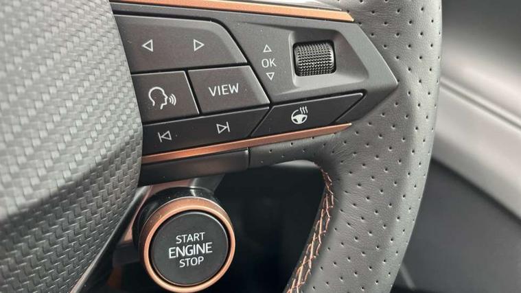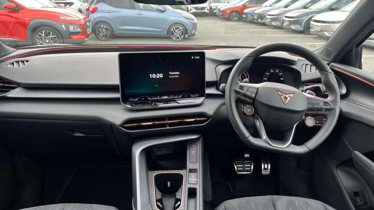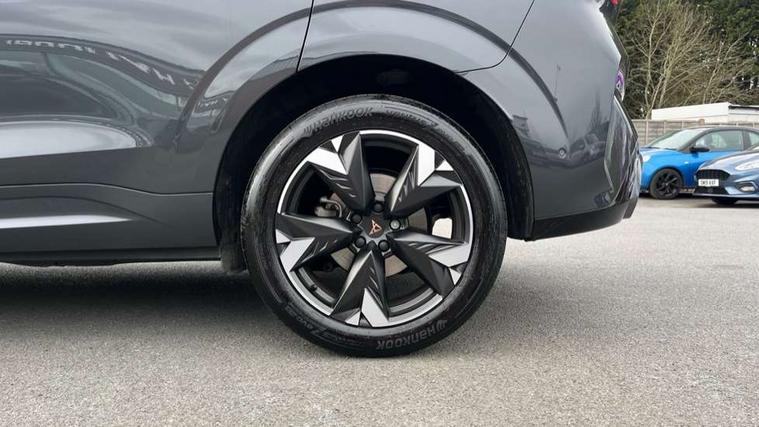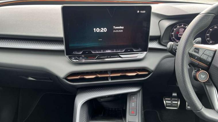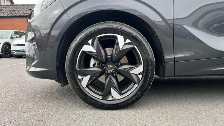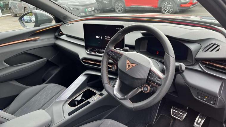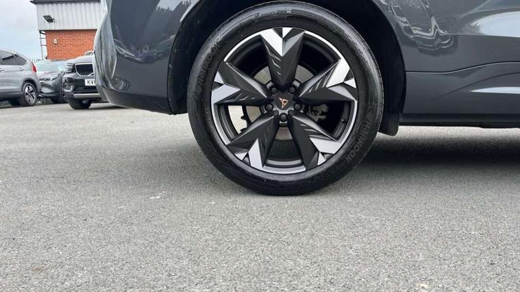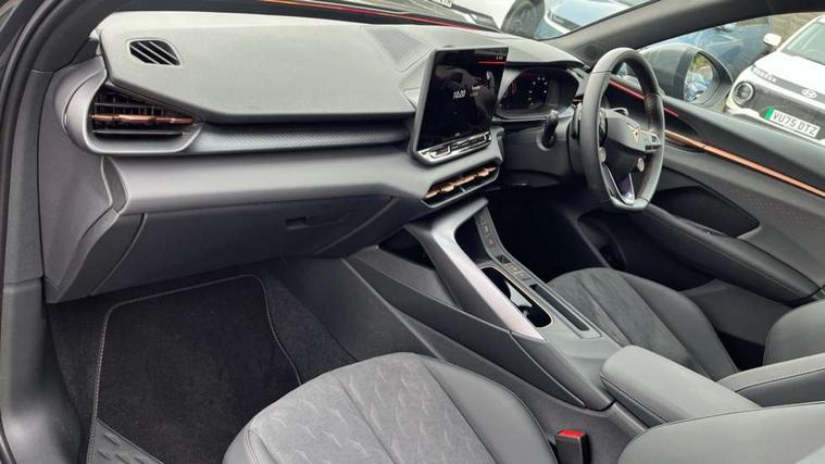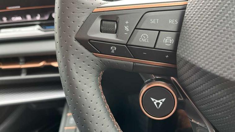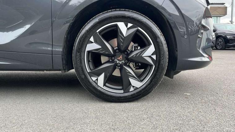 10.25" digital cockpit and configurable dashboard, Adaptive cruise control with follow-to-stop and speed limiter, Advanced driver alert system, Advanced lane assist with semi-automatic vehicle control in a medical emergency and traffic jam assist, Driving profile selection and conventional shock absorber, Dynamic road sign display, E-call, Electric tailgate with virtual pedal, Emergency steering support with turn assist, Front and rear parking sensors, Front assist (Forward collision warning with automatic braking) with multifunction camera and front cross traffic assist, Head up Display, Intelligent park assist, Media system with Nav - 12.9" touch display, voice control, full link phone (wired/wireless), DAB and Steering wheel mounted controls, Rear traffic assist, Side and exit assist, Speed sensitive power steering, Start/stop system with regenerative braking, Top view camera (front camera, rear camera, 2 side cameras), Wireless phone charger, Auto dimming rear view mirror, Black roof rails, CUPRA 3D rear lights with ceremony & swiping indicator and illuminated logo, Dark tinted rear windows, Daytime running lights with automatic headlight control and Coming and Leaving home function, Door mirrors with memory function and lowing function on passenger mirror, Dynamic headlight range control, Electric front/rear windows, Electrically adjustable, heated and folding door mirrors, Front fog lamps with cornering function, Heat reflecting windscreen, High beam assist, LED headlamps with signature "CUPRA LED", Rain sensing wipers, Rear fog light on one side, back up light on both sides, Rear side wing doors, Rear wash/wipe, Third brake light, Welcome lights (within exterior mirror housing), 3 seat bench in 2nd row, Black roof lining, Cupra sports pedals, Dinamica cloth upholstery, Driver seat memory function, Electrically adjustable front seats including lumbar support, Four x USB Type C ports (2 in front and 2 in rear), Front and rear head restraints, Front and rear reading lights X 4, Front centre armrest, Heated front seats, Heated leather wrapped multi function sports steering wheel with tiptronic, Illuminated interior front door sills, Isofix, Operating voltage 12V, Single front passenger seat, Smart wraparound interior lighting, Sunvisors with illuminated mirror, Three zone climate control with control panel in rear, Unsplit rear seat bench, split folding backrest, with centre armrest, Variable luggage/load compartment floor, 3 point seatbelts in front with pretensioner and electric height adjustment, 3 point seatbelts on all rear seats, Brake control system - ESC and brake booster, Child proof door locks, Driver and front passenger airbags, Electronic parking brake, Front and rear disc brakes, Front interaction airbag, Front passenger airbag deactivation switch, Front side airbags with curtain airbags, Pre-crash front and rear seat belt tensioner, window closure and hazard lights, Tyre pressure monitoring system, Visual and acoustic seat belt reminder, electric contact in front and rear, Anti theft alarm, Keyless locking and starting system with keyless access, Locking wheel bolts, Black decorative trims, Chrome interior detailing, 19" Spectrum exclusive machine alloy wheels, Tool kit,
