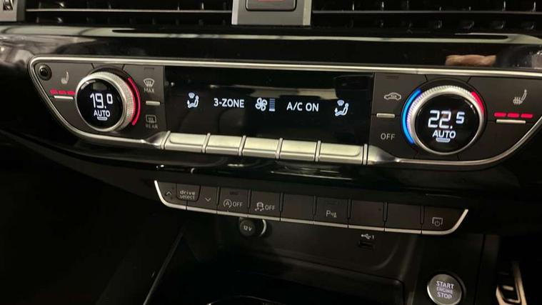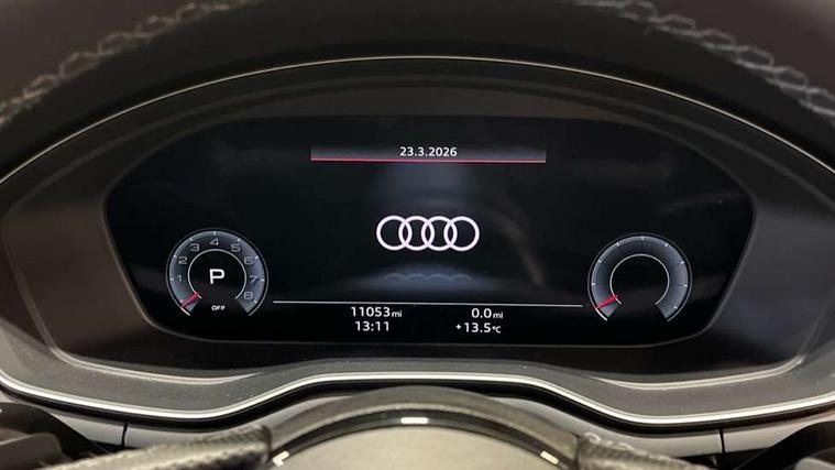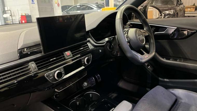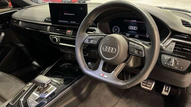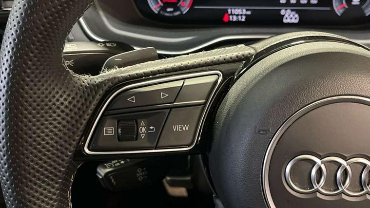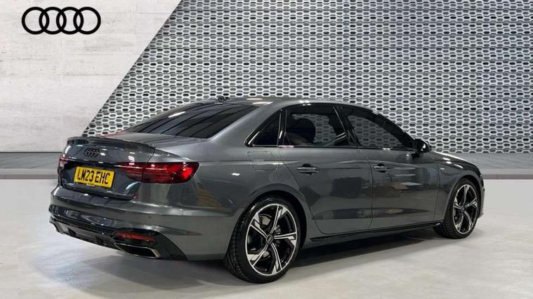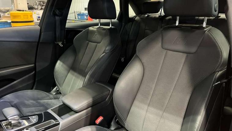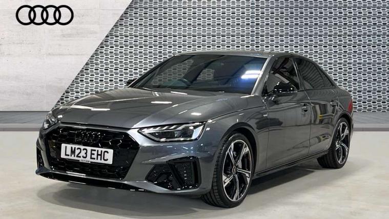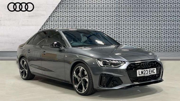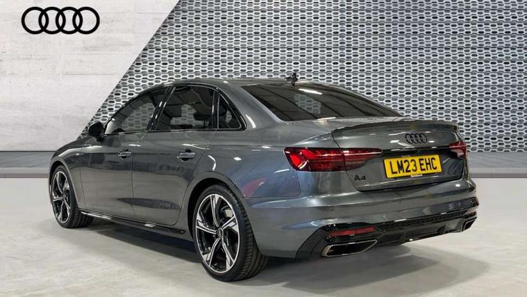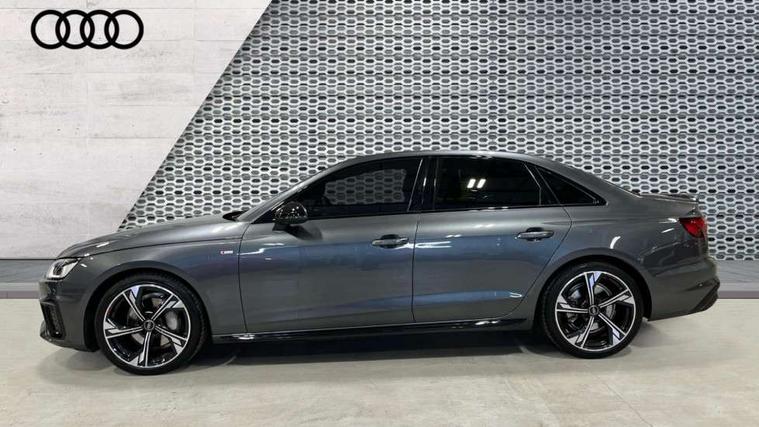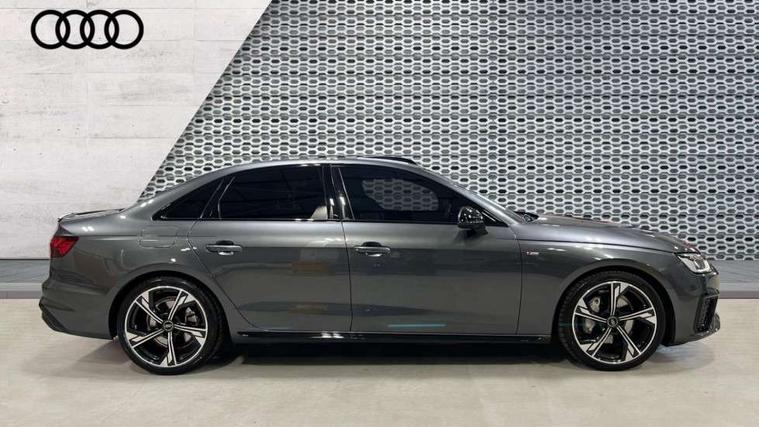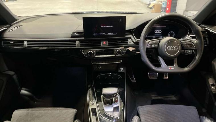 Audi connect safety and service (e-call), Audi connect with Amazon Alexa Integration, Audi drive select, Audi smartphone interface, Audi virtual cockpit, Automatic start-stop system with coasting functionality and efficiency programme, Bluetooth interface, Electric boot lid release, Electromechanical power steering, Email, calendar and text messages displayed via MMI, MMI Navigation plus with MMI touch includes 10.1" high resolution colour MMI display, 3D map, Voice control system, 54 litre fuel tank, Sports suspension lowered by 23mm, 2 USB charging ports, 8 passive loudspeakers, DAB digital radio reception, Audi beam uses LEDs to project the audi logo onto the ground as you exit your A4, Auto dimming rear view mirror, Black Audi rings and black badging (model name in black badging, no engine badging), Body colour door handles, Body colour front spoiler lip, Body colour side sill trim, Electrically folding auto dimming/adjustable/heated door mirrors with LED side indicators and kerb view function for passenger side, Exhaust tailpipes in high dark chrome, Front and rear bumpers with side skirts, Grained matt black side air inlets with matt aluminium silver inlay, High beam assistant, High gloss black B pillar trims and triangular rear door trim, LED headlights with LED rear lights + dynamic rear indicators + headlight adjustment and high beam, turning light + LED daytime running lights, LED third brake light, Privacy glass, Rain and light sensors, Rear boot, Rear diffuser in matt black with trim strip in matt aluminium silver, Rear side wing doors, S Line badges on the front wings, Variable intermittent front wash/wipe, Windscreen with acoustic glazing, 4 way electric lumbar support for driver and front passenger, 40/20/40 split folding 3 rear seat bench in 3 parts with rear centre armrest, Black cloth headlining, Black perforated leather gearknob, Contrast stitching on seats, steering wheel and gear lever gaiter, Deluxe 3 zone electronic climate control, Door sill trims with aluminium inlay, Front and rear head restraints, Front centre armrest, Heated front seats, Illuminated door sill trims with S logo, ISOFIX child seat mounting and top tether, Manual seat adjustment, Single front passenger seat, Stainless steel pedals and foot rest, Black styling pack - A4 Saloon, LED Interior light pack - A4/S4, 3 rear seatbelts, 6 airbags - Driver, front passenger, curtain and side windows, Electronic Stabilisation Control (ESC) including ABS, ASR and EDL, Hill hold assist, Multi collision brake assist, Pop-up bonnet for pedestrian protection, Pre sense city, Rear door child safety locks, Seatbelt monitoring, Warning triangle and first aid kit, Anti theft alarm, Anti theft wheel bolts, Central locking, Keyless Go, Piano black finish inlay, 19" 5 arm flag design Audi sport diamond cut alloy wheels in gloss anthracite black, Tool kit, Tyre repair kit,