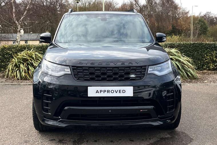 11.4" touchscreen, 3D surround camera, Adaptive cruise control, Android Auto, Apple car play, Blind spot assist, Driver condition monitor, Electric power assisted steering (EPAS), Emergency services call system, Front and rear parking aid, Lane keep assist, Power inner tailgate, Push button start, Rear collision monitor, Rear traffic monitor, Remote, Remote boot release, Service interval indicator, Speed proportional steering, Sportshift selector, Stop/start system, Traffic sign recognition with adaptive speed limiter, Trip computer, Wade Sensing, Adaptive dynamics, Dynamic stability control, Electronic air suspension, Front axle open differential, Digital Audio Broadcast radio-DAB, Dynamic volume control, Pivi pro connected, USB/aux input socket, Acoustic laminated windscreen, Animated directional indicators, Auto dimming interior rear view mirror, Automatic headlight levelling, Automatic headlights, Body colour bumpers, Body colour door handles, Centre high mounted stop light, D300 badge, Electric heated/power fold memory door mirrors with approach lights and auto dimming driver side, Electric windows with one touch open/close and anti-trap, Heated rear window, Heated windscreen, LED darkend tail lights, Metal treadplates with R-Dynamic branding, Narvik black Discovery script, Privacy glass, Puddle lights, Rain sensing windscreen wipers, Rear fog lights, Rear side wing doors, Rear wash/wipe, Trailer stability assist, Variable intermittent wiper, 12V power sockets, 12V USB charging socket in loadspace, 2 seat bench in 3rd row, 3 seat bench in 2nd row, Central hinged twin lidded storage, Ebony morzine headlining, First and second row door bins, Footwell lights, Front and rear 12V with front USB, Front passenger seat isofix location point, In-facia storage, Isofix child seat preparation for front passenger seat, Loadspace cover, Loadspace Hook, Loadspace light, Lockable glovebox, Lower centre console storage, Luggage tie downs in loadspace, Multi function steering wheel, Overhead lighting console, Premium carpet mats, Rear ISOFIX, Shopping bag hook, Single front passenger seat, Storage glovebox, Sunvisors with illuminated vanity mirrors, Third row storage, Twin front cupholders with cover, USB with 12V socket in centre console, Online pack with data plan - Discovery, R-Dynamic black exterior pack - Discovery, 3x3 point rear seatbelts, Anti-lock braking system (ABS), Brake pre-fill technology, Cornering brake control, Curtain airbags, Customer configurable autolock, Driver and passenger airbags, EBD - Electronic brakeforce distribution, Electronic traction control, Emergency brake assist, Emergency braking, ESP, Front side airbags, Gradient acceleration control, Hill descent control, Hill launch assist, Power operated child locks, Rear airbags, Roll stability control, Seat belt reminder, Torque vectoring brake, Tyre pressure monitoring system, Immobiliser, Intrusion sensor, Keyless entry, Locking wheel nuts, Remote central locking, All terrain tyres,