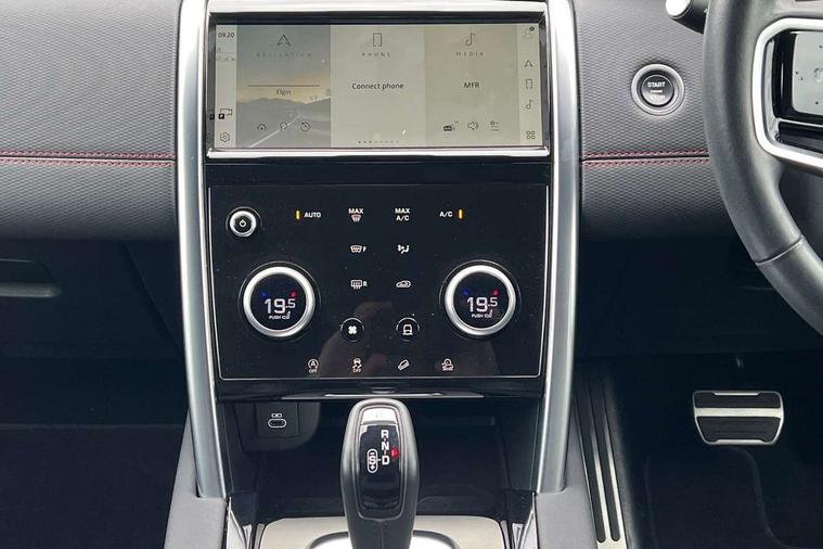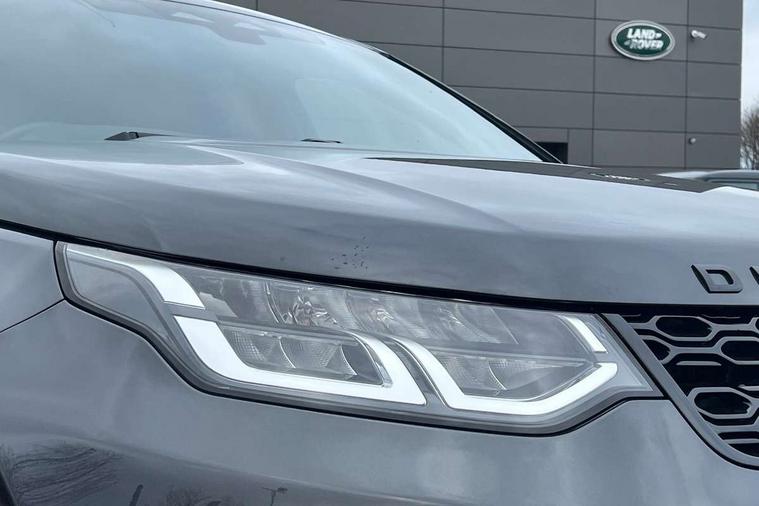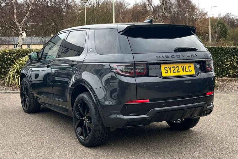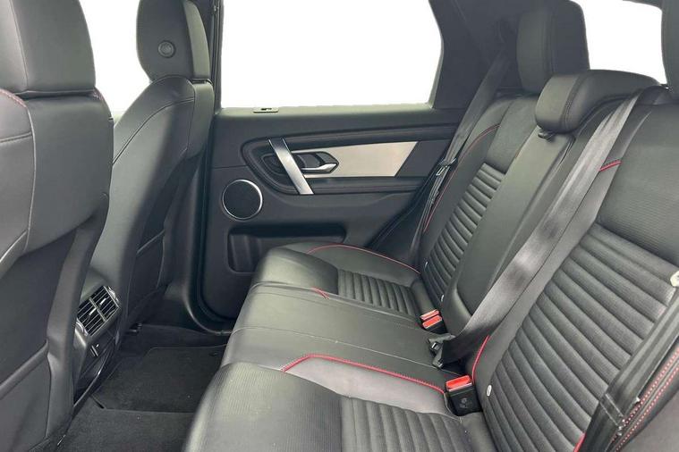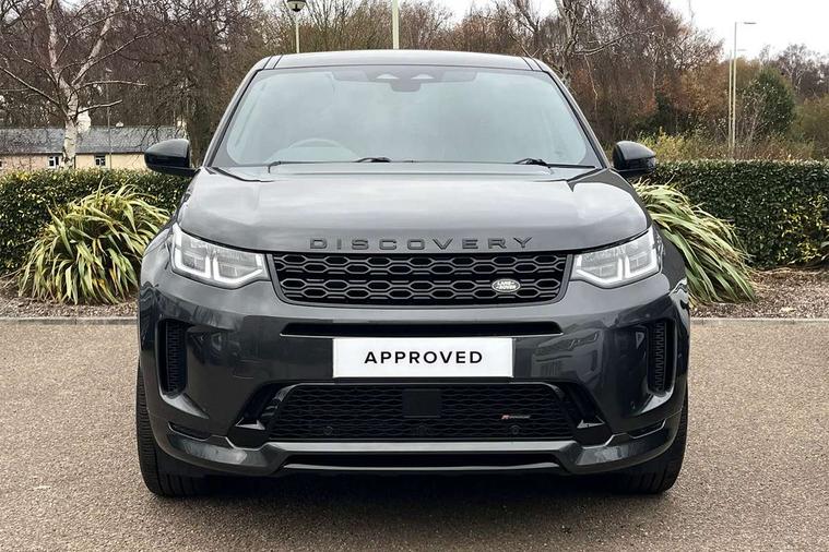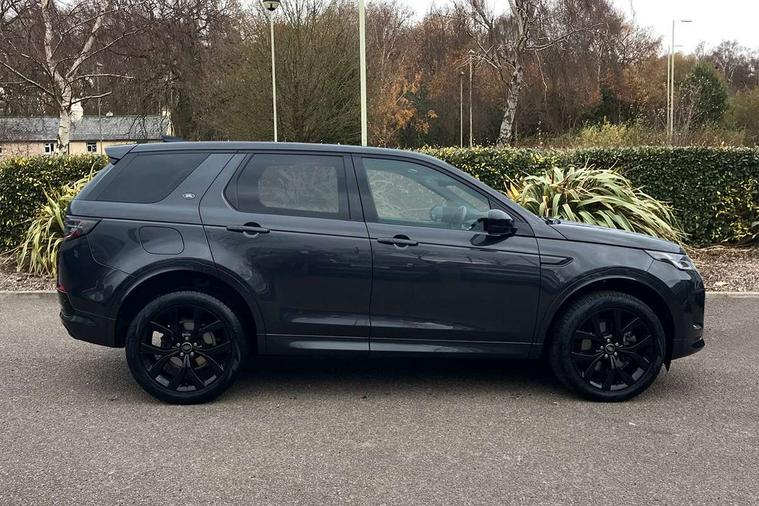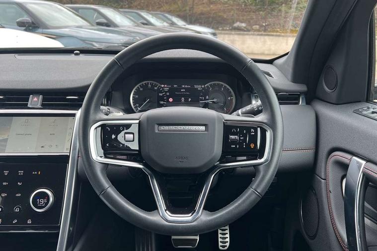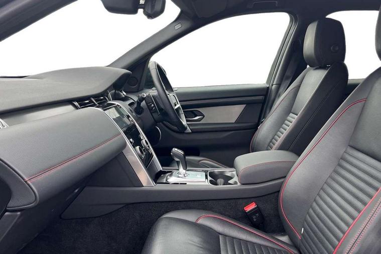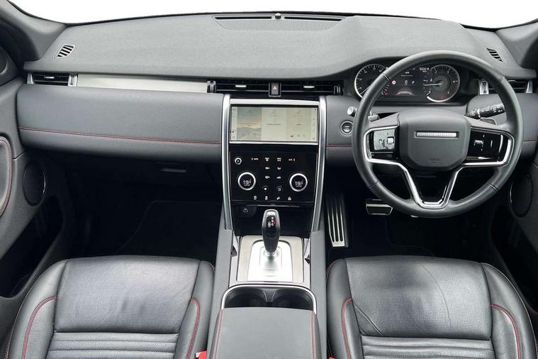 10" touch screen, Adaptive cruise control, Android Auto, Apple CarPlay, Driver condition monitor, eCall emergency call system, Front and rear parking aid, InControl remote premium, Lane keep assist, Locking fuel flap, PAS, Pivi Pro connected navigation system with upgraded Infotainment, Powered tailgate/boot lid, Push button start, Rear collision monitor, Service interval indicator, Traffic sign recognition with adaptive speed limiter, Trip computer, Wade Sensing, All terrain progress control, Coil suspension system, Diesel particulate filter, Dynamic stability control, Terrain Response 2, Bluetooth connectivity including audio streaming, Digital Audio Broadcast radio-DAB, Steering wheel mounted audio controls, 3rd brake light, Automatic headlights, ClearSight interior rear view mirror, Electric front/rear windows, Electric heated/power fold door mirrors with approach lights and auto dimming driver side, Fixed panoramic sunroof with powered sunblind, Front and rear recovery eyes, Heated rear window, Heated windscreen including heated washer jets, No badges, R Dynamic badge, Rain sensing windscreen wipers, Rear fog lights, Rear side wing doors, Rear wing door, Rear wiper, 5 seats, Bright metal pedals, Centre console with armrest, Footwell lights, Front and rear grab handles, Front passenger isofix child seat attachment, Loadspace cover, Loadspace light, Overhead lighting console, Overhead stowage for sunglasses, Rear headrests, Satin chrome gearshift paddles, Sunvisors with illuminated vanity mirrors, Tilt/reach adjustable steering wheel, Black exterior pack - Discovery sport, Online pack with data plan - Discovery, 3 point seatbelts on all seats, ABS, Brake hold function, Child locks on rear doors, Collision mitigation braking system, Cornering brake control (CBC), Driver/Front Passenger airbags, Drivers knee airbag, Electronic brake force distribution, Electronic parking brake, Emergency brake assist, ESP + traction control, Hill descent control, Hill launch assist, Pedestrian airbag system, Rear seat ISOFIX, Roll stability control, Side and curtain airbags for front and 2nd row seats, Trailer stability control, Tyre pressure monitoring system, Battery Back Up System (BBUS) with tilt sensor, Global lock and unlock switch on driver door, Intrusion sensor, Keyless entry, Locking wheel nuts, Centre stack rails in noble chrome,