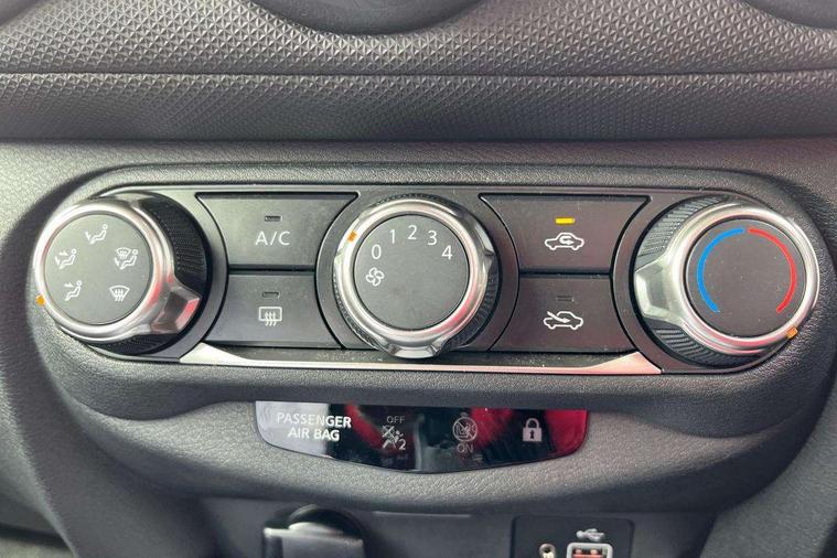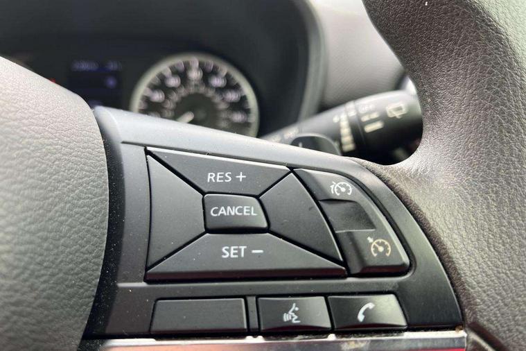 4.2" full colour TFT screen combimeter, Apple CarPlay and Google Android auto, Cruise control + speed limiter, eCall emergency call system, Emergency and breakdown call, Idle start/stop system, Intelligent lane intervention, Lane departure warning system, Nissan connect 8" touch screen entertainment system, Nissan connect services and Wifi connection, Outside temperature sensor, Power Steering, Rear view camera, Traffic sign recognition, Trip computer, Voice recognition, Gasoline particulate filter, 4 speakers, Bluetooth system, USB, Aux-in and 12V socket, DAB Digital radio, Automatic hazard signal with emergency stop signal, Body colour bumpers, Body colour door handles, Electrically adjustable door mirrors with integrated indicators, Follow me home headlights, Front and rear electric window with one touch driver window, High beam assist, LED daytime running lights, LED headlamps, LED rear fog lamp, LED rear lamps, Manual dimming interior rear view mirror, Pearl black door mirrors, Rear side wing doors, Rear wiper, Three blink turn signal, 3 height adjustable rear headrests, 3 seat bench in 2nd row, 60/40 split folding rear seat, Cloth upholstery, Driver and passenger sliding and reclining seats, Driver/passenger sunvisors and vanity mirrors, Front and rear cabin lights, Front door pockets with bottle holders, Front head restraints, Height adjustable driver's seat, Internal chrome door handles, Luggage space lighting, Monoform sporty seats, Multifunction steering wheel, Rear door bottle holders, Single front passenger seat, Steering wheel mounted gearshift paddles, Telescopic steering wheel adjustment, Two cupholders in front centre console, Two rear isofix child seat anchorage points with top tether, Welcome light and console tray ambient lighting, ABS with EBD and brake assist, Active ride control, Active Trace Control, Driver and passenger airbags, Driver and passenger side airbags, Electronic Stability Programme (ESP), Front and rear curtain airbags, Height adjustable seatbelts, Hill start assist, Intelligent emergency braking with pedestrian and cyclist recognition, Rear door child safety locks, Rear drum brakes, Seatbelt reminder for driver/front passenger and rear seats, Single tone horn, Three 3 point rear seatbelts, Traction control, Tyre pressure monitoring system, VDC Dynamic Vehicle Control, Alarm, Immobiliser, Remote central locking, 17" Sakura Flex wheels,