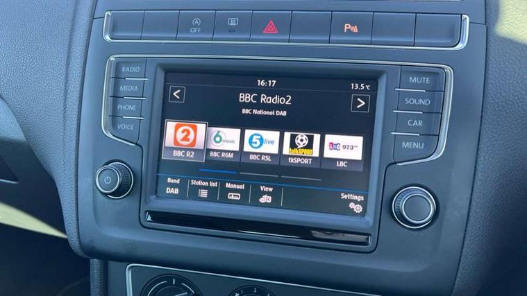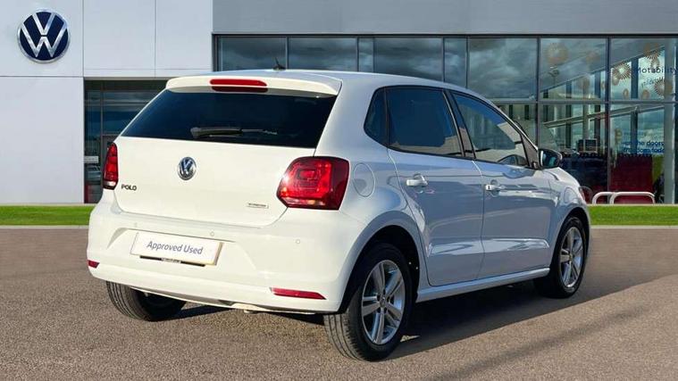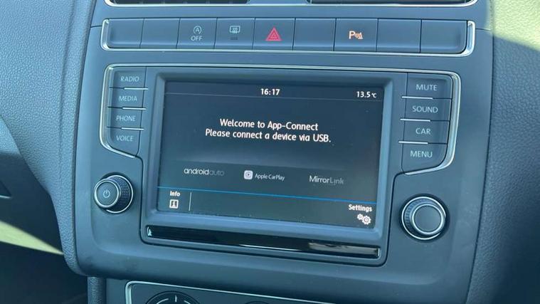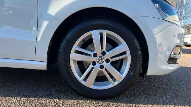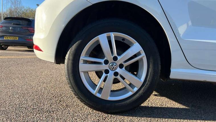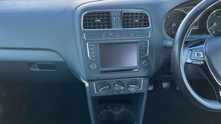 Air vents in Matt chrome, Matt chrome interior trim, Light and sight pack - Polo, 15" steel spare wheel, Alarm with remote central locking and interior protection, Electronic engine immobiliser, 6 speakers, Composition media system with radio, glovebox mounted CD, colour touch screen, SD card, aux-in, USB, multimedia interface, DAB Digital radio, 3 point height adj front seatbelts + pretensioners, 3x3 point rear seatbelts, ABS, Automatic post collision braking, Driver/front passenger airbag, Driver/Passenger whiplash optimised head restraints, ESC - Electronic Stability Control + traction control, ESP with EDL + ASR, HBA (Hydraulic Brake Assist), Hill hold control, Tyre pressure monitoring system, Black grille with chrome surround, Body colour bumpers, Body colour door handles, Body colour door mirrors, Body coloured side sills, Chrome trimmed front air intake surrounds, Electric folding door mirrors, Electric front windows, Electric operated/heated door mirrors, Front fog lights with static cornering function, Front wash/wipe with interval delay, Heat insulated tinted glass 65% light absorbing from B pillar back, Heated rear window with auto timer, Rear electric windows, Rear windscreen washer and wiper with interval delay, 12V power socket in centre console, 2 bag hooks in luggage compartment, 2 cupholders, 3 rear head restraints, 3 spoke steering wheel, 4 grab handles, 60/40 split folding rear seat, Centre console storage, Chrome interior door handles, Driver and passenger sunvisors, Driver seat height adjust, Dust/pollen filter, Front door pockets, Front passenger seat height adjust, Front seat backrest storage nets, Front/rear reading lights, Glovebox, Height/reach adjustable steering column, Illuminated vanity mirror, Interior light with delay, Isofix Preparation 2 Rear child seats, Luggage compartment cover, removable, Luggage compartment lighting, Matt chrome gear lever gaiter surround, Multifunction leather steering wheel with leather gear knob/handbrake grip, Storage compartment in front doors, Storage compartment in rear doors, Sunglasses holder, Variable boot floor, App-Connect, Bluetooth Telephone preparation, Cruise control + speed limiter, Driver alert system, Multi function display, Multifunction computer, PAS - speed related, Service interval indicator, Ultrasonic front and rear optical and audible parking sensors, Warning buzzer and light for front seatbelts unfastened,
