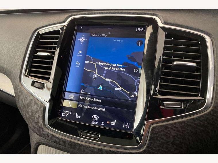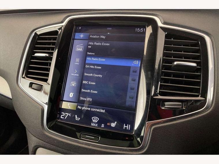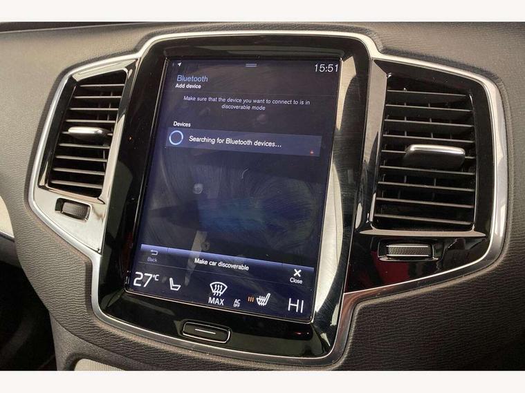 12.3" Active TFT crystal driver's instrument display, Adaptive cruise control with pilot assist, Bluetooth hands free telephone connection, Drive mode settings, adjustable steering wheel force + hill descent control, Forward collision warning, Lane departure warning with driver alert control, Power tailgate, Service interval indicator, Speed dependant power steering system, Speed limiter, Touch screen centre multi info display, Trip computer, Voice control system, Volvo on call, Wireless internet connection, Active four C chassis - four corner adaptive dampers with electronic air suspension, Touring chassis, DAB Digital radio, Active bending headlights, Adaptive brake lights, Auto dimming door mirrors, Auto dimming rear view mirror, Body colour bumpers, Cornering light, Dark tinted rear windows, Day time running light, Electric adjustable/heated/folding door mirrors, Front and rear electric windows, Headlamp cleaning system, Headlamp levelling, Heated front windscreen, Heated washer nozzles, High beam assist, High gloss black lower front bumper, High gloss black mesh grille, Home safe and approach lighting, Illuminated side steps, LED front fog lights, LED Headlights, Matt silver finish door mirrors, Rain sensor windscreen wipers, Rear wash/wipe with intermittent wipe setting, Roof spoiler, Silk metal grille surround, Silk metal window trim, Silver roof rails, 12V Accessory socket in centre console, 12V power point in luggage area, 12V socket in rear tunnel console, 2 individual folding 3rd row seats, 3 individual folding 2nd row seats, A-pillar parking ticket holder, Ambient lighting in door panels, B Pillar ventilation, Black headlining, Centre console storage box, Driver/passenger lumbar adjustment, Driver/passenger sunvisors and illuminated vanity mirrors, Electric front cushion extensions, Electric memory driver's seat + door mirror memory, Electrically adjustable passenger seat with memory, Front and rear centre armrests with cupholders, Front footwell illumination, Front headrests, Front/rear reading lights, Gearshift paddles, Grocery bag holder, Heated front seats, Heated steering wheel, Height/reach adjustable steering column, Illuminated front and rear tread plates, Illuminated front cupholder, Illuminated front/rear door pockets, Illuminated glovebox with lock, Illuminated luggage compartment, Illuminated tailgate, Instrument panel illumination control, Isofix rear child seat preparation in 2nd row, Load cover, Multicolour theatre lights, Outboard armrest with cupholder and storage for 3rd row, Passenger seat electric height adjuster, Perforated leather gearknob, Perforated Leather Key Integrated Remote, Perforated leather steering wheel, Pollen filter, Rear footwell illumination, Rear headrests, Sports floor mats, Sports pedals, Steering wheel audio controls, Sun curtain - rear side doors, Underfloor stowage compartment, 7 three point seatbelts, ABS/EBD, City safety braking system, Drivers knee airbag, Dual stage driver/passenger airbags, EBA, Electronic parking brake with auto hold, Front and rear curtain airbags, Front seat side impact airbags, Hill start assist, Inflatable curtain, Passenger airbag cut-off device, Pedestrian and Cyclist Detection, Road sign information display, Run off Road Protection, Seatbelt pre-tensioners, Seatbelt warning, STC - Stability and traction control, Tyre pressure monitoring system, Warning triangle and first aid kit, WHIPS whiplash protection system - front, Deadlocking system, Keyless drive, Locking wheel nuts, Remote central locking - doors and fuel cap, Tempa spare wheel,