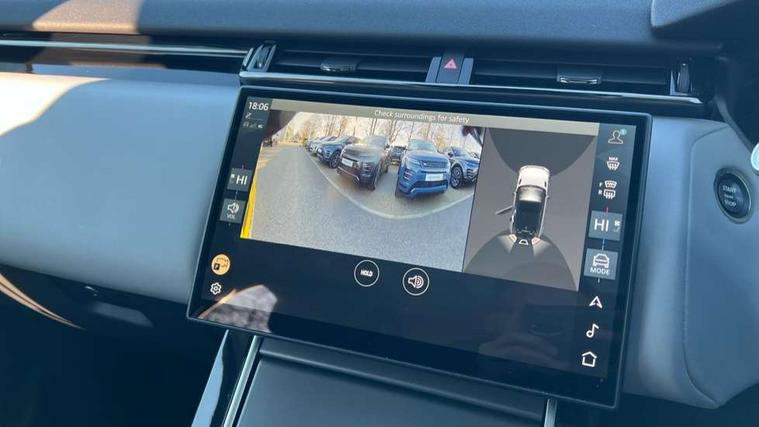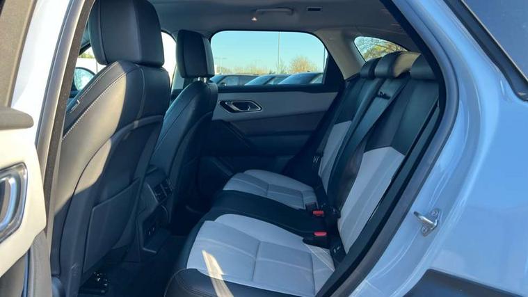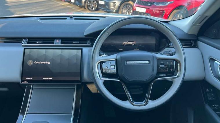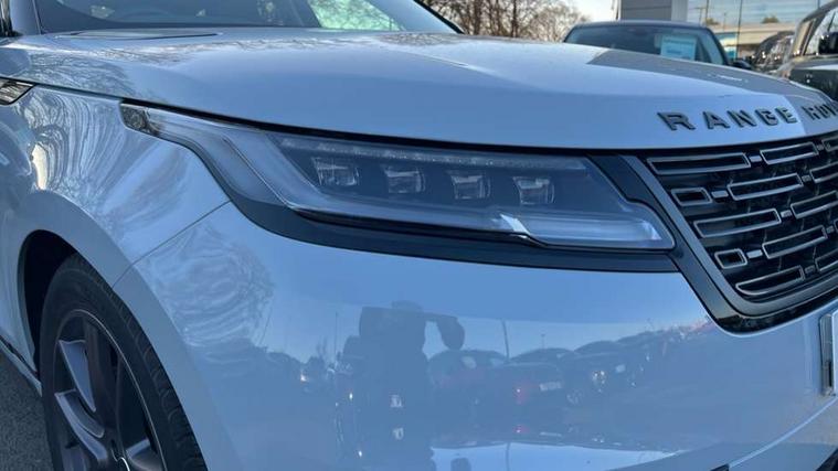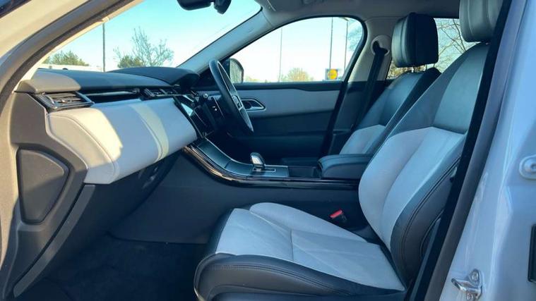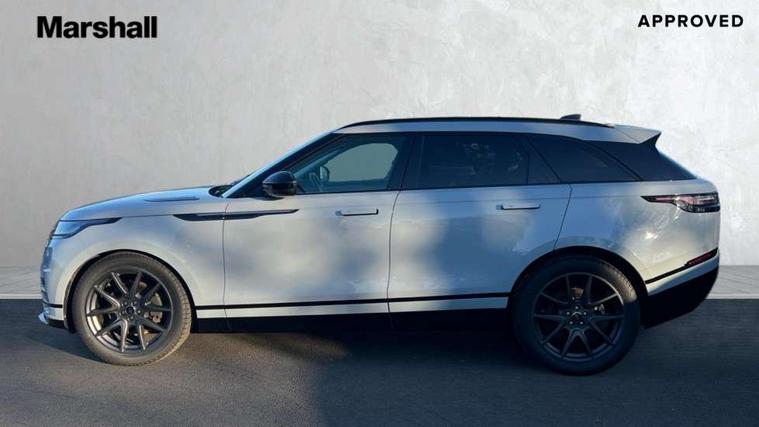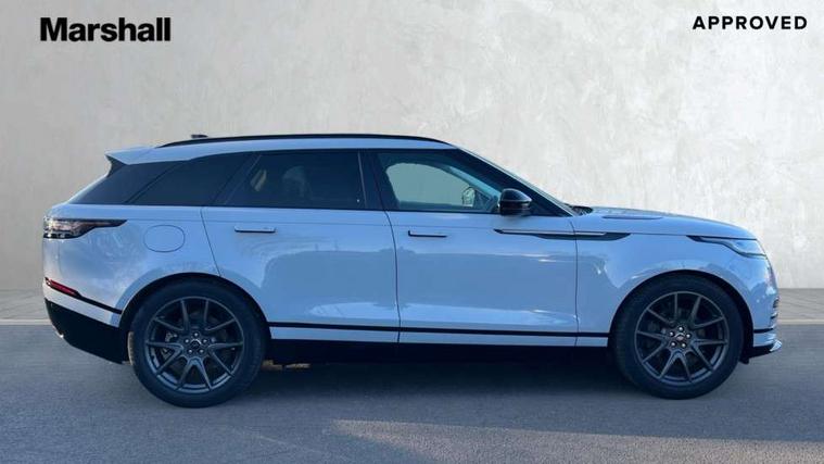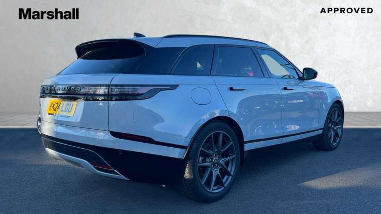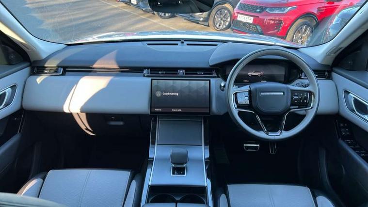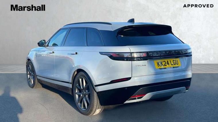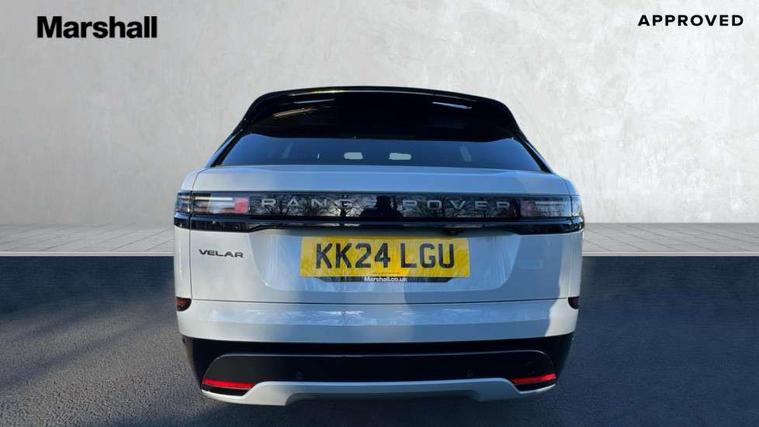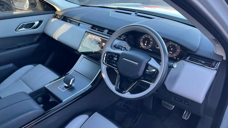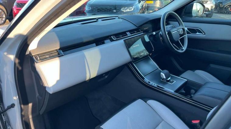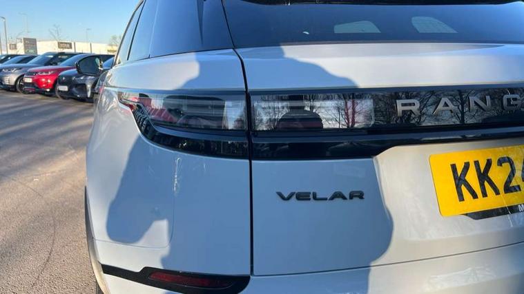 Adaptive cruise control with steering assist, Android Auto, Apple CarPlay, Blind spot assist, Bluetooth connectivity, Brake pad wear indicator warning light, Driver condition monitor, eCall emergency call system, Front and rear parking aid, InControl remote, Land Rover InControl apps, Lane keep assist, Pivi pro with connected navigation, Rear collision monitor, Rear traffic monitor, Service indicator, Speed proportional electronic power assisted steering (EPAS), Traffic sign recognition with adaptive speed limiter, Trip computer, Voice control system, Wireless device charging, 8 speed automatic transmission, Adaptive dynamics, All terrain progress control, Electronic air suspension, Open differential with torque vectoring by braking, Single speed transfer box, DAB radio, Steering wheel mounted controls, 3rd brake light, Acoustic laminated windscreen, Auto dimming interior rear view mirror, Automatic headlamp levelling, Automatic headlights, Body coloured bumpers, Boot protection plate, Electric windows with one touch open/close and anti trap, Flush deployable exterior door handles, Follow me home headlights, Heated rear window with timer, Heated washer jets, Heated windscreen, Metal front tread plates, Metal load space scuff plates, Pixel LED headlights with signature DRL, Power fold, auto-dimming, heated door mirrors with memory and approach lights, Rain sensor windscreen wipers, Rear animated directional indicators, Rear fog lights, Rear side wing doors, Rear wash/wipe, Tailgate/boot lid spoiler, Trailer stability assist, Velar badge, 3 seat bench in 2nd row, Ambient lighting, Bright metal pedals, Carpet mats, Driver/passenger sunvisors with illuminated vanity mirrors, Ebony morzine headlining, Electrically adjustable steering column, Extended leather upgrade, Heated steering wheel, Isofix system on outer rear seats, Loadspace cover, Overhead lighting console, Overhead stowage for sunglasses, Passive front headrests, Rear air vents, Rear centre headrest, Single front passenger seat, Twin front cupholders, Twin sliding front centre armrest, Online pack with data plan - Velar, Power socket pack 2 - Velar, 355mm Front and 325mm Rear brakes, 3x3 point rear seatbelts, Anti-lock braking system (ABS), Cornering brake control, Curtain airbags, Customer configurable autolock, Door side intrusion beams, Driver airbag, DSC - Dynamic Stability Control, Electronic brake force distribution, Electronic parking brake, Electronic traction control, Emergency braking, Front and rear seatbelt reminder, Hill descent control, Hill launch assist, Low traction launch, Passenger airbag, Power operated child locks, Rear airbags, Roll stability control, Side airbags, Tyre pressure monitoring system (TPMS), Global lock and unlock switch on driver door, Immobiliser, Intrusion sensor, Keyless entry, Lock only switch on front passenger door, Locking wheel nuts, Perimetric alarm, Remote central locking, All season tyres,