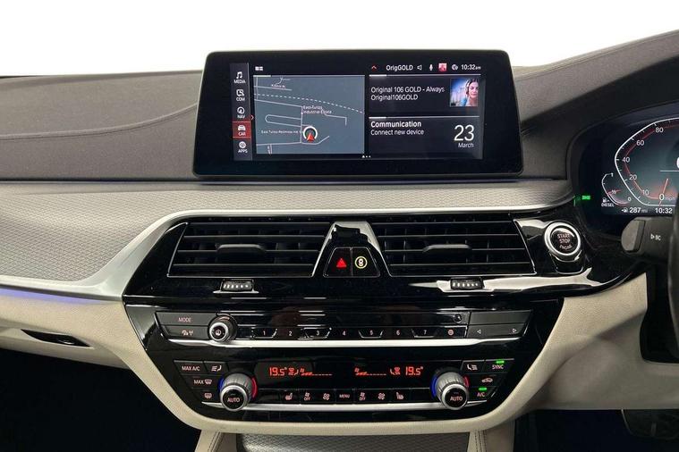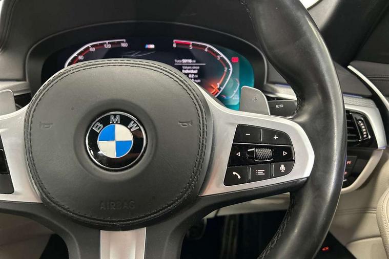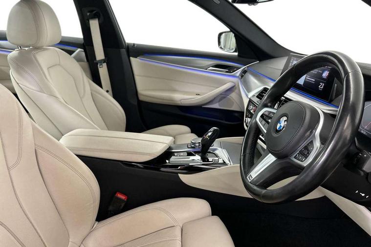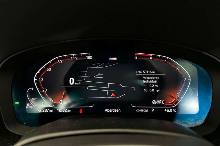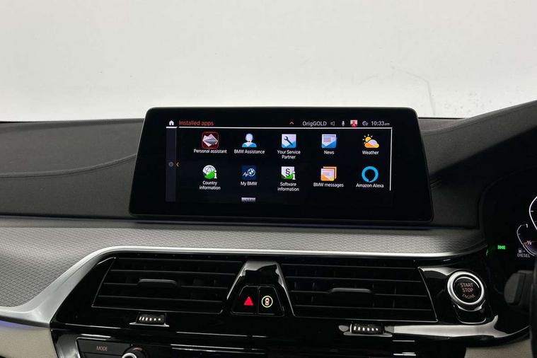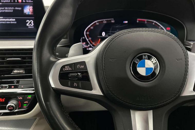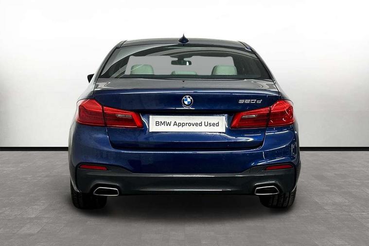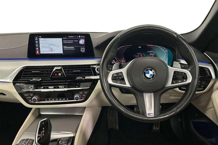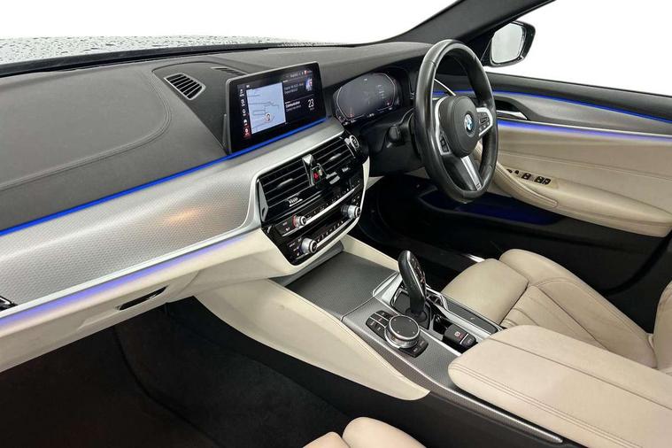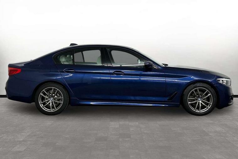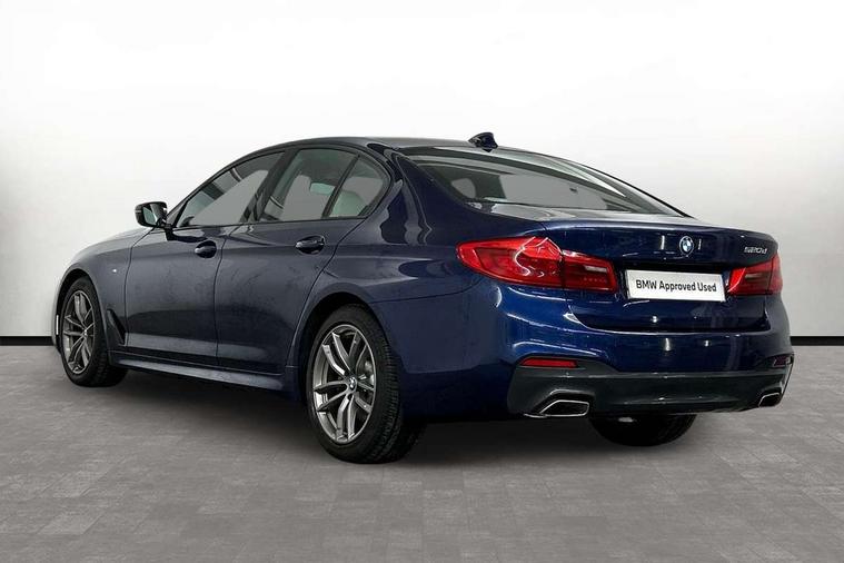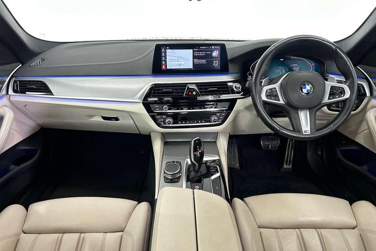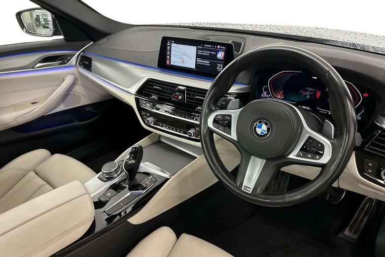 Connected package professional - 5 Series, Alarm system with remote control and engine immobiliser, Locking wheel bolts, Remote central locking, Auxiliary input socket, Bluetooth audio streaming, BMW professional radio with MP3 + DVD playback capability, DAB Digital radio, Favourite buttons, 3x3 point rear seatbelts, Anti-lock braking system (ABS), Automatic Stability Control (ASC), BMW emergency call, Brake assist function, Brake energy regeneration, CBC - (Cornering brake control), Child seat ISOFIX attachment rear outer seats, Crash Sensor - activation of central locking release, hazard warning light and interior lighting, Deformation zones front and rear with door reinforcements and bumpers that regenerate, Driver/front passenger, rear and side airbags, Driver/Passenger airbags (Impact dependent), DSC - Dynamic Stability Control, Dynamic brake control, Dynamic Traction Control - DTC, Electromechanical parking brake with automatic drive away release and auto hold function, Electronic brake force distribution, Engine drag torque control, Front head restraints with anti-whiplash, Front passenger airbag deactivation, Head airbags for first and second row seats, Hill start assist, Seat belts front inertia reel with pyrotechnical belt latch tensioner, belt force limiter and belt restrainer, Side impact protection, Three inertia reel rear seatbelts, Two tone horn, Tyre pressure monitoring system, Warning triangle and first aid kit, Acoustic glazing, Active air stream kidney grille, All round anti-corrosion system, Auto dimming rear view mirror, Body colour door handles, Body coloured bumpers, Body coloured door mirrors, Body coloured side sills, Door handle illumination, Dynamic brake lights with LED technology, Electric front and rear windows with fingertip open/close + anti-trap facility and comfort closing function, Electrically adjustable and heated exterior mirrors includes integrated direction indicators, Follow me home headlights, Heated windscreen washer jets, Interior rear view electrochromatic mirror with automatic anti dazzle function, LED daytime running lights, LED fog lights, Left and right single chrome quadrilateral exhaust tailpipes, M aerodynamic bodystyling, Rain sensor with automatic headlight activation, 12V power socket in front and rear, 3 Spoke M sports leather steering wheel, Ambient interior lighting with 6 selectable light designs, Battery in luggage with jump start facility, Door sill finishers with BMW designation, Front and rear armrests integrated in door trim + centre console includes storage compartment and rear centre armrest includes 2 cupholders, Front and rear cupholders x 2, Front and rear door sill inlays with illuminated BMW M designation, Front and rear footwell lights, Height and length adjustable steering column and activation via lateral lever on the steering column, Lockable glove compartment with light, M specific floor mats, M specific key, M specific pedals, M specific steering wheel, Multi-function controls for steering wheel, Rear headrests, 20GB hard disc drive (HDD) memory, BMW Live Cockpit Professional sat nav system including 10.25" high resolution display and Intelligent Voice Assistant, BMW Online services, BMW Teleservices, Brake force display, Control display - 10.25" colour touch sensitive display screen, iDrive touch controller with shortcut buttons, Navigation System Professional Multimedia, Oil sensor for level and grade, On board computer inc. average speed, fuel consumption, liquid crystal Info display, journey computer, outside temperature display, personal profile, Recovery braking system, Service interval indicator, Voice control system, 48V Mild hybrid technology, Anti roll bar front and rear, Automatic transmission with gearshift paddles, Diesel particulate filter, Drive performance control with ECO PRO comfort + sport mode, M sport suspension,