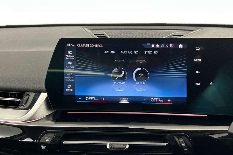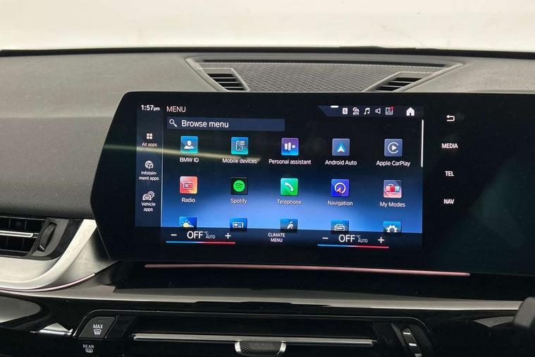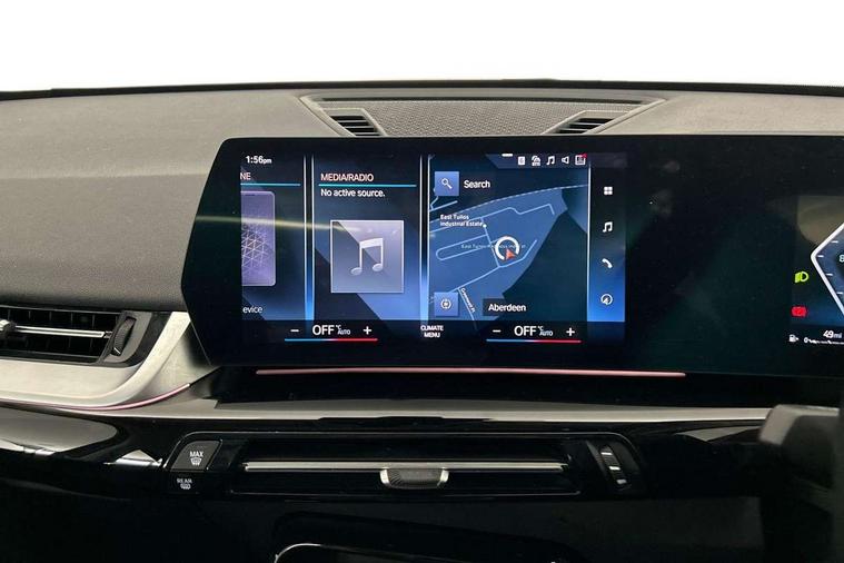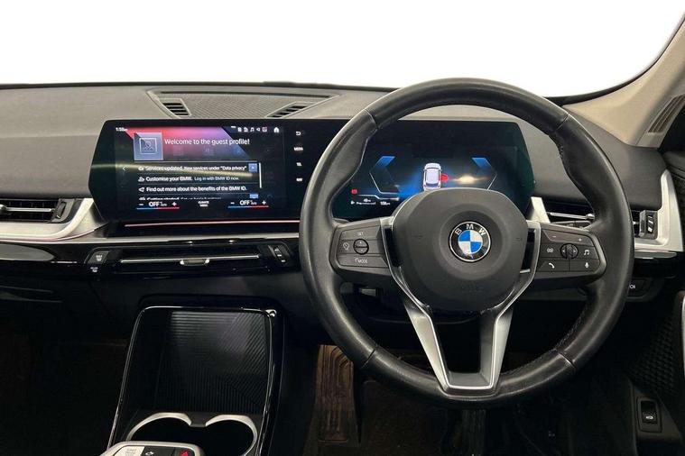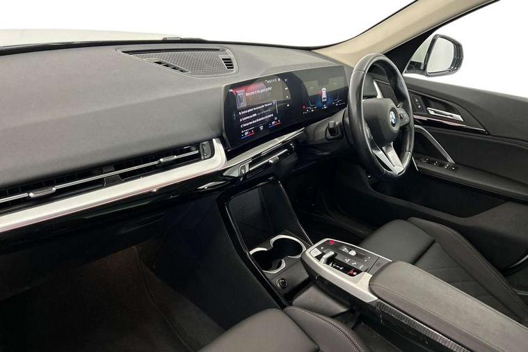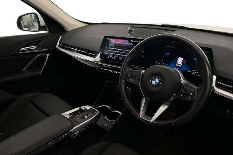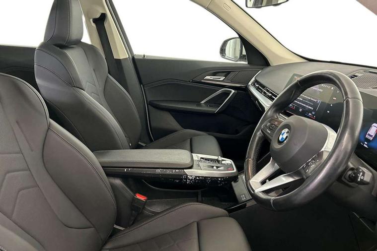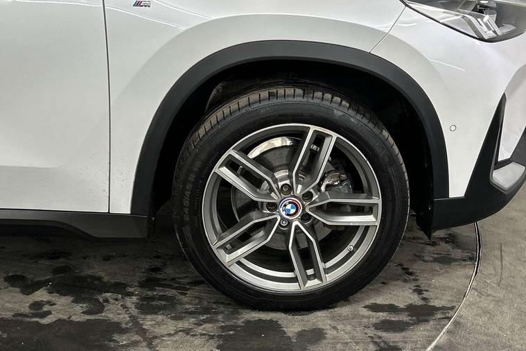 Attentiveness assist, Automatic start/stop function, BMW Online services, BMW Teleservices, Brake pad wear indicator, Condition based service, Connected eDrive Services, Drive off assistant, Electrically opening/closing tailgate with opening/closing with remote control and contactless opening and closing, iDrive controller, Language version English, My Modes, Personal Profile - automatic lock when driving away selectable, Servotronic PAS, Tyre puncture warning system, Widescreen display, Performance Control, Petrol Particulate Filter, Standard suspension, Steptronic transmission with double clutch, DAB Digital radio, Badge on engine compartment lid and tailgate, BMW radiator grille with grille struts, end face black high-gloss, radiator grille frame chrome high-gloss, Contoured rear roof spoiler in vehicle colour with side aeroblades in black high-gloss, Dynamic brake lights, Electric adjustable heated door mirrors, Electric windows - front and rear, with open/close fingertip control, anti-trap facility and comfort closing, Folding door handles integrated flush with surface, Follow me home headlights, Front bumper panel with air inlet in matt black, Front door exit lights, Heated rear window, High gloss shadow line includes B-pillar trim panel/window cavity cover/window frame/window guide rail front doors/door mirrors in high gloss black, Invisible exhaust tailpipe, LED 3rd brake light integrated in rear roof spoiler, LED daytime running lights, LED number plate light, M roof rails high gloss shadow line, Matt black roof strips, Model inscription on right tailgate, Rain sensor including auto headlights activation, Rear bumper panel with two L-shaped trims In pearl chrome, Rear side wing doors, Rear wiper, Sill cover in body colour, Trailer stabilisation logic, Welcome lighting, Window washer nozzle for rear view camera, Windscreen wipers with front and rear heated washer nozzles, 12V - Power sockets with front centre console and luggage compartment, 2 cup holders in front, 2 x USB Type C ports for charging and data transmission (front centre console) and 2 x USB Type C ports for charging (rear centre console), 3 rear headrests, 3 seat bench in 2nd row, 3 upper retaining strap clips integrated into rear panels of seat backrests, 40:20:40 split folding rear seats, Ambient interior lighting, Anthracite Velour front and rear floormats, Bottle trays in all doors, Child seat ISOFIX attachment for two outer rear seats and front passenger seat with anchorage points, Clothes hook rear, Dual zone automatic air conditioning, Front and rear door pockets, Front centre console storage compartment, Front sports seats, Front/rear adjustable head restraints, Glove compartment, Light on right in luggage compartment, Manual steering column height and depth adjustment, Map pockets, Middle centre console storage compartment, Rear armrest in door trim panel, Single front passenger seat, Sport leather multifunction steering wheel with thumbrests and operation of instrument display, audio, telephone and driver assistance, Storage compartment with folding cover under centre console armrest cushion, Trim elements on steering wheel spokes in pearl chrome, Connected Package Professional - X1, ABS/EBD, Automatic hold function, Automatic Stability Control (ASC), BMW emergency call, Braking readiness, Cornering brake control (CBC), Crash Sensor - activates hazard/interior lighting + unlocks doors, Driver/Front Passenger airbags, Driver/front passenger side airbags, Dry braking, Dynamic stability control + (DSC+), Electromechanical parking brake, Energy recovery system, Front and rear brake discs, Front and rear head airbags, Front passenger airbag deactivation, Integrated brake system, PC iBrake PostCrash approach control warning with light braking function, Rear door child safety locks, Three point seat belts in all seats, Tyre pressure monitor, Warning triangle, Alarm system with tilt sensor, monitoring doors, bonnet interior and tailgate, Closing system with central locking, Locking wheel bolts, Tyre repair kit (including Tyre sealant and 12V Compressor),