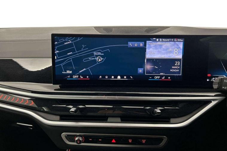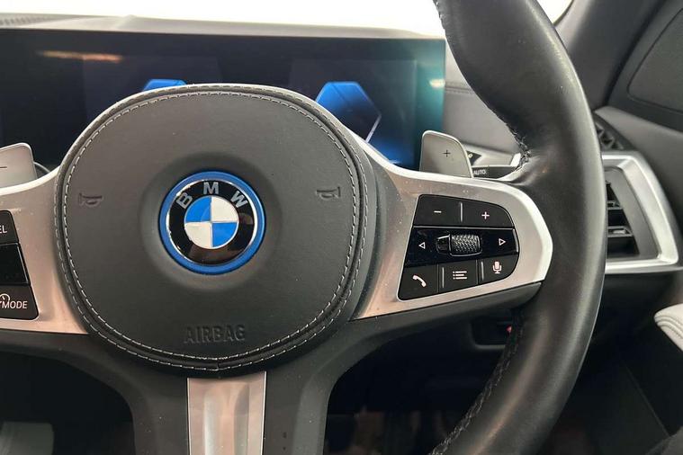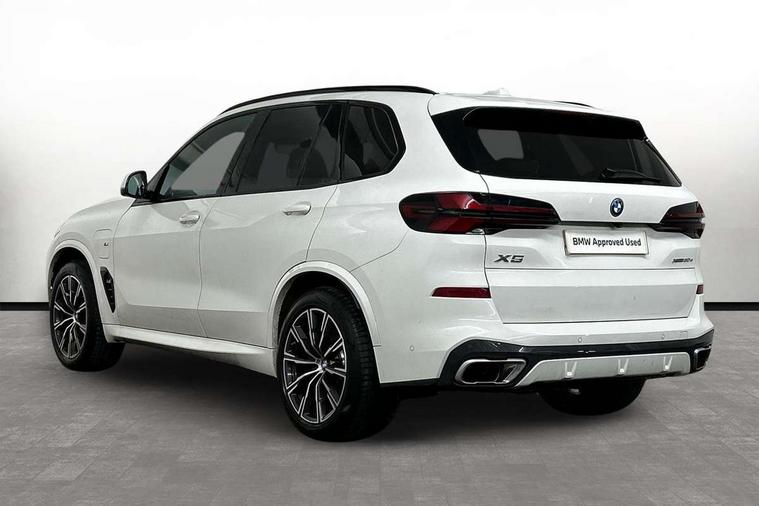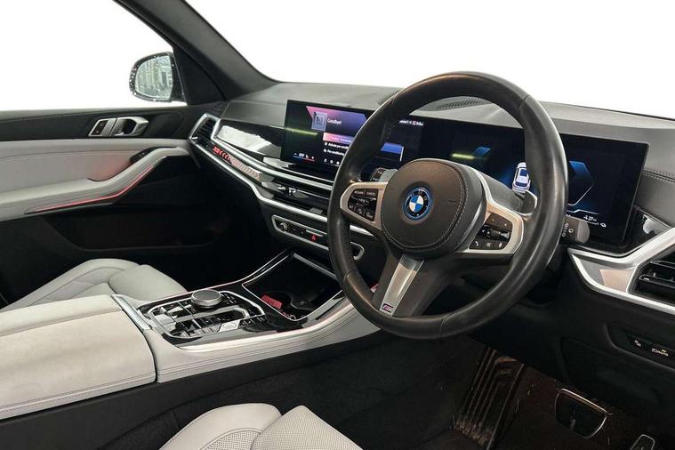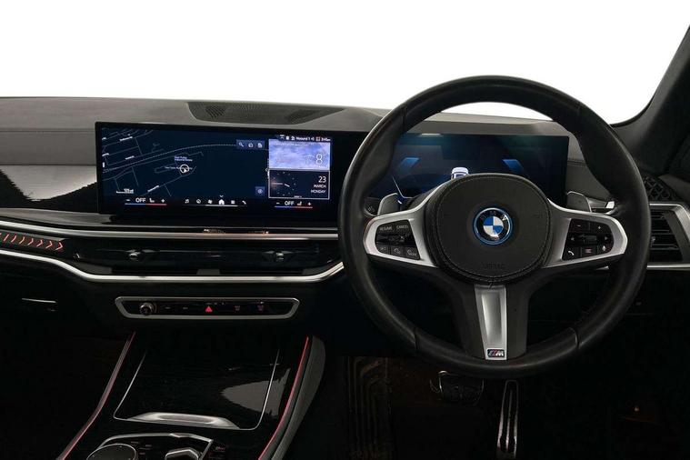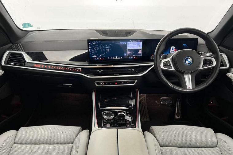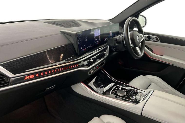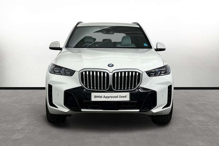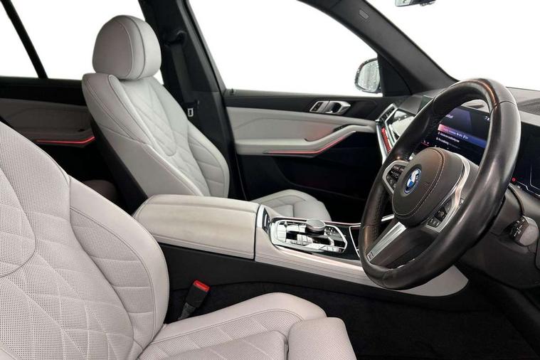 Attentiveness assist, Automatic tailgate operation, BMW ConnectedDrive online services, BMW live cockpit + with curved 12.3 instrument cluster/14.9 central display, nav/Tuner with diversity reception, RDS/4GLTE/remote software upgrade, BMW Teleservices, Condition based service, Cruise control with brake assist, eCall emergency call system, Enhanced bluetooth with wireless charging, Integrated owner's handbook, PAS, Speed limiter, Wi-Fi hotspot, Adaptive 2-axle Front and rear air suspension, Drive performance control with ECO PRO comfort + sport mode, Eight speed steptronic sport automatic transmission and gearshift paddles on the steering wheel, Hi-Fi loudspeaker system, Adaptive LED Headlights, Front and rear electric windows, High beam assistant, High gloss black shadow line roof rails, LED daytime running lights, Rear side wing doors, Third brake light in rear spoiler, Variable intermittent rear wash/wipe, 12V - Power sockets with 2x centre console and 1x luggage compartment, 3 seat bench in 2nd row, Foldable rear centre armrest with 2 cupholders and storage compartment, Front and rear side armrest integrated into door trim, Headrests for all seats, Luggage compartment separating net, Single front passenger seat, Three spoke sport M leather steering wheel, Velour floormats, Ambient light interior pack - X5, Driving assistant pack with radar based driver assistance system - X5, Expanded exterior mirror pack - X5/X5 M, M aerodynamics pack - X5, 3 rear seatbelts, Acoustic protection for pedestrians, Active protection, Airbags - driver/front passenger, rear and side, first and second row seats head airbags, front passenger seat airbag deactivation + knee airbag, Anti-lock braking system (ABS), Automatic Stability Control (ASC), Brake energy regeneration, Cornering brake control (CBC), Crash sensor activating central locking release, hazard warning lights, fuel cut off, interior lighting + activation of safety battery terminal clamp, DSC - Dynamic Stability Control, Dynamic Traction Control - DTC, Electromechanical parking brake with automatic drive away release and auto hold function, Electronic brake force distribution, Hill start assistant, M Sport blue painted brake calipers with 'M' designation, Mechanical child proof lock on rear doors, Tyre pressure monitoring system, Tyre pressure sensors, Ventilated front and rear disc brakes, Warning triangle and first aid kit, Closing system with central locking, Comfort access system, Locking wheel bolts, Sensatec instrument panel,