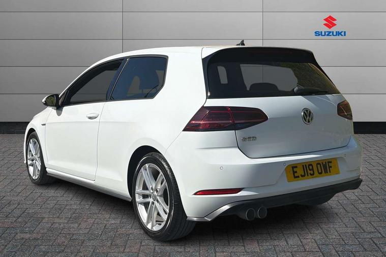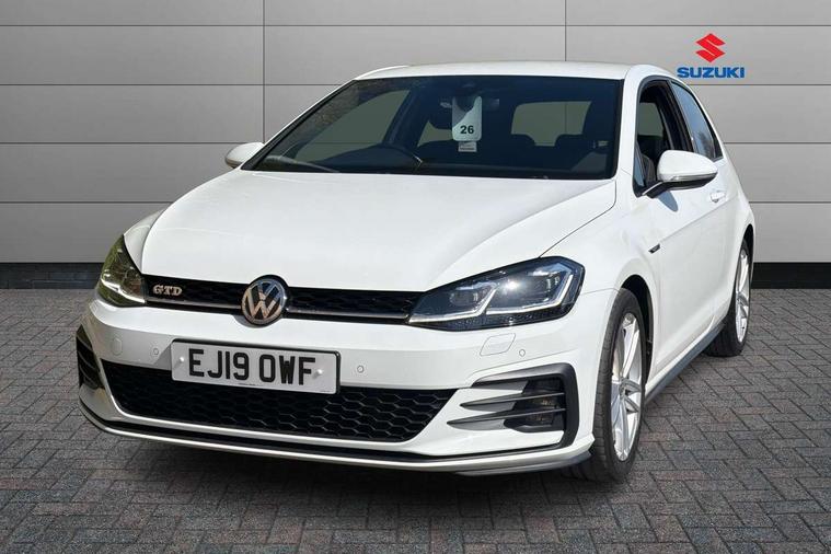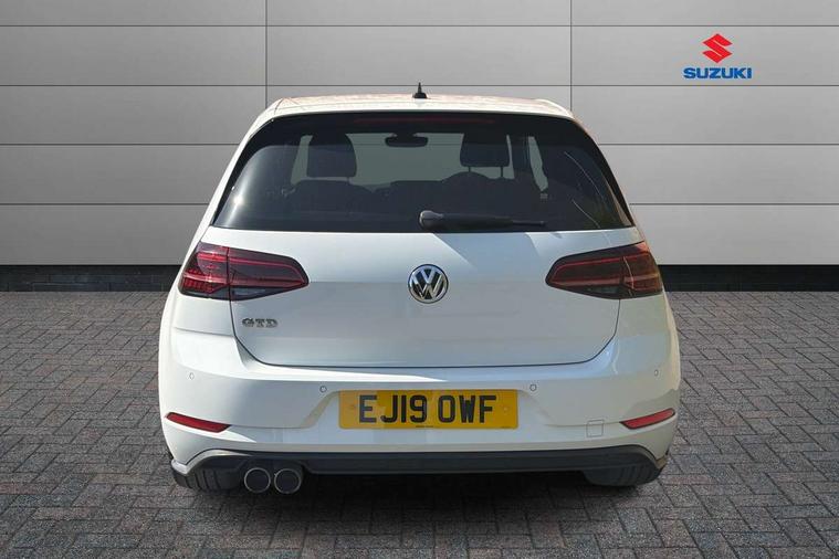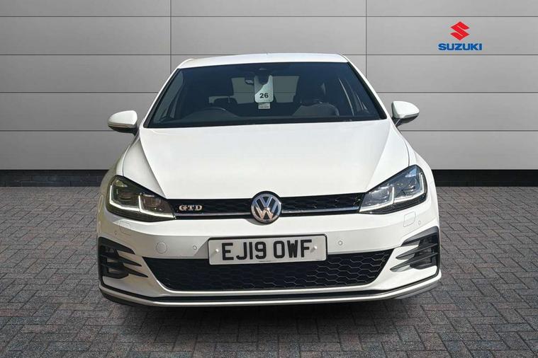 'Lights On' Reminder warning buzzer, ACC - Adaptive cruise control with front assist, forward collision warning, distance monitoring, city emergency brake and speed limiter, Bluetooth telephone and audio connection for compatible devices, Brake pad wear indicator warning light, Driver alert system, Driver profile selection, Driving Mode Selection with four preset modes - Eco, normal, sport or individual modes, Instrument cluster in white, Lane assist with dynamic light assist and traffic sign recognition, Misfuelling protection device, Multifunction computer with visual gear change recommendation for fuel consumption, Progressive power assisted steering, Push tank flap, Rear view camera, Speedo, rev counter, electronic odometer, trip, service interval display, exterior temperature and fuel gauge, Stop/start system, Warning buzzer and light for front seatbelts unfastened, Anti-tramp function, Battery regeneration during braking, Diesel particulate filter, Lowered sports suspension, XDS plus electronic differential lock, Composition media system, DAB Digital radio receiver, MP3/WMA compatability, Multi device interface (MDI) with USB connection, Premium USB cable in choice of either Apple or Android smartphone compatibility, SD card slot, SMS Functionality, USB and SD card connectivity, Volkswagen media control, 3D-LED tinted rear light clusters with indicator sweep function, Black rear diffuser, Body colour door handles, Body colour door mirrors with integrated indicators, Body colour rear roof spoiler, Body colour sports bumpers, Dusk sensor + automatic driving lights, Electric front windows, Electric rear windows, Electrically adjustable and heated door mirrors, Fully galvanised body, GTD logo lettering on front wings on right and left, Heated rear windscreen, High level 3rd brake light incorporating LED Technology, Honeycomb radiator grille - black, LED daytime running lights, LED front fog lights with static cornering light function, Rear fog lamp, Rear window aerial, Rear window wash/wipe with intermittent wipe, Reflectors in all doors, Shiny black aerofoil downside, Sill extensions, Twin exhaust tailpipe, Unique GTD badging, Uniquely shaped front/rear bumpers, Windscreen wipers/ intermittent wipe + 4 position delay, 12V socket in luggage compartment, 3 rear headrests, 4 load lashing points in luggage compartment, 60/40 split folding rear seat backrest, Bag hook in luggage compartment x 2, Black headlining, Climate control - 2 zone electronic air conditioning with automatic air recirculation and allergy filter, Cooled glovebox, Driver/front passenger seat height adjustment, Dust/pollen filter, Easy entry slide seats (access to rear seats), Front + rear carpet mats, Front centre armrest with storage compartment and two rear air vents, Front seat back storage pockets, Grab handles front x 2, rear x 2 with integrated coat hooks, Height and reach adjustable steering wheel, Illuminated door sills, Illuminated vanity mirrors, Instrument lighting white adjustable panel illumination, Interior light delay, Isofix preparation for 2 rear child seats, Leather gear knob and handbrake grip, Load through provision with rear centre armrest and cupholders x2, Luggage compartment lighting, Multifunction leather steering wheel with GTE logo and selector lever boot grip with grey stitching including paddle shift, Overhead storage box, Stainless steel pedals, Storage box in luggage compartment, Storage compartment in roof console with cover, Storage compartments in front doors, Storage compartments in rear doors, Stowable luggage compartment cover, Sun visors, Variable boot floor, height adjustable and removable, Ambient lighting pack - Golf, Convenience Pack - Golf, Light and Sight pack - Golf, Mirror pack - Golf, 3 rear three point seatbelts, Airbags - Driver's and front passenger's, curtain airbag, Driver's knee, front side impact and passenger's airbag deactivation switch, Anti-lock Braking System (ABS) with Hydraulic Brake Assist (HBA), Automatic post collision braking system, Child locks on rear doors, Driver/Passenger optimised head restraints, Electronic parking brake with auto hold, Electronic stability control (ESC) including Electronic differential lock (EDL) and ASR (Traction control) with deactivation via infotainment system, Front ventilated disc brakes and rear disc brakes, Pre crash preventive occupant protection, Three point height adjustable front seatbelts with tensioners, Tyre pressure loss indicator, Alarm with interior protection and deactivation via infotainment system, Electronic engine immobiliser, Remote central locking with 2 remote folding keys, Chrome plated air vent surround, Chrome plated electric mirror adjustment light switch surround, Honeycomb black decorative inserts, Piano black centre console, 17" Curitiba alloy wheels with anti theft wheel bolts, Steel space saver spare wheel,