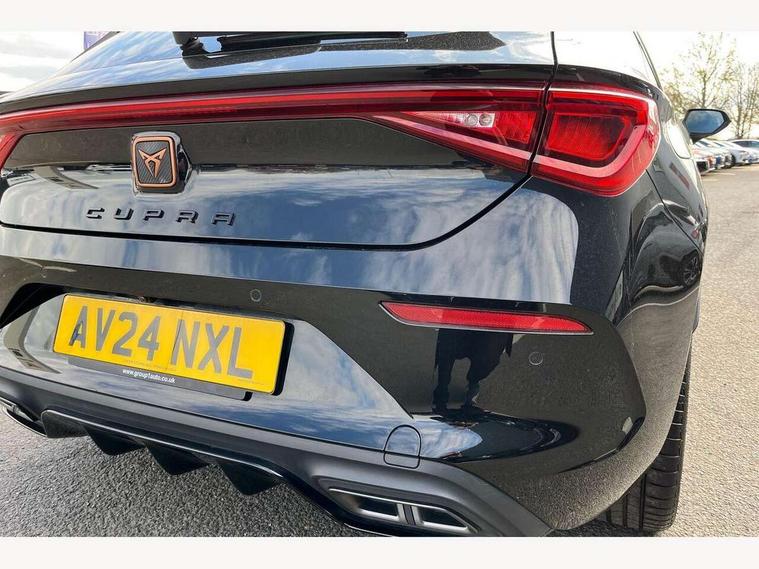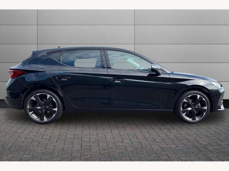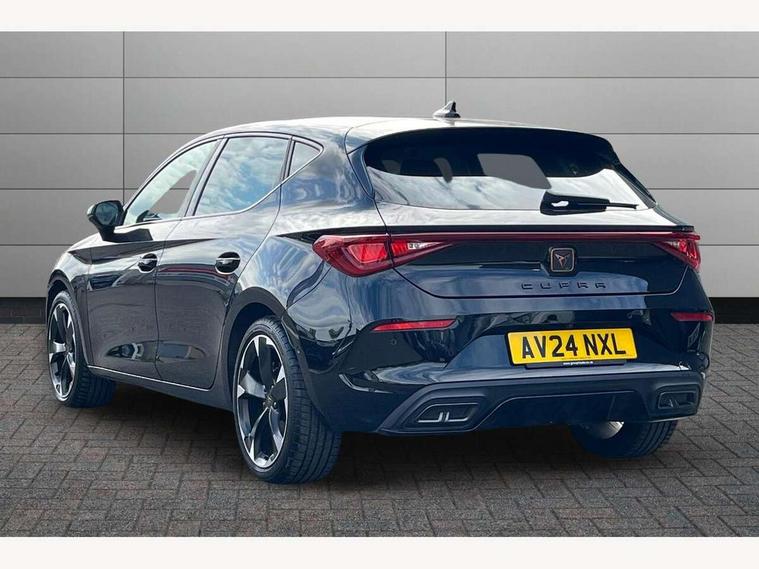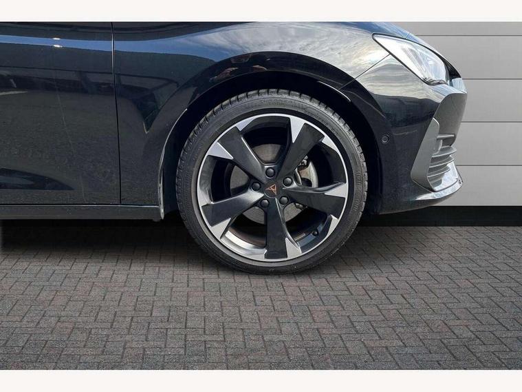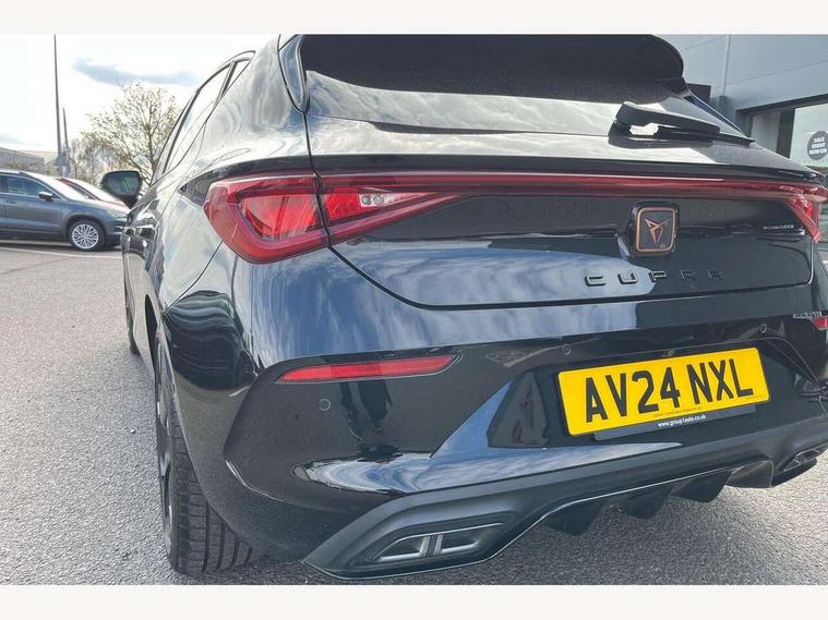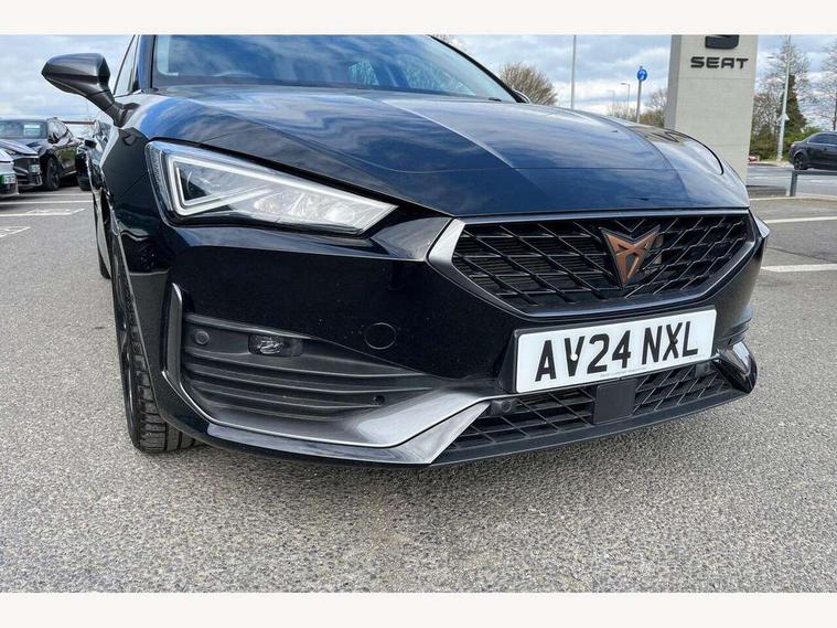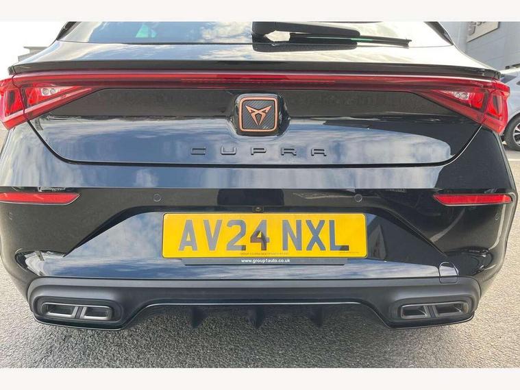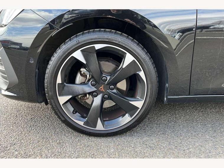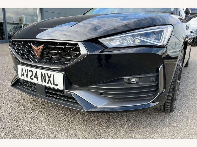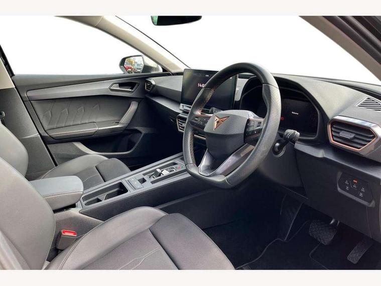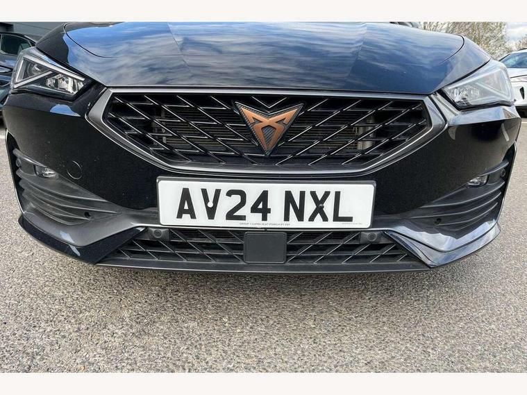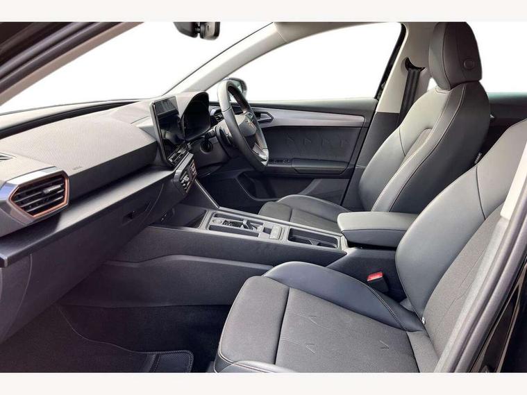 CUPRA drive profile selection with (Comfort/Sport/Individual), throttle response and gearshift mode, Digital cockpit, E-call, Electro mechanical speed sensitive power steering, Front assist with forward collision warning braking reaction to vehicles, pedestrians and cyclists, Full link smartphone integration with Mirror Link, wireless Apple CarPlay and wired Google Android Auto, Lane assist, Lockable tailgate, Park assist (inc front/rear parking sensors), Rear view camera, RPM, trip computer, outside temp gauge, instrument light brightness, low fuel warning light, lights on reminder, gearshift indicator, Service interval indicator, Start/stop system with regenerative braking, Wireless phone charger, Sports suspension, Auxiliary input socket, Auto dimming rear view mirror, Body colour door handles, Body coloured bumpers, Cupra sports bumpers, Dark tinted rear windows, Electric front/rear windows, Electrically adjustable, heated and folding door mirrors, LED front fog lamps with cornering function, LED headlights with dynamic turn signals, tail lights, rear fog lights with rear coast to coast lighting, Rain sensing wipers, Rear diffuser with twin exhaust pipe on each side, Rear side wing doors, Rear wash/wipe, Separate daytime running light with automatic headlight control and coming home feature, Third brake light, 12v power supply in centre console, 3 seat bench in 2nd row, 5 headrests, 60/40 split rear bench seat with armrest, Ambient lighting with glovebox, footwell and single monocolour, CUPRA Leather flat bottomed, heated, perforated steering and gearshift paddles, Driver/passenger manual seat height adjustment, Folding boot cover, Four x USB Type C ports (2 in front and 2 in rear), Front and rear reading lights X 4, Front centre armrest, Front seats manual lumbar adjustment, Grey headlining, Height/reach adjust steering wheel, Illuminated interior front door sills, ISOFIX points in outer rear seats with top tether anchorage points, Jack and tool kit, PVC/Cloth upholstery with copper stitching, Single front passenger seat, Sports seats, Storage pockets on rear of front seats, Sunvisors with illuminated mirror, Three zone climate control, Media system plus with navigation pack - Leon Cupra, Safety and driving pack (M) - Cupra leon, 3 point seatbelts on all rear seats, ABS, Brake control system - ESC and brake booster, Child proof door locks, Cupra black brake calipers, Driver and front passenger airbags with front passenger airbag de-activation, front side and curtain airbags, Electronic parking brake, Extended safety system - seat belt tensioner, window closure and hazard lights, Hill hold control, Rear disc brakes, Seat belt reminder for front and rear seats, Tiredness recognition system, Tyre pressure monitoring system, Anti theft alarm system with interior monitoring in cab, backup horn and towing protection, KESSY Advanced - Keyless start, keyless entry, Locking wheel bolts, Chrome and copper interior detailing, 18" Machined sport black and silver alloy wheels with 92Y tyres,