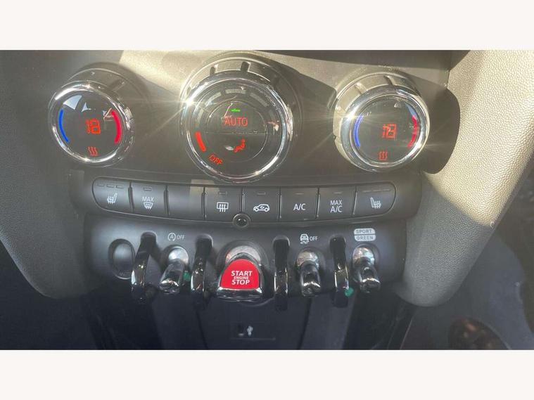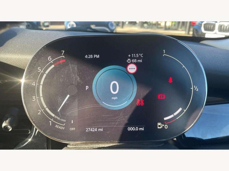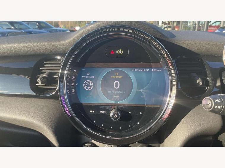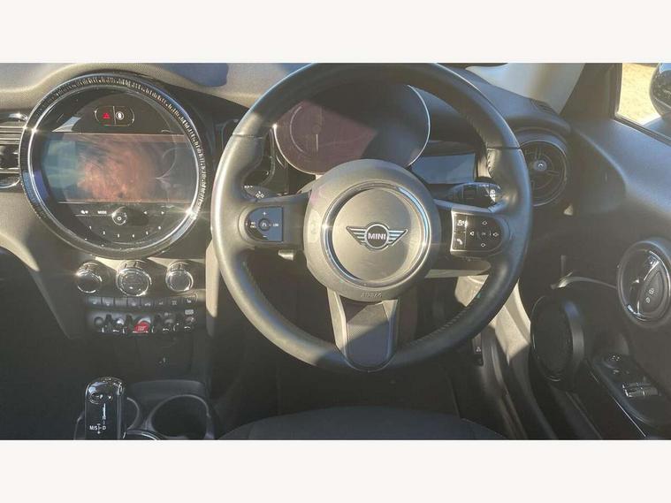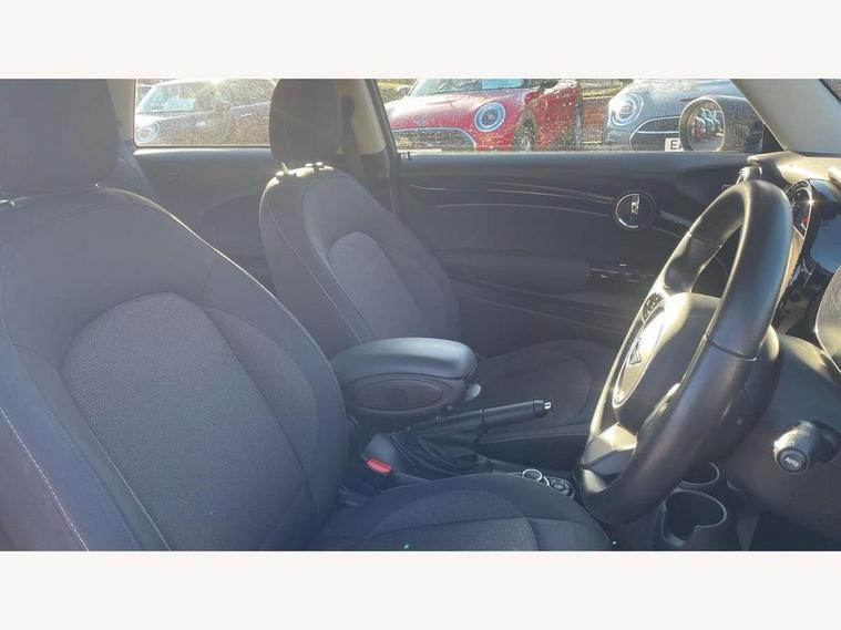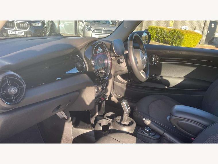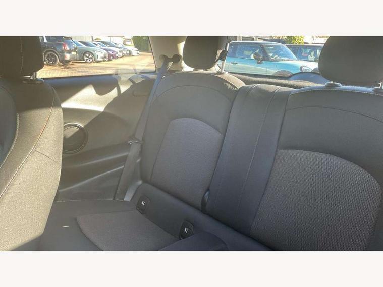 Apple CarPlay, Automatic start/stop function with brake energy recuperation, Compatible mobile phone bluetooth with audio streaming, Cruise control with brake assist, Electro-mechanical speed dependant steering assistance, Flexible car sharing preparation, Instrument cluster, Mini E-call, MINI TeleServices, On board computer, Service interval indicator, Double Vanos system, Fully variable valve control, High precision injection, Performance Control, Steptronic transmission with double clutch, 8.8" touchscreen with LED ring, FM tuner and DAB digital radio, 3rd brake light, Automatic headlight activation switch, Body colour fuel filler cap, Chrome border high gloss black slats radiator grille, Dynamic brake lights, Electric front windows, Exhaust tailpipe on left with chrome finisher, Heated rear window, Heated windscreen washer jets, LED headlight with closed ring and daytime driving lights, Metal door sill strips with MINI imprint, Model logo Cooper on right of tailgate, Rain sensor window wipers, Rear fog lights, Rear LED lights with union jack design, Rear window wiper, Side scuttle panel with integrated indicator, Sun/heat protection glass, White indicator lenses, 12V Accessory socket in centre console, 2 seat bench in 2nd row, 4 lashing eyes in luggage compartment, 60/40 split folding rear seat, Ambient lighting, Carbon black colour line - Knee roll and door armrest, Chrome interior highlights, Cupholders, Front and rear head restraints, Front and rear isofix with front passenger airbag deactivation, Front floor mats in velour, Glove compartment, Height and length steering column adjustment, Interior lighting with 12 different colours across the dashboard, underneath door bezel with illuminated laser-engraved design on central display, Leatherette gearshift lever and handbrake gaiters, LED reading lights, vanity mirror lights, front foot well light and spotlight on front seats, Manual air conditioning, Mechanical seat adjustment - forward/back & backrest for front seats and driver seat height adjust, Multifunction steering wheel, Passenger seat height adjuster, Satellite grey headlining including grab handles and clothes hooks, Single front passenger seat, Sport leather steering wheel with speed limiter and audio/communication controls, Storage compartments in doors, Sunvisors with vanity mirrors, 3 point seatbelts on all four seats, 6 Airbags - front, side, head and seat belt tensioners, Anti-lock braking system (ABS), DSC - Dynamic Stability Control, Front and rear disc brakes, Single tone fanfare horn, Tyre pressure monitoring system, Alarm system with tilt sensor, monitoring doors, bonnet interior and tailgate, Electronic vehicle immobiliser, Start/stop toggle with keyless go, Piano black interior trim, Tool kit, Tyre repair kit,