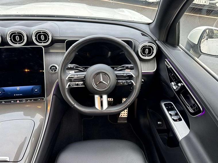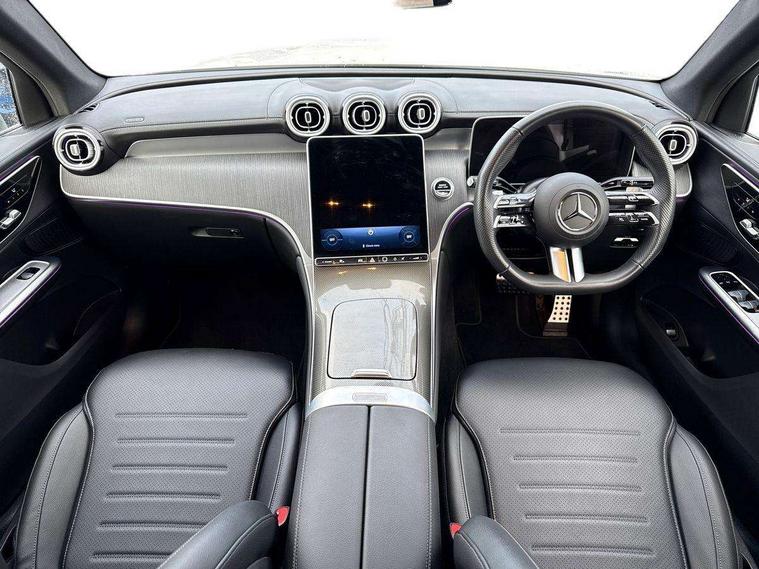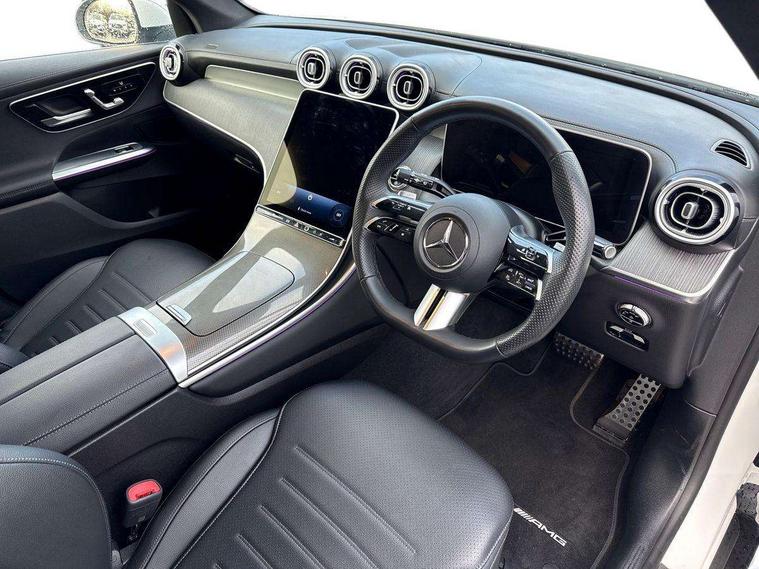11.9" high resolution multimedia colour display, 12.3" Digital individually configurable instrument display, Acoustic presence indicator, Active lane keeping assist, Attention assist, Blind spot assist, Bluetooth interface for hands free telephone, Collision prevention assist plus, Cruise control with speedtronic variable speed limiter, Dashcam - front camera for video recording, Direct steer speed sensitive steering, DYNAMIC SELECT with a choice of driving modes (ECO, Comfort, Sport, Sport+ and Individual), eCall emergency call system, ECO start/stop function, Fingerprint scanner, Fluorescent jacket for driver, Hard disc navigation, Instrument display in miles with English lettering, MBUX augmented reality for navigation, MBUX navigation premium, MBUX voice control activated by keywords "Hey Mercedes", Mercedes me connect, Outside temperature display, Remote boot release, Remote services, Road sign recognition system, Service indicator (ASSYST), Smartphone integration, Status display for rear seat belts in instrument cluster, Traffic sign assist, Trip computer, Wireless charging, 48V Mild hybrid technology, 4MATIC permanent four wheel drive, 62 litre fuel tank, 9G TRONIC plus automatic transmission, Diesel particulate filter, Sport suspension, DAB digital radio tuner, MBUX extended functions, Mercedes benz sound system, Pre installation for Mercedes Benz Link, Adaptive brake lights, Adaptive high beam assist plus, Aluminium look running boards with rubber studs, Aluminium roof rails, AMG bodystyling front apron, rear apron and side skirts, AMG Line exterior, Auto headlights, Body colour bumpers, Body colour door mirrors, Digital light LED headlights, Electrically adjustable door mirrors, Front and rear electric windows, Headlight washers, Heat insulating dark tinted glass, Heated rear window, High level LED brake light, Integrated LED daytime running lights, LED indicator lights, LED rear fog lights, LED tail lamp, Motor way mode function and locator lighting, Noise acoustic glass, Radiator grille with Mercedes Benz pattern and integreated Mercedes star and louvre in dark grey matt with chrome inlay and black frame, Rain sensor windscreen wipers, Range adjustable headlights, Rear side wing doors, Rear wiper, Transparent Bonnet, Two chrome plated tailpipe trim elements, Variable front intermittent wipers, Welcome and follow-me home light functionality, Wider wheel arch for AMG wheels, 3 seat bench in 2nd row, 40:20:40 split folding rear seats, Ambient lighting premium, AMG line interior, Artico man-made leather upholstery, Audio and onboard settings control on multifunction steering wheel, Automatic child seat recognition sensor, Black fabric roof lining, Black floor mats with AMG lettering, Double cup holder in centre console, Easy-pack removable load compartment cover, Electrically height/reach adjustable steering column, Front centre armrest with stowage compartment, Front head restraints, Galvanised steering wheel gearshift paddles, Heated front seats, Illuminated door sill panels with Mercedes Benz lettering, Illuminated glove compartment, Instrument panel and beltlines in ARTICO manmade leather in nappa look, Multifunction sports steering wheel in nappa leather, Rear centre headrest, Rear head restraints, Rear top tether child seat ISOFIX attachment, Single front passenger seat, Sports pedals with stainless steel surfaces and rubber studs, Sports seats, Sun visors, THERMATIC 2 zone automatic climate control, Anti theft protection package - GLC, Boot comfort package - GLC, Exterior chrome package - GLC, Interior chrome package - GLC, Interior lighting pack - GLC, Keyless-Go comfort package - GLC, Memory pack - GLC, Mirror pack - GLC, Parking package with 360 degree camera - GLC, Seat comfort package - GLC, Stowage space package - GLC, USB Plus Pack - GLC, 3 rear 3 point seatbelts, Active braking assist, Anti-lock braking system (ABS), ASR traction control, Automatic front passenger airbag deactivation, Black seat belts, Brake calipers with Mercedes-Benz lettering + perforated brake discs, Braking system with larger brake discs on the front axle, Child proof door locks, Dual-stage airbags - driver and front passenger, driver knee bag and window bags for driver, front passenger and rear passengers, Electronic parking brake, Electronic stability programme (ESP) with curve dynamic assist and cross wind assist, Front and rear seatbelt reminder, Front passenger seat occupancy sensor, Front seatbelt pretensioners, Hill start assist, Tyre pressure monitoring system, Warning triangle and first aid kit, Automatic door locking, Guard 360 degree vehicle protection plus, Interior protection/immobiliser, Remote central locking, Centre console in metal structure finish, Metal structure trim, 20" AMG 5 spoke aerodynamically optimised light alloy wheels in painted black with high sheen finish, Summer tyres, TIREFIT with tyre inflation compressor,