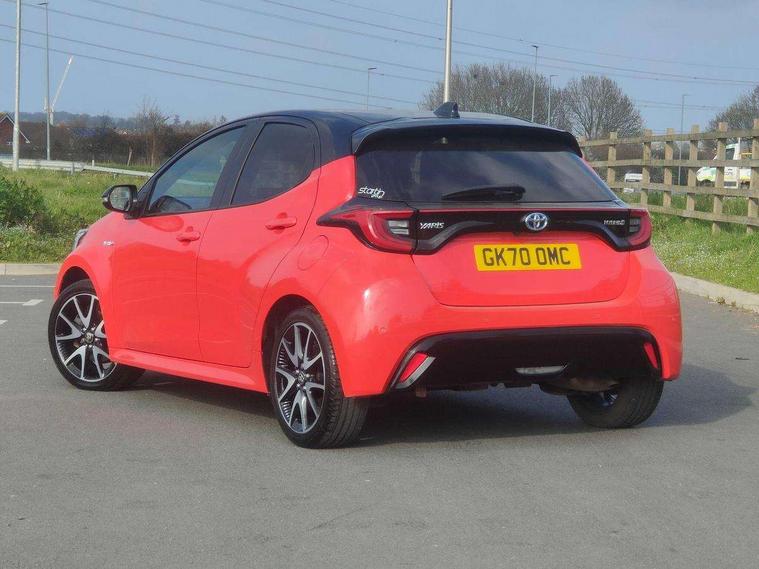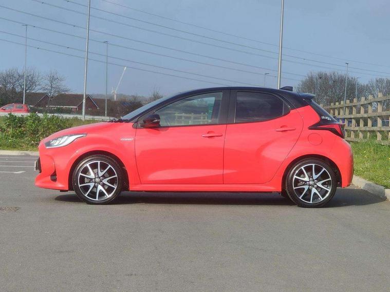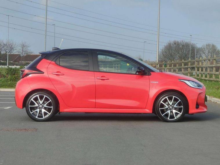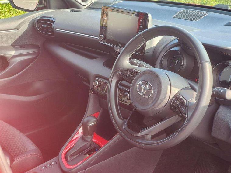 10" full colour head up display, Adaptive cruise control, Adjustable speed limit with speed warning, Blind spot monitoring, Bluetooth connectivity, Colour binocular inspired displays with digital speedometer, E-call, Electric power steering, Hybrid energy display, Multi information display switches on steering wheel, Reversing camera, Smartphone integration with Apple CarPlay and Android auto, Vehicle Stability Control (VSC), 8" Multimedia display touch screen, JBL Premium sound system with 8 speakers, Toyota Touch 2 with DAB, USB connection, Acoustic windscreen glass, Auto dimming rear view mirror, Auto windscreen wipers, Automatic headlights, Automatically retractable door mirrors, Black contrasting colour door mirrors, Electric adjustable heated door mirrors, Follow me home headlights, Front auto power windows with anti jam protection, Full LED rear lights, LED daytime running lights, LED front fog lights, LED Headlights, LED High mounted stop lamp, Painted front grille, Pearlescent bi-tone paint, Rear auto power windows with anti jam protection, Rear privacy glass, Rear spoiler, Shark fin antenna, Turning signal integrated indicators in door mirrors, 3 adjustable rear headrests, 3 spoke leather steering wheel, 60/40 split folding rear seat, Active headrests, Adjustable boot height, Ambient lighting, Coat hooks in rear grab handles, Cup holders (2 front & door), Data Communication Module (DCM) connected services, Dual zone automatic air conditioning, Fabric seat with partial synthetic leather upholstery, Front armrest, Front sport seats, Glovebox, Height adjustable driver's seat, Height adjustable passenger seat, Isofix seat fixing, Leather gearshift, Map pockets on the backs of the front seats, Pollen filter, Shopping bag hooks, Tilt/telescopic steering column, 3 point seatbelts on all rear seats, ABS+EBD+Brake assist, Electronic parking brake, Emergency brake light system (EBS), Front passenger airbag on/off switch, Front seatbelt reminder, Hill start assist control (HAC), Rear child proof door locks, Rear seat belt reminder, Supplemental Restraint System (SRS) 8 airbags: Driver & passenger's airbags, dual side curtain airbags, side impact airbags, front centre airbag, Toyota Safety Sense 2, Precollison + Night time Pedestrian & Cyclist Detection, Lane Trace Assist, Auto High Beam, Intelligent ACC & Road Sign Assist, Tyre pressure warning system, Alarm/immobiliser, Keyless smart entry with push button start, Remote powered central double locking doors, Piano black interior trim, Soft touch instrument panel, Space saver spare wheel,