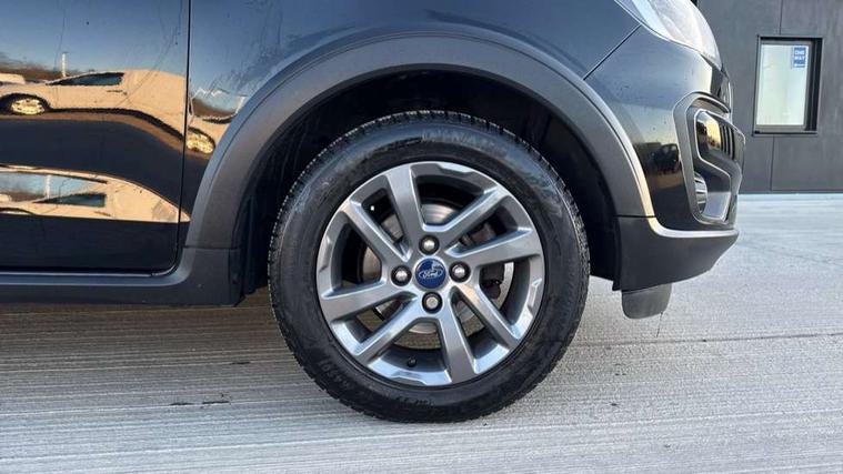 15" 4x2 spoke painted grey finish alloy wheels, Engine immobiliser, MyKey system, Perimeter alarm with remote central locking, Ford SYNC 3 DAB radio with 6.5" touch, emergency assistance, bluetooth, USB connectivity, applink, voice, steering wheel audio controls + 6 speakers, MP3 player, 3x3 point rear seatbelts, ABS, Curtain airbags, Deflation detection system, Driver and passenger airbags, Electronic Stability Programme (ESP), Front side airbags(head+thorax), Hill start assist, Passenger airbag + deactivate switch, TPMS (Tyre pressure monitoring system), Active logo front door threshold plates, Body colour door handles, Body coloured bumpers, Body coloured door mirrors, Electrically operated door mirrors with side indicators, Electrically operated front windows, Front fog lamps with day running lights, Privacy glass, Rear wiper, Rugged bodystyling kit with active front wing badges, Silver roof rails, Unique active design painted front grille, 3 rear head restraints, 60/40 split folding rear seat, All weather floormats, Cargo mats, Centre rear head restraint, Front head restraints, Height adjustable driver's seat, Isofix, Leather wrapped steering wheel, Rake adjustable steering column, Sienna cloth upholstery, Auto start and stop system, Cruise control, Ford easy fuel, PAS, Speed limiter, Trip computer, Rough Road Suspension,