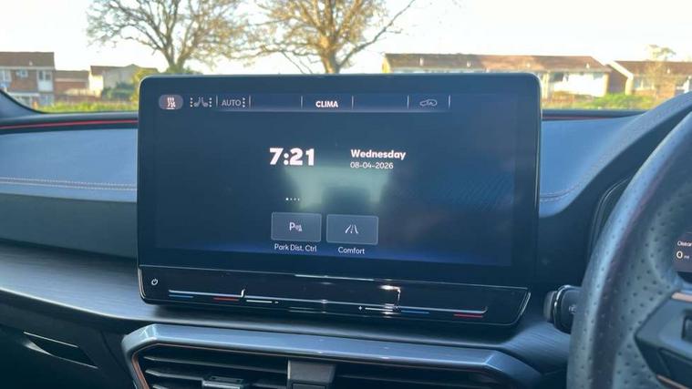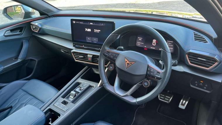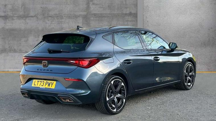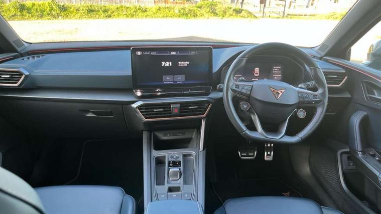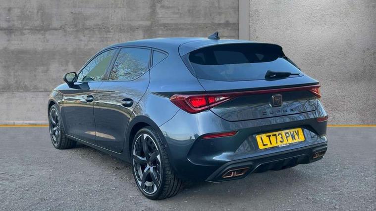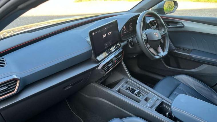 CUPRA drive profile selection with 4 modes (Comfort/Cupra/Sport/Individual), throttle response and gearshift mode, Digital cockpit, E-call, Four x USB Type C ports, Front assist with forward collision warning braking reaction to vehicles, pedestrians and cyclists, Full link smartphone integration with Mirror Link, wireless Apple CarPlay and wired Google Android Auto, Lane assist, Lockable tailgate, Park assist (inc front/rear parking sensors), Rear view camera, RPM, trip computer, outside temp gauge, instrument light brightness, low fuel warning light, lights on reminder, gearshift indicator, Service interval indicator, Start/stop system with regenerative braking, Wireless phone charger, 10 amp mode 2 charging cable, 16 amp mode 3 charging cable, 3.6 kw On-board charger, Standard suspension, XDS electronic differential lock and dynamic traction support, Auxiliary input socket, Auto dimming rear view mirror, Body colour door handles, Body coloured bumpers, Cupra sports bumpers, Dark tinted rear windows, Electric front/rear windows, Electrically adjustable, heated and folding door mirrors, LED front fog lamps with cornering function, LED rear fog lamp, Matrix LED Headlights with variable light distribution, Matrix Beam and Dynamic headlight range control, Rain sensing wipers, Rear coast to coast lighting, Rear diffuser with twin exhaust pipe on each side with simulated exhausts, Rear side wing doors, Rear wash/wipe, Separate daytime running light with automatic headlight control and coming home feature, Third brake light, 12v power supply in centre console, 3 seat bench in 2nd row, 5 headrests, 60/40 split rear bench seat with armrest, Ambient lighting (glovebox, footwell, ambient lighting multicoloured), Black headlining, Cupra sports pedals, CUPRA Supersports, heated steering wheel with satellite buttons, Dust/pollen filter, Folding boot cover, Front and rear reading lights X 4, Front centre armrest, Heated front seats, Height/reach adjust steering wheel, Illuminated interior front door sills, Interior wraparound lighting, ISOFIX points in outer rear seats with top tether anchorage points, Luggage tie-down hooks, Nappa leather upholstery, Powered driver seat with memory and manual height adjustment for passenger, Powered lumbar adjustment on driver side, manual on passenger side, Single front passenger seat, Sports bucket seats, Storage pockets on rear of front seats, Sunvisors with illuminated mirror, Three zone climate control, Tool kit, Dynamic and comfort pack - Leon Cupra, Media system plus with navigation pack - Leon Cupra, Safety and driving pack (XL) - Cupra leon, 3 point seatbelts on all rear seats, ABS, Brake control system - ESC and brake booster, Child proof door locks, Cupra black brake calipers, Driver and front passenger airbags with front passenger airbag de-activation, front side and curtain airbags, Electronic parking brake, Extended safety system - seat belt tensioner, window closure and hazard lights, Hill hold control, Rear disc brakes, Seat belt reminder for front and rear seats, Tiredness recognition system, Tyre pressure monitoring system, Anti theft alarm system with interior monitoring in cab, backup horn and towing protection, KESSY Advanced - Keyless start, keyless entry, Locking wheel bolts, Chrome and copper interior detailing, Copper stitching on dashboard trim, 19" Aerodynamic machined sport black and silver alloy wheels with 91Y tyres, Breakdown kit,