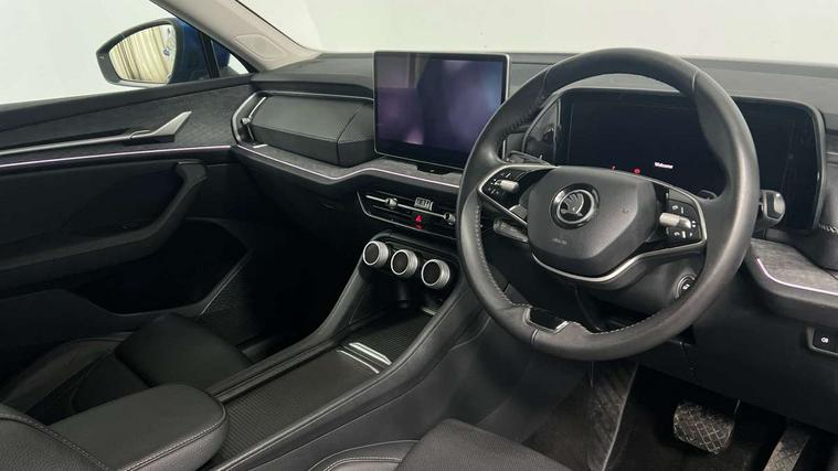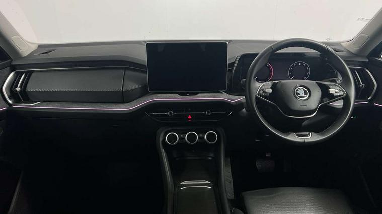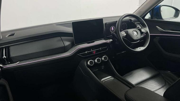 13" satellite navigation touchscreen display, Blind spot detection with door exit warning, Bluetooth system, ChatGPT functionality, Drive mode selector, Driver alert with fatigue sensor, Driver drowsiness alert system, Dry display cleaner, e call+, Front cross traffic assist, Lane assist, PAS, Rear traffic assist, Tailgate unlocking from outside, Traffic sign recognition, USB C Port x 2 in front centre console, Virtual Cockpit - 10.25" digital display, Voice control system, Wireless charging for two smartphones (15W) with cooling function, Wireless SmartLink for Apple CarPlay and Android Auto, Stop/start function, 2x USB-C in the rear, DAB Digital radio, Aero front windscreen wipers with intermittent function, Auto dimming rear view mirror, AWL (all weather lighting) and all weather light with cornering function, Black wheel arch surrounds, Body colour bumpers, Body colour door mirrors and handles, Cornering light and poor weather light, Electric folding /adjustable/separted heated/folding door mirrors, auto dimming with boarding sports and memory function, Electric front and rear windows, Exterior black decorative trims, Heat insulating glass in windshield, Heated rear window, Ice scraper in fuel tank cap, Invisible tailpipe, LED daytime running lights, LED rear fog light, LED third brake light in rear spoiler, Light assistant with automatic headlight control and coming home feature, Logo projection in door mirrors, Privacy glass, Rear side wing doors, Rear spoiler, Rear window wiper, Red decorative strip between rear LED lights, Safety reflectors on front and rear doors, Window control switches with black trim, Windscreen wipers with rain sensor, Without engine designation, 1.5l bottle holder points in all door, 12V socket in boot, 1x centre rear reading light, 2 seat bench in 3rd row, 3 configurable smart dials with 32mm coloured display, 3 seat bench in 2nd row, 4 foldable roof handles with rear coat hooks, Ambient interior lighting - Dashboard, front-door stowage compartments, front and rear door panels and footwell lighting, Automatic gear selector on steering wheel, Chrome interior door handles, Driver/front passenger reading lights, Fabric headlining, Fixed bench 40:60:40 split folding backrests, Front and rear floor mats, Front centre armrest with jumbo box storage compartment, cup holder and 12V socket, Front courtesy lights, Height adjustable front headrests, Isofix child seat fittings in outer middle row rear seats and front passenger with top tether, Manually adjustable steering column, Pollen filter, Rear centre armrest with cupholders, Rear seat boot backrest release, Retractable luggage compartment cover, Single front passenger seat, Sliding trunk cover, Small Bags on the inner sides of the front backrests, Storage pocket including mobile phone pockets on the backs of the front seats, Sunvisors with illuminated vanity mirrors, Three rear height adjustable headrests, Ticket holder on A Pillar, Tri zone climate control, Umbrella in door panel x1 made from sustainable materials, Upper and lower glovebox with card holder and coin compartment, USB C port by rear view mirror for charging only (15W), Exterior styling pack - Kodiaq, Auto door release and activation of warning lights in the event of an accident, Driver and front passenger airbag with knee airbag and front passenger airbag deactivation, Electric child locks, Electronic parking brake, ESC (incl. ABS+EMD+MSR+ASR+EDL+HBA+DSR+RBS+ESBS+MCB+TSA+XDS), Front assist with braking reaction to vehicles, pedestrians and cyclists, Front disc brakes, Fuel cut off safety device, Height adjustable front 3 point seatbelts + pretensioners, Hill hold control, Junction assist with automatic emergency braking, Rear disc brakes, Safety vest holder in door, Seat belt reminder for all seats, Three point rear seat belts, Two tone horn, Tyre pressure monitor, Anti-theft wheel bolts, Immobiliser, Remote central locking with 2 keys, Breakdown kit,