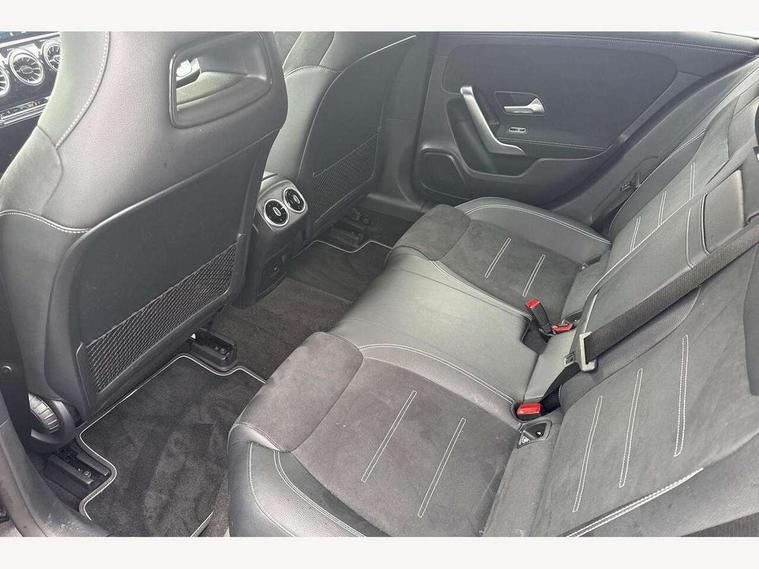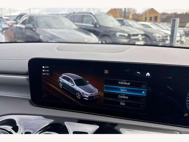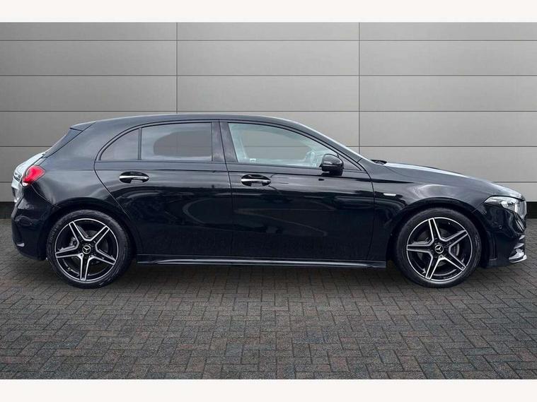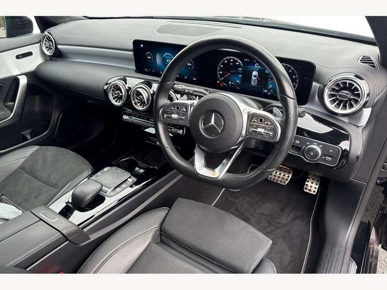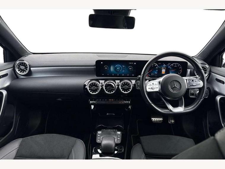 10.25" Digital instrument cluster display screen, 10.25" media display, 180 degree rear view camera with parking guidelines, Active parking assist with visual and audible warning of detected obstacles, Attention assist, Brake pad wear indicator warning light, Car wash mode, Cruise control + speed limiter, Direct steering, Dual bluetooth interfaces, DYNAMIC SELECT with a choice of driving modes (ECO, Comfort, Sport and Individual), ECO start/stop function, Fluid level warning indicator for fuel, oil, coolant and washer fluid, Hard-disk navigation, Hey Mercedes Voice activation, Lamp failure indicator, Lane keeping system, Mercedes me connect including emergency call system, accident recovery, breakdown and maintenance management, Mercedes me remote services, Outside temperature gauge, Owners manual in English, Pre-installation for private car sharing, Preinstallation for Mercedes Benz link, Service indicator (ASSYST), Smartphone integration with Apple CarPlay and Android auto, Speed sensitive power steering, Trip computer, Ultrasonic sensors positioned in the front and rear bumpers, Lowered comfort suspension, Rear axle torsion beam, 10 speakers, 2 USB ports (type C) in rear stowage compartment and one in front of center console, DAB Digital radio, MBUX multimedia system with DAB digital radio and touchpad including satellite navigation, Mercedes-Benz sound system - 100W, 4 Electric Front and Rear windows, Adaptive brake lights, AMG bodystyling - Front apron with splitter in chrome, rear apron with chrome trim and chrome visible trim elements in tailpipe, Automatic headlights, Black weather strip, Body colour bumpers, Body colour door handles, Body colour side skirt, Body coloured door mirrors, Electric adjustable and heated door mirrors with integrated LED side indicators, Exclusive diamond radiator grille, Exhaust system - Twin visible tailpipes in polished stainless steel, Headlamp assist automatic headlamp activation, Heated glass rear windscreen + timer control, High gloss black beltline, LED High level third brake light, LED high performance headlamps with integrated LED daytime running lights, LED tail lamp, Privacy glass, Radio aerial, Rain sensing windscreen wipers with two sensitivity settings, Rear fog lights, Rear side wing doors, Rear wiper, Window line trim strip in high gloss black, 3 seat bench in 2nd row, 3 Spoke flat bottom leather multi function steering wheel with perforated leather in grip area, 40:20:40 split folding rear seats, Artico man-made leather/Microfibre Dinamica upholstery with contrast stitching in light grey, Auto Mercedes-Benz child seat recognition sensor, Black air vents with surround in silver chrome, Black roof lining, Brushed stainless steel sports pedals with rubber studs, Controller on centre console with chrome surround, Floor mats with black top stitching and embroidered edition logo and piping in light grey, Front centre armrest with storage compartment, Front seat backs luggage nets, Front seat cushion length adjustment, Galvanished gear shift paddles on steering wheel, Heated front seats, Height/reach adjustable steering column, Illuminated front door sills with changeable cover, Interior lighting - 64 colour Ambient lighting, Interior mirror with reading lamps in black and frameless, Manual height adjustable front seats, Rear armrest with 2 cupholders, Rear head restraints, Seat occupancy sensor for front passenger seat, Single front passenger seat, Sports seats with integrated headrests, Stowage compartment in centre console with retractable cover, Sunvisors with illuminated vanity mirrors, Touchpad on center console, Twin front cupholders, Two zone thermotronic luxury automatic climate control, Light and sight pack - A Class, Mirror package - A Class, Night pack - A Class Saloon/Hatchback, Seat comfort pack - A Class, 3 rear 3 point seatbelts, ABS with Brake Assist, Active bonnet, Active brake assist includes forward collision warning system with autonomous braking, Adaptive brake assist with hold function and hill start assist, Childproof locks manually operated for rear doors and electrically operated for rear power windows, Crash responsive emergency lighting, Driver and passenger head and side airbags, Drivers knee airbag, Dual stage driver/passenger airbags, Electronic parking brake, ESP curve dynamic assist, ESP with ASR, Front and rear seatbelt reminder, Front brake callipers with Mercedes Benz lettering, ISOFIX and top tether child seat fixing points in two outer rear seats, Tyre pressure monitoring system, Warning triangle and first aid kit, Window airbags, Alarm system/interior protection/immobiliser, Keyless entry lock/unlock, Keyless Go, Remote central locking and crash sensor with emergency opening function, Urban guard vehicle protection system with immobiliser and interior protection, Black seatbelts, Matrix look light longitudinal grain aluminium trim element, 18" AMG 5 twin spoke light alloy wheels aerodynamically optimised painted in black with highsheen finish, Summer tyres, Tirefit sealant kit,