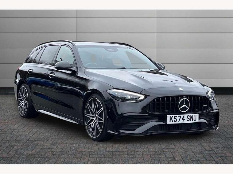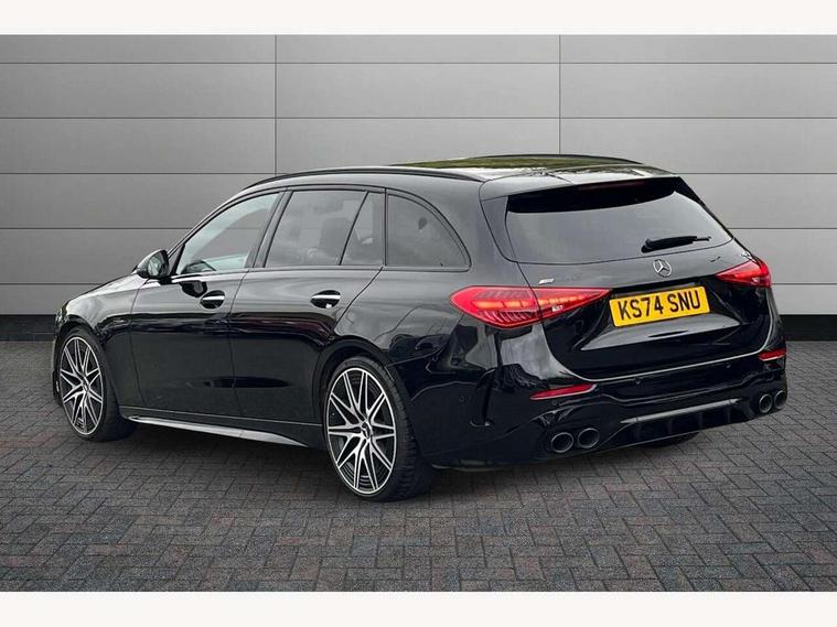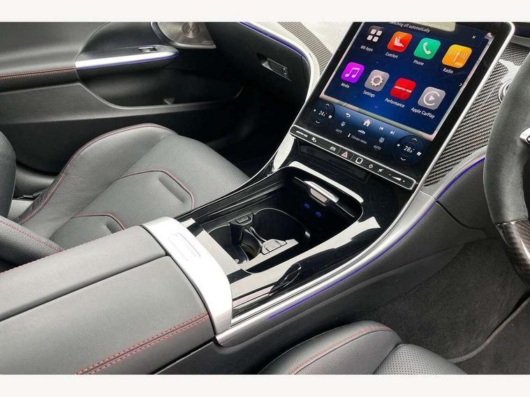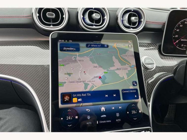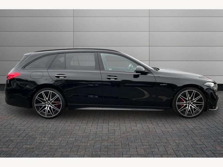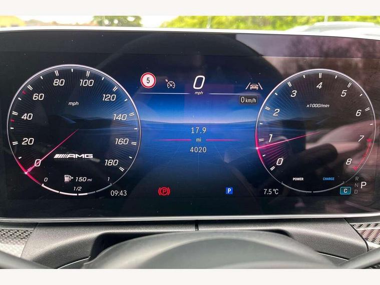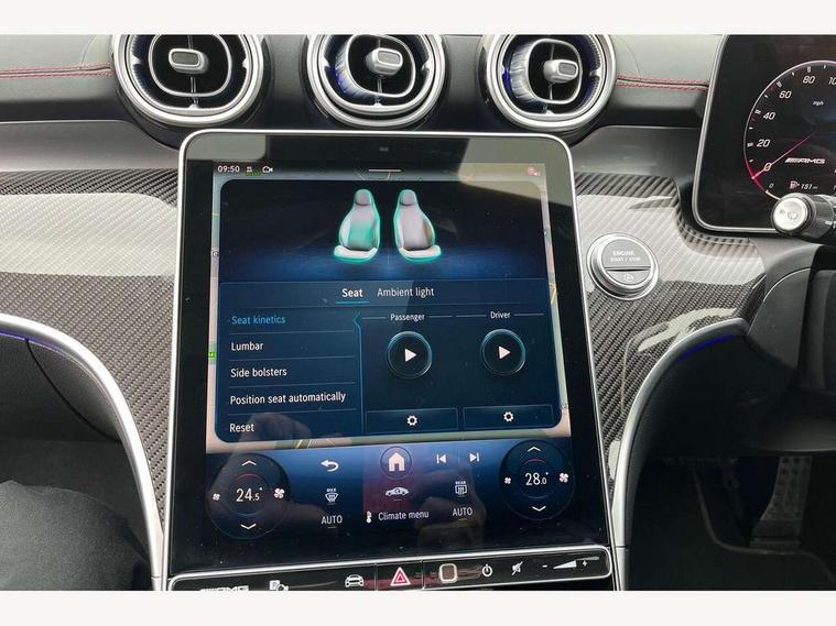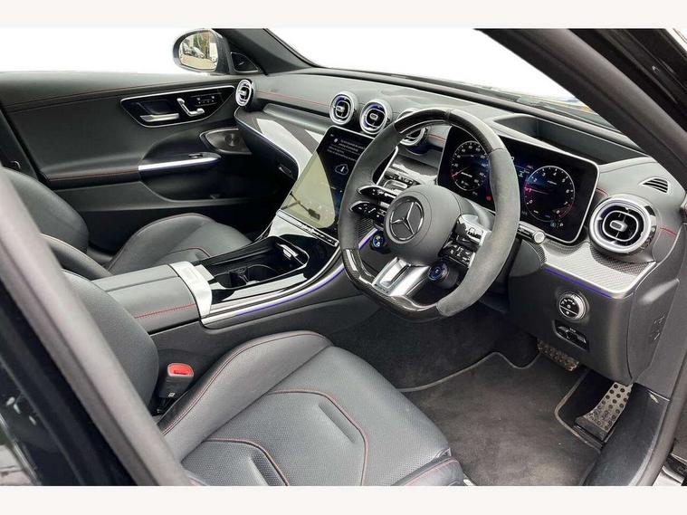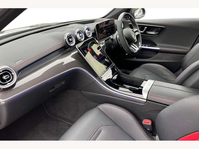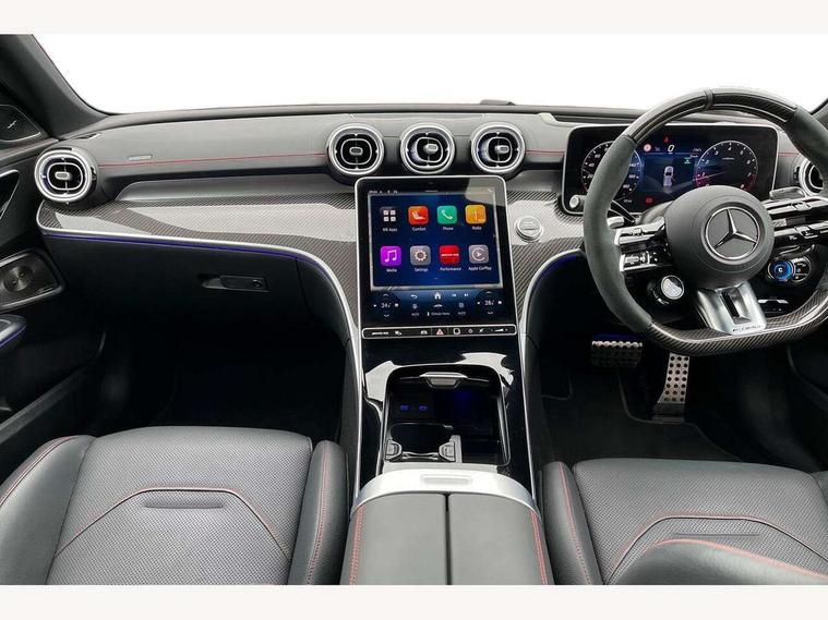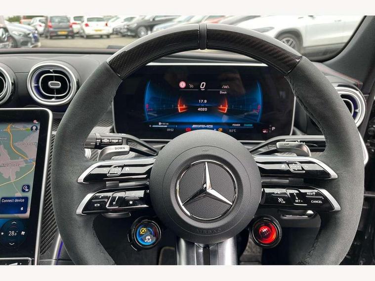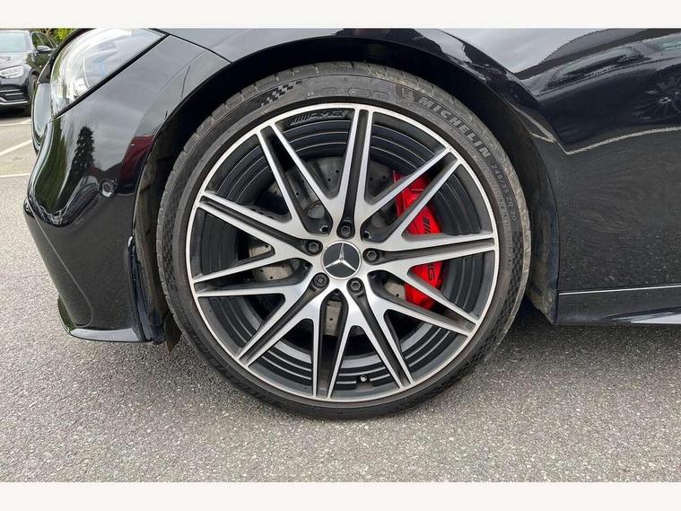 11.9" high resolution multimedia colour display, 12.3" digital instrument cluster display, Active parking assist with PARKTRONIC, AMG DYNAMIC SELECT with a choice of driving modes (Slippery, Comfort, Sport, Sport+, Individual), Attention assist, E-call, Extended MBUX functions, Finger print sensor, Fluorescent jacket for driver, Hard disc navigation, Head up Display, MBUX augmented reality for navigation, MBUX Interior assistant, MBUX navigation premium, Mercedes me remote services, Outside temperature gauge, Rear axle steering, Service indicator (ASSYST), Smartphone integration, Sports direct steer speed sensitive steering, Status display for rear seat belts in instrument cluster, Tailgate, Traffic sign assist, Wireless charging system for mobile devices, 9G TRONIC 9 speed automatic transmission, AMG Ride Control suspension, Petrol Particulate Filter, Suspension with adaptive damping system, Burmester 3D surround sound system, DAB Digital radio, MBUX multimedia system, Adaptive brake lights, Adaptive high beam assist plus, AMG body styling front apron, rear apron and side skirts, AMG fuel cap, AMG illuminated door sills with AMG lettering and with exchangeable cover, AMG Real Performance Sound, Black roof rails, Body coloured bumpers, Digital light LED headlamps, Electric panoramic glass sunroof, Electric windows with one touch opening/closing and obstruction sensors, Electrically adjustable and heated door mirrors, Flared wheel arches, Heat insulating dark tinted glass, LED daytime running lights, LED Indicators, LED tail lights, LED third brake light, Mercedes AMG exterior, Noise acoustic glass, Rain sensor with automatic windscreen wiper activation, Rear side wing doors, Rear wiper, 3 seat bench in 2nd row, 40:20:40 split folding rear bench seat, Ambient lighting premium, Ambient lighting with projection of brand logo, AMG floor mats, AMG Leather upholstery, Auto Mercedes-Benz child seat recognition sensor, Black roof liner, Double cupholder in centre console, Electrically height/reach adjustable steering column, Folding rear seat backrest, Front and rear head restraints, Gearshift paddles on steering wheel, Illuminated glove compartment stowage, Load compartment cover, Mercedes AMG interior, Rear top tether child seat ISOFIX attachment, Single front passenger seat, Sports seats, Sunvisors with illuminated vanity mirrors, Thermotronic automatic 4 zone climate control, AMG DYNAMIC PLUS package - C Class, AMG exterior carbon pack II - C Class, AMG exterior night pack - C Class, AMG exterior night pack II - C Class, AMG performance high end seat pack - C Class, AMG Styling package - C Class, Boot comfort package - C Class, Easy pack tailgate - C Class, Interior light package - C Class, Keyless go comfort package - C Class, Memory package - C Class, Mirror package - C Class, Parking package with 360 degree camera - C Class, Stowage space pack - C Class, USB package plus - C Class, 3 rear 3 point seatbelts, Active bonnet pedestrian safety measure which detects an impact and raises bonnet, Adaptive brake system with HOLD function and brake drying in the wet, AMG high performance braking system, Anti-lock braking system (ABS), Child proof door locks, Drivers knee airbag, Drivers pelvis airbag, Dual stage driver/passenger airbags, Electric parking brake, Electronic Stability Programme (ESP), Front centre airbag between driver and front passenger seats, Front side airbags, Tyre pressure monitoring system, Warning triangle and first aid kit, Window airbags for driver, front passenger and rear passenger, Antitheft alarm system, Interior monitoring system and Increased antitheft protection, Central locking with interior switch, automatic locking and crash sensor with emergency opening function, Chrome surround in electric key, Dashcam, Urban guard vehicle protection plus, Carbon fibre trim with centre console in high gloss black, Dashboard, instrument panel and beltlines in ARTICO man made leather in nappa look, 20" AMG 10 twin spoke light alloy wheels in matt black with high sheen finish, TIREFIT with tyre inflation compressor,
