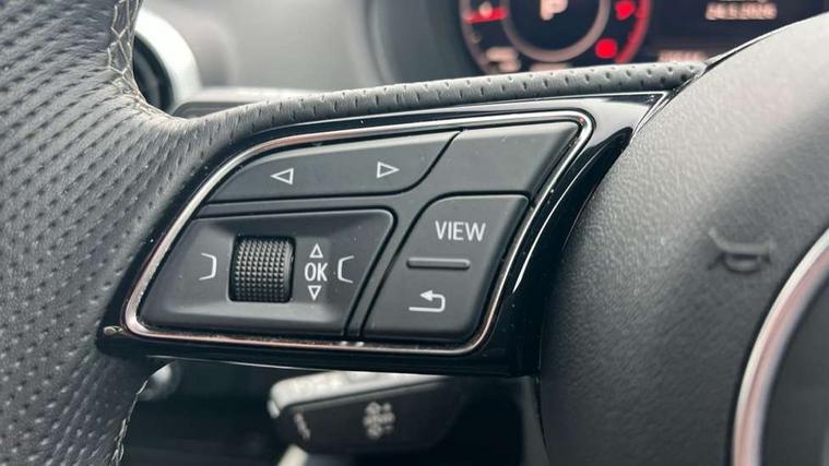3D map display, Audi connect navigation and infotainment includes innovative services, Audi connect remote and control connects your vehicle to your smartphone, Audi drive select: S tronic - power steering assistance + engine + gearshift (modes: comfort, auto, dynamic, efficiency, individual), Audi smartphone interface - Apple carplay/Android Auto, USB connect, 2xSDXC card readers, voice control for navi, telephone, music and 3rd party apps, Audi virtual cockpit, Automatic start/stop system with recuperation, Bluetooth interface includes bluetooth audio streaming, Cruise control, Distraction and Fatigue warning, E-call, Jukebox hard drive memory for music (10GB), Lane departure warning, MMI navigation plus with 8.8" touchscreen, Natural voice recognition, Power operated tailgate, Progressive steering, Rear parking sensors, Sport suspension, 6 passive loudspeakers, DAB Digital radio, USB type C port, Auto dimming rear view mirror, Black window trims, Body colour door mirrors, Electrically adjustable, folding, auto dimming and heated door mirrors with integrated LED side indicators, Front windscreen with grey tinted sunband, LED daytime running lights, LED headlights with dipped beam, high beam, position lights, indicators, LED rear lights, LED third brake light, Privacy glass - dark tinted rear and rear side windows from B-pillar backwards, Rear side wing doors, Rear wiper, S Line badges on the front wings, S Line body styling - front and rear bumpers, side skirts, radiator grille, rear diffuser insert and front air intakes, Variable front intermittent wipers, Wheel arch trims in manhattan grey, 12v socket in front, 3 seat bench in 2nd row, 3 spoke multi-function leather steering wheel with S badging, 4-way electric lumbar support for front seats including manual seat height adjustment for both front seats, 60/40 split folding rear seat bench, Black carpets, Black cloth headlining, Front and rear head restraints, Front centre armrest, Front sport seats, Front/rear floor mats, Height/reach adjust steering wheel, Illuminated door sill trims with S logo, ISOFIX child seat mounting in front passenger and rear outer seats, Manual air conditioning, Single front passenger seat, Stainless steel pedals, 3x3 point rear seatbelts, 6 airbags - Front, curtain and front side airbags, Electromechanical parking brake, Electronic stabilisation control including ABS, ASR and EDL, Front passenger airbag deactivation, Hill hold assist, Pre-sense front with pedestrian recognition, Seatbelt monitoring, Tyre pressure warning light with visual and acoustic warning, Warning triangle and first aid kit, Anti theft alarm, Anti theft wheel bolts, Electronically operated child locks, Remote central door locking, Aluminium interior element, Black dashboard, Gloss black centre console, Matt brushed aluminium trim inlays, Tool kit,