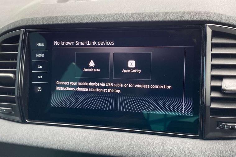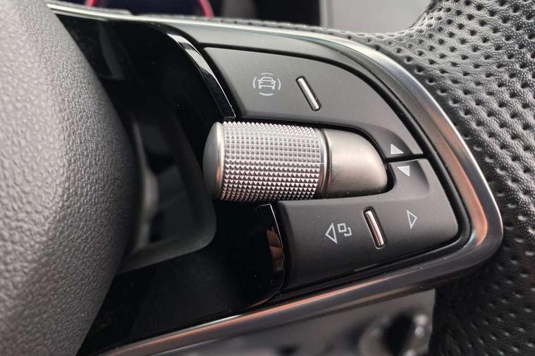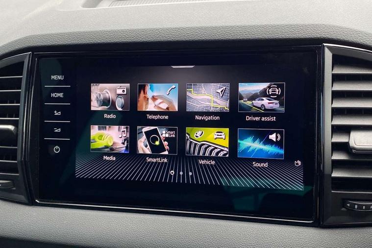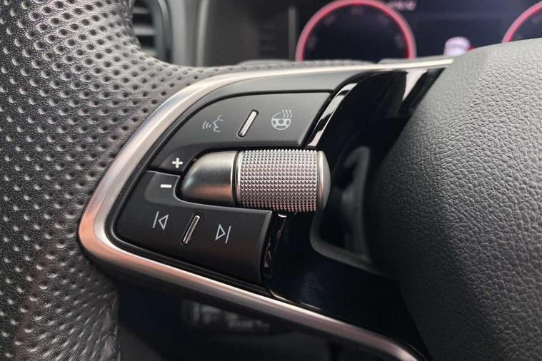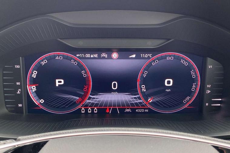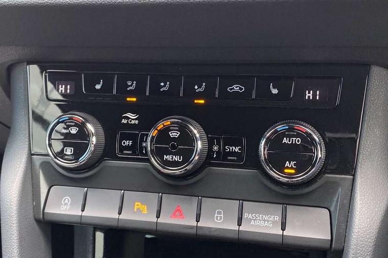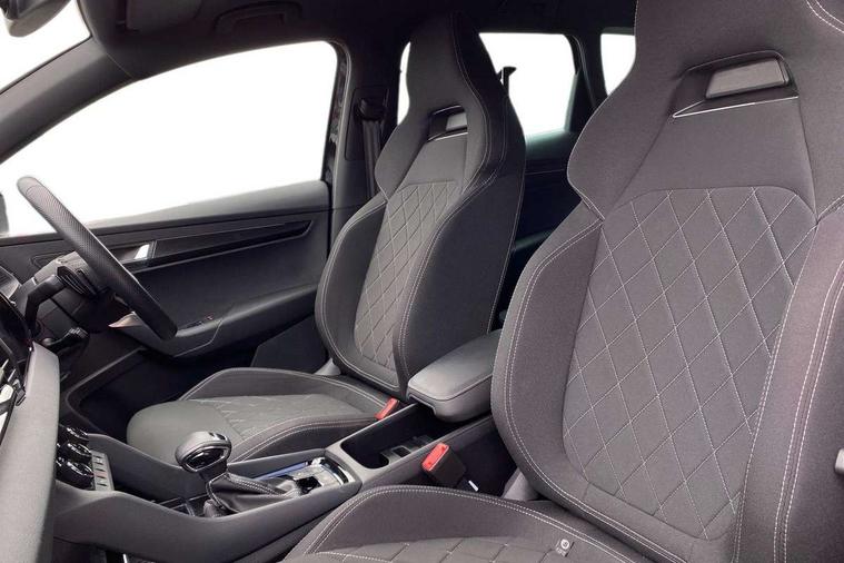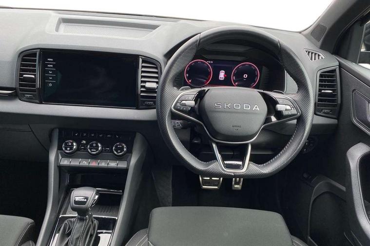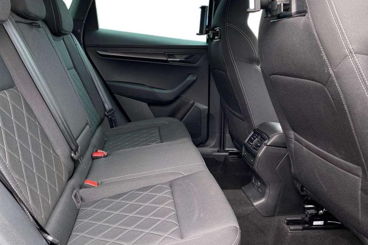 Advanced driver attention and drowsiness monitor, Emergency services call system, Outside temperature gauge, Sensor for driver assistance systems, Service interval indicator, SmartLink wireless for Apple and wired for Android, Start/stop system with regenerative braking, Traffic sign recognition, USB C Port x 2 in front centre console, Virtual Cockpit - 10.25" digital display, Virtual pedal with electrically operated boot door, Wireless smartphone charging, DAB radio with Bluetooth, USB connection, Acoustic glass, Aero front windscreen wipers with intermittent function, Auto dimming rear view mirror with light and rain sensors, Black door mirrors, Black electric window control buttons, Black radiator grille, Black roof rails, Body colour door handles, Electric front and rear windows with child proof lock, Extended rear roof spoiler, Front door steps with SportLine logo, Heated rear windscreen, LED daytime running lights, LED rear lights with high functionality welcome effect and dynamic indicators, Light assistant (coming/leaving home/tunnel light), Panoramic sliding sunroof, Plastic scuff plates in door apertures, Privacy glass, Protective door side sills in body colour, Rear diffuser, Rear side wing doors, Rear window wiper with washer system and intermittent control, Safety reflectors on front doors, Skoda lettering on tailgate in black, Sportline badge on front fender, Sports front and rear bumpers, Third brake light, Unique dark chrome design logo on alloy wheels, 1.5 litre bottle holders in driver and front passenger door panels, 12V socket in boot, 12v socket in front centre armrest with storage compartment and rear air vents, 2 x Tablet holder, 3 rear height adjustable headrests, 3 seat bench in 2nd row, 3 spoke sports leather heated multifunction steering wheel with DSG paddles, 4 foldable roof handles with rear coat hooks, Black floor carpet, Cargo elements in boot, Chrome inner door handles, Foldable hooks in the boot, Front head restraints, Height adjustable front three point seats belts with tensioners, Height/reach adjust steering wheel, Ice scraper, Illuminated glovebox, Illuminated luggage compartment, Isofix child seat preparation for front passenger seat, Isofix child seat preparation outer rear, Manual lumbar support for front seats, Pen holder, Pollen filter, Rear backrest release from boot, Rear boot cover, Rear package tray, Rear reading lights, Rear seats fixed folding and divided 60:40, Rubbish bin door, Safety vest holder, Single front passenger seat, Skoda lettering on steering wheel, Sportline decorative inserts, Storage box in upper central dashboard closed, Sunvisors with illuminated vanity mirrors, Textile floor mats, Ticket holder, Titan black interior ceiling, Umbrella under passenger seat, Under passenger seat storage compartment, Columbus pack - Karoq, LED Interior lighting pack with Skoda welcome logo - Karoq, Light Pack - Karoq, Non Smokers pack, Performance pack - Karoq, Winter plus pack with heated front and rear seats - Karoq, Automatic door unlocking in case of crash, Automatic fuel cut off in case of crash, Driver airbag, Electronic parking brake with auto hold function, Emergency rear braking signal, ESC (incl. ABS+MSR+ASR+EDS+HBA+DSR+RBS+MKB), Front side airbags, Head airbags, Hill hold control, Knee airbags, Passenger airbag with switch-off function, Pedestrian monitor, Seatbelt reminder signalisation and pretensioner for all seats, Three point seatbelts rear, Two tone horn, Tyre pressure monitor, Alarm with interior monitoring, back up horn and tilt sensor with safe function, Electronic engine immobiliser, Keyless entry and start/stop, Remote central locking with 2 remote folding keys, Black air vent surround, Black centre console, carbon door decor, Satin black dashboard, Satin black door trim, 19" Sagittarius anthracite alloy wheels, Anti-theft wheel bolts protection, Breakdown and tool kit,