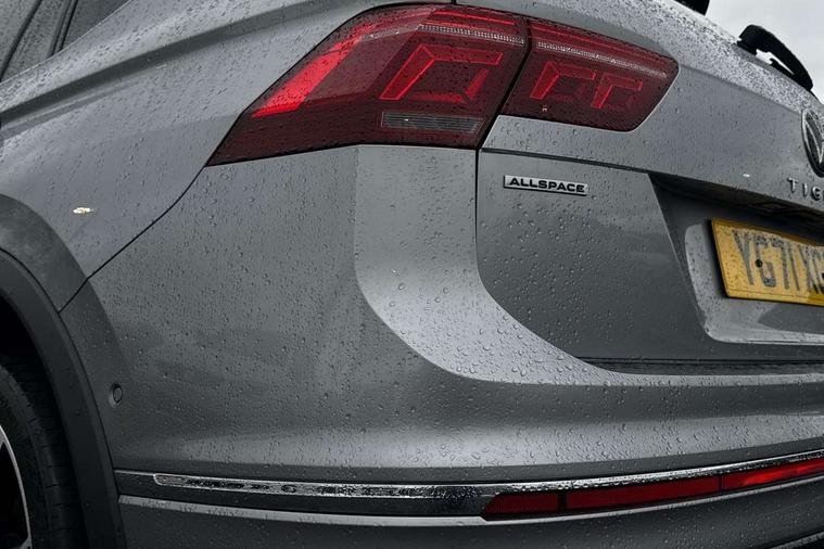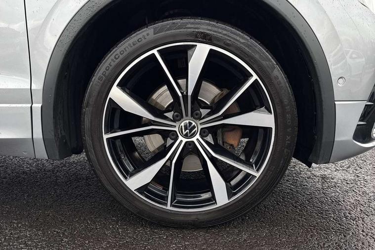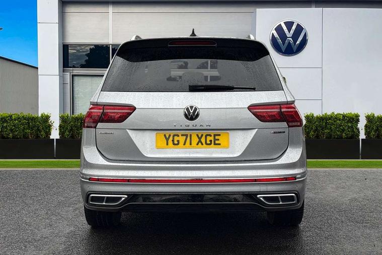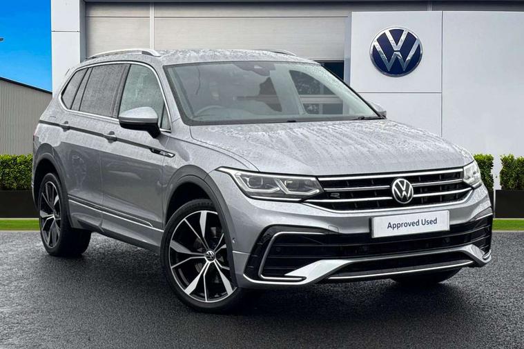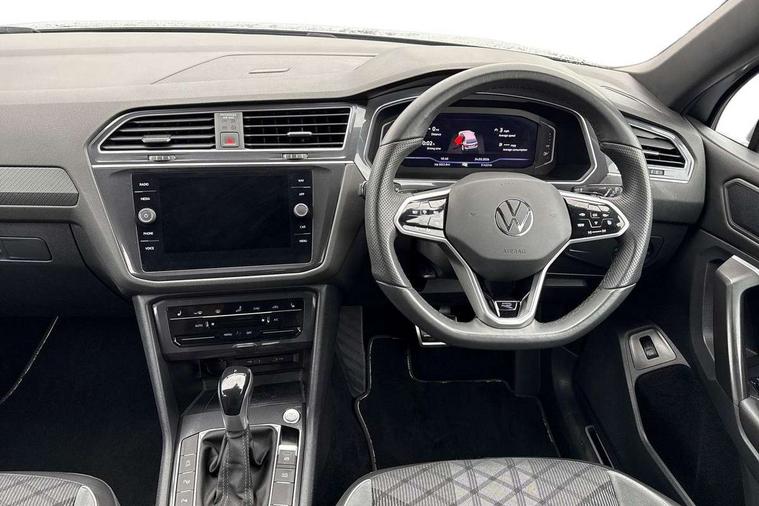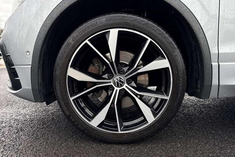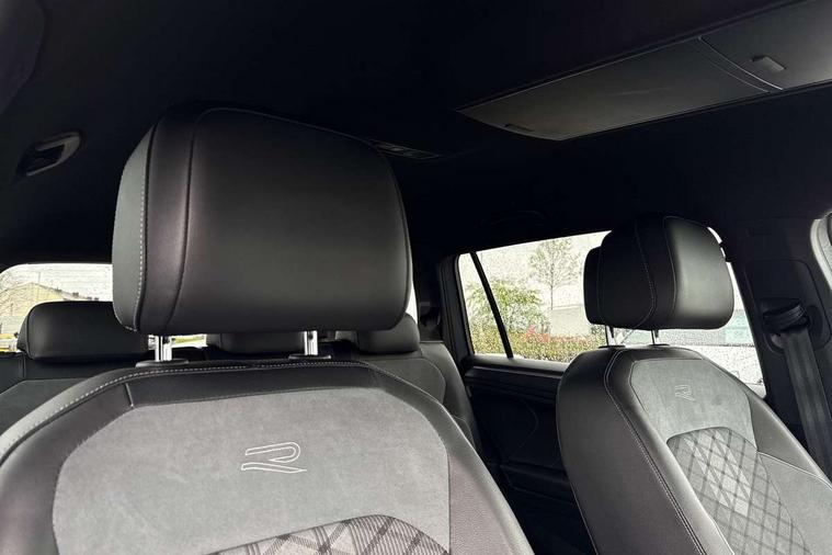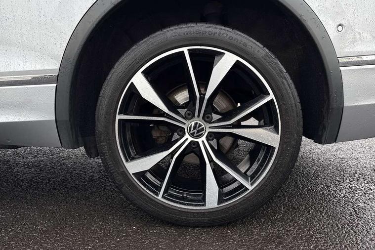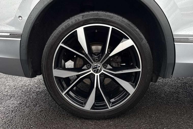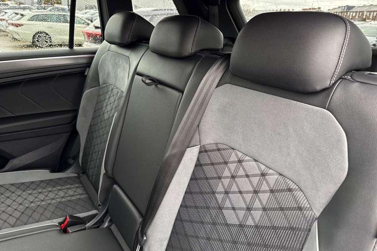 Adaptive cruise control, App-Connect, Digital cockpit pro, Driver alert system, Driver profile selection, Dynamic road sign display, eCall emergency call service, Electric boot lid, Lane change system side assist and rear traffic alert, Lane keeping system Lane Assist, Mobile phone interface comfort with inductive charging feature, Multifunction front facing camera, Progressive steering, Speedo and rev counter, electronic odometer, trip, service interval display and exterior temperature gauge, Start-stop system with battery regeneration (recuperation - energy recovery during braking), 2 USB-C ports in the front, 1 USB-C charging socket on the center console in the rear, DAB Digital radio, Diversity antenna for FM reception, Radio, Auto dimming interior rear view mirror, Automatic headlight control system, Body coloured bumpers in R Line style, Chrome mouldings on side window, Coming/leaving home lighting function, Exterior badge deletion, Exterior mirror housings painted in silver, Heated windscreen washer jets, Privacy glass, Rear fog light, Rear spoiler in R style, Silver roof rails, Third brake light, 12-volt outlet in centre console rear and luggage compartment, 12V socket in centre console, 3 head restraints in rear, 3rd row seats, Air Care Climatronic 3 zone automatic climate control with enhanced air filter and controls in the rear, Black roof lining, Door and side trim panel with leatherette insert, Drawers under front seats, Driver and front passenger seat height adjustment, Foldable front passenger seat backrest, Front + rear carpet mats, Front centre armrest, Front footwell illumination, Heated front seats, Heated leather wrapped multifunction sports steering wheel with touch control and shift paddles, Illuminated scuff plates, ISOFIX anchorage points for mounting 2 child seats on rear seats and i-Size child seats, Leather gearshift handle, LED interior light with switch off delay/dimmer and 2 front/rear LED reading lights, Stainless steel pedals, Sun visors with illuminated vanity mirrors, Ambience pack - Tiguan Allspace R Line, Driver assistance plus package - Tiguan Allspace, Park assist pack - Tiguan Allspace, 3 point seat belt for centre rear seat, 3 rear three point seatbelts, ABS+EBD+Brake assist, Driver and front passenger safety-optimised head restraints, Driver's and front passenger's airbag with front passenger's airbag deactivation switch, Electronic parking brake, Electronic Stability Control (ESC) inc EDL (Electronic Differential Lock) and ASR (Traction Control), Height adjustable front 3 point seatbelts + pretensioners, Pedestrian monitoring, PreCrash preventive occupant protection Front and rear, Rear disc brakes, Side airbag in front and rear with curtain airbag, Two tone horn, Warning buzzer for seatbelts if unfastened, Anti theft alarm system with interior monitoring, backup horn and towing protection, Anti-theft wheel bolts, Electronic steering lock, Remote central locking with 2 remote folding keys, 20" Misano black with diamond turned surface alloy wheels with Airstop tyres,