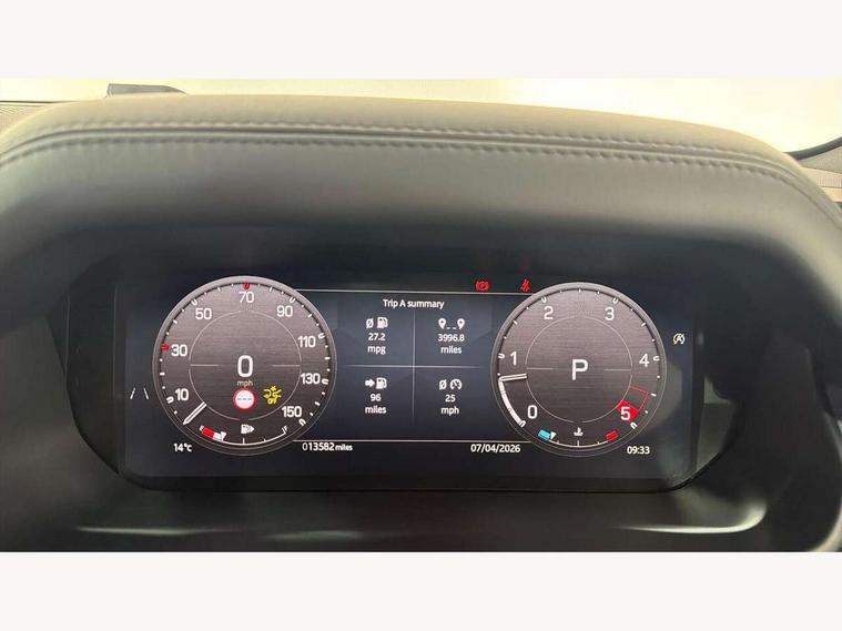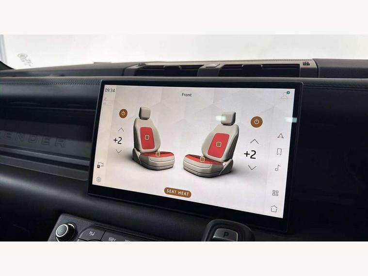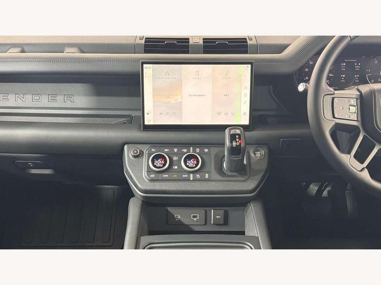 11.4" touchscreen, 360 degree parking aid, 3D Surround Camera with 360 View, 180 Rear View, Front Traffic Detection, Forward Vehicle Guidance, Tow Hitch Assist and clear sight Ground View, Adaptive cruise control, Android Auto, Apple CarPlay, Assisted tailgate with soft close, Blind spot assist, Bluetooth system, Brake pad wear indicator, Clear exit monitor, Connected navigation pro, Driver condition monitor, Electric power assisted steering (EPAS), Interactive driver display, Lane keep assist, Rear collision monitor, Rear traffic monitor, Traffic sign recognition with adaptive speed limiter, Trip computer, Wade Sensing, All wheel drive system, Coil suspension system, Twin speed transfer box, DAB Radio (Digital Audio Broadcasting), Pivi pro connected, Auto dimming interior rear view mirror, Automatic headlight levelling, Automatic headlights, Black exposed rear recovery eyes, Centre high mounted stop light, Electric heated/power fold door mirrors with approach lights and auto dimming driver side, Electric windows with one touch open/close and anti-trap, Follow me home lighting, Front fog lights, Heated rear window with timer, Heated windscreen, LED tail lights, Panoramic rear side glass, Privacy glass, Puddle lights, Rain sensing windscreen wipers, Rear fog lights, Rear wiper, Trailer stability assist, 14 way heated and cooled electric front seats with driver memory and 4 way manual headrests, 3 seat bench in 2nd row, Configurable cabin lighting, Durable rubber cabin flooring, Durable rubber loadspace flooring, Extended leather upgrade, Heated steering wheel, Loadspace cover, Loadspace Hook, Manual Tip & Slide front passenger seat, Multifunction steering wheel, Overhead stowage for sunglasses, Premium cabin lighting, Rear headrests, Rear ISOFIX, Removable Loadspace storage tray, Row 2 seats with forward folding seat base, Single front passenger seat, Standard seat configuration, Storage glovebox, Sunvisors with illuminated vanity mirrors, Online pack with data plan - Defender, 5 x 3 point seatbelts, ABS, Brake hold function, Cornering brake control (CBC), Customer configurable autolock, DSC - Dynamic Stability Control, EBD - Electronic brakeforce distribution, Electric parking brake (EPB), Emergency brake assist, Emergency braking, ESP + traction control, Front airbags with passenger seat occupant detector, HDC - Hill descent control, Hill launch assist, Low traction launch, Remote for (e-Call, Optimised assistance call, InControl app, Climate, beep and flash and door), RSC - Roll stability control, Seat belt reminder, TPMS (Tyre pressure monitoring system), Alarm, Immobiliser, Intrusion sensor, Keyless entry, Locking wheel nuts,