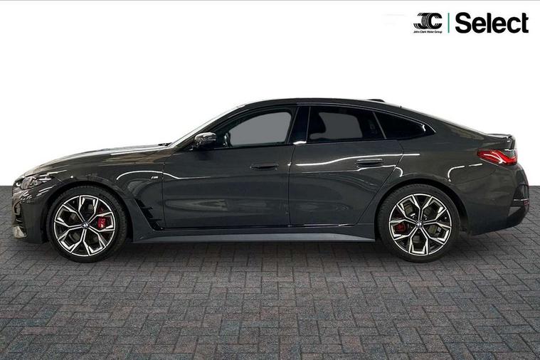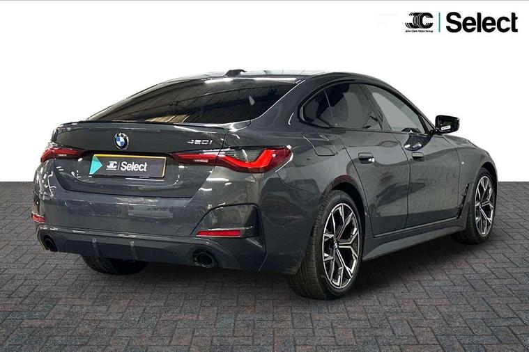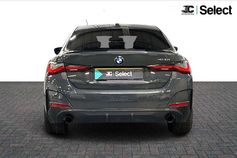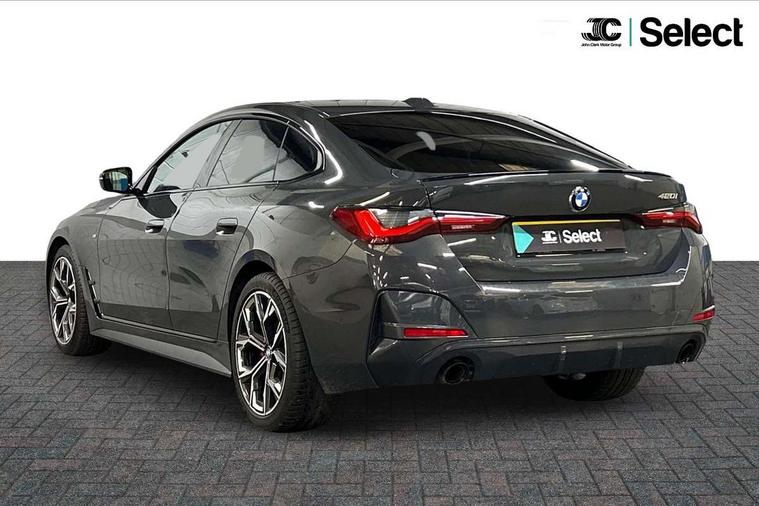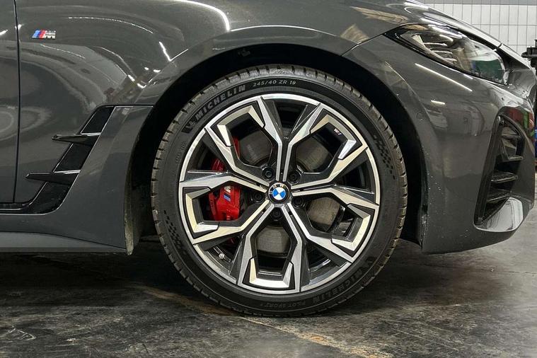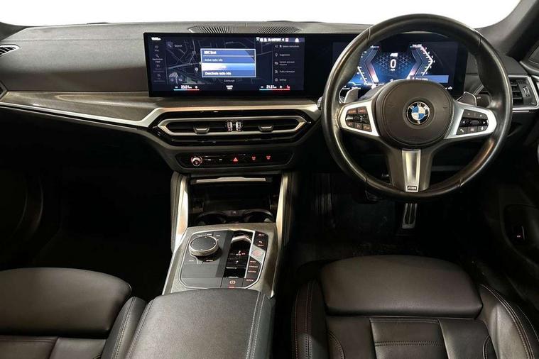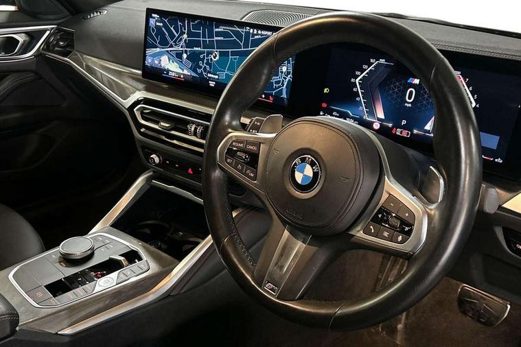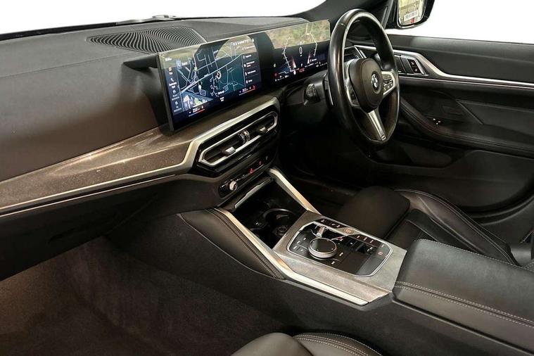 Active guard plus, Attentiveness assist, Auto start-stop, Bluetooth hands free facility with USB audio interface with audio streaming, BMW ConnectedDrive online services, BMW iDrive controller on centre console, BMW service history, BMW Teleservices, Brake pad wear indicator in front and rear, Check Control warning system for monitoring of lights and door/luggage compartment open warning, Condition based service, Electric bootlid, Electric power steering with Servotronic steering optimised at all speed ranges, Gearshift time display in manual mode, Instrument cluster with speedometer with mph readout, tachometer, fuel gauge and oil temperature gauge, Integrated owners handbook, Oil sensor for level and grade, warning by check control system, On board computer - average speed, fuel consumption, outside temp display with acoustic warning, clock/date, service interval, odometer/trip meter, Optimum shift indicator, Shifting point display, Variable sport steering, 8 speed automatic steptronic transmission with gearshift paddles, Active sound design, Double joint spring strut front axle, Double VANOS, Drive performance control - ECO PRO, comfort and sport modes, Electronic differential lock control (EDLC), High precision injection, Low centre of gravity, M sport suspension, Petrol Particulate Filter, Sprint mode, Stroke dependent dampers, VALVETRONIC engine management, 2x USB Type C ports in front centre console for charging and data transfer, 2x USB Type C ports in rear centre console for charging, DAB tuner, Electronic service booklet, 3rd brake light, Acoustic glazing, Automatic headlight beam throw control with load dependent regulating reaction, dynamic compensation of braking dive and acceleration squat, Automatic windscreen wipers and automatic headlight, Automatically dimming electrochromatic rear view mirror, BMW emblem on engine compartment lid and tailgate, BMW Individual high gloss shadow line with extended contents, BMW individual lights shadow line, BMW Individual metallic paint work, Body colour fuel filler flap, Body colour roof fin, Brushed aluminium inserts in the front door sill finishers with BMW designation, Door sill strips, Dynamic brake lights, Electric windows - front and rear, with open/close fingertip control, anti trap facility and comfort closing function all round, Exterior mirrors - electrically folding with anti-dazzle, Fading support, Follow me home headlights, Front and rear bumper system, Front apron plastic in body colour, Green tinted heat protection glazing, High gloss shadow line exterior trim, Illuminated bow type door handles in body colour drivers side with door lock, Interior rear view electrochromatic mirror with automatic anti dazzle function, LED daytime running lights, LED front fog lights, LED front indicators, Licence plate panel integrated into front bumper and tailgate, Lightweight engineering, M designation on front side panels, left and right, M rear boot spoiler with high gloss black gurney, Model designation on right side of tailgate, One piece front bumper cover including towing eye cover in body colour, Preparation for high beam assistant, Rear side wing doors, Rear wiper, Reversing light, Side frame decorative moulding black matt, Sun protection glass, Two part LED tailights in L-shape with components in smoked glass, brake light, LED turn indicator and rear fog light, Visible exhaust tailpipe finisher, Visible VIN plate, Welcome lights in interior and door handle area, Widened track and increased camber values for max transverse dynamics, agility and steering precision, Window recess cover black high gloss, Windscreen wipers with integrated heated washing jets, 12V power socket in front centre console, 2 front cupholder in centre console with clamping elements and matt black inlay, 3 rear headrests, 3 seat bench in 2nd row, 3 spoke M sport leather multifunction steering wheel, 3 zone automatic air conditioning, 4 pieces lashing eyelets in luggage compartment, 40:20:40 split folding rear seat and rear centre armrest with two cupholders, Anthracite headlining, Armrest integrated in front and rear door trim + front centre console armrest, BMW ID, Driver seat backrest width adjustment, Extended storage in Combination with sport seat net pocket on rear backrest, Four grab handles integrated in roof lining, Front and rear door pockets, Front and rear reading lights, Front sport seats, Heated driver and front passenger seats, Height adjustable front headrests, Height adjustable mechanically and infinitely variable steering column, Illuminated armrest storage compartment, Illuminated glove compartment with separate small compartment, Luggage compartment seprating net on side trim left/right, Bag hook, 12V socket, TTH button, USB C charging in rear, Folding compartment on driver side, Make-up mirror lights, Single front passenger seat, Storage compartment in rear centre console, Sunvisors with illuminated vanity mirrors and ticket pocket, Toolkit located in luggage compartment, Velour front floor mats, Ambient lighting pack - 4 Series, Connected professional package - 4 Series, M sport exterior styling pack - 4 Series, 3 point seatbelts on all seats, Battery safety cut-off, BMW emergency call, Brake energy regeneration, Braking pre-tensioning, Child proof locking system in rear door, Child seat ISOFIX attachment for the two outer rear seats, Coasting in idle in ECO PRO mode, Cornering brake control (CBC), Crash sensor activating of airbags, Unlocking doors, hazard warning lights, interior light, safety battery terminal, Driver and front passenger side airbags, integrated in the door side seat backrest bolsters for all seat variants, Driver/Front Passenger airbags, Dry braking, Dynamic brake control, Dynamic stability control + (DSC+) - Anti-lock Braking System (ABS) with brake assist and cornering brake control + Automatic Stability Control (ASC), Dynamic Traction Control - DTC, Electric parking brake including automatic hold function and autom