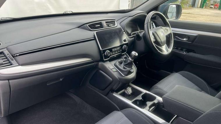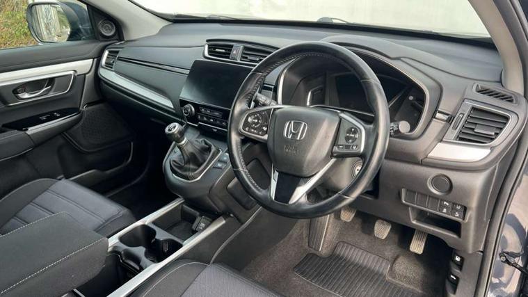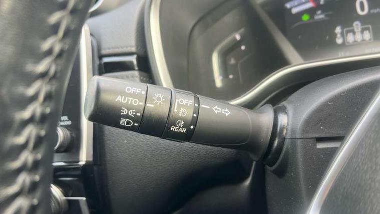 Temporary spare wheel, Honda super locks, Immobiliser, Remote central locking with 2 remote folding keys, Security alarm, Ultrasonic sensor and tilt sensor, 2 USB sockets in rear, 2x USB sockets in front, 8 speakers, DAB Digital radio, Steering wheel mounted controls, Subwoofer, 5 x 3 point seatbelts, ABS/EBD, Anti-whiplash front headrests, Brake assist function, Collision mitigation braking system, Deflation detection system, Driver airbag, Electronic parking brake with auto hold, Front and rear curtain airbags, Front side airbags, Hill start assist, Passenger airbag deactivate switch, Aspheric door mirrors, Auto dimming rear view mirror, Automatic headlights with dusk sensor, Body colour bumpers, Body colour door handles, Door mirrors tilt when reversing, Electric front windows/one touch facility, Electric rear windows + one touch facility, Electrically adjustable and heated door mirrors, Electrically retractable door mirrors, Front fog lights, High beam assist, LED daytime running lights, LED Headlights, LED rear lights, Rain sensor, Rear wiper, Shark fin roof aerial, Trailer stability assist, Welcome home function, 60/40 split folding rear seat, Accessory sockets, Cargo hooks, Cloth upholstery, Courtesy lights, Driver's electric adjustable lumbar support, Driver/passenger front seatback pockets, Driver/passenger sunvisors with illuminated vanity mirrors, Dual zone automatic climate control, Front centre armrest, Front map lights, Gear shift indicator, Height adjustable driver's seat, Illuminated glovebox, Instrument panel with garnish wood film, Isofix child seat preparation, Leather gearknob, Leather steering wheel, Rear air vents, Rear centre armrest, Rear headrests, Rear reading lights, Rear seat conversation mirror, Silver interior door handles, Sunglasses holder with mirror, Tilt/telescopic adjustable steering wheel, Tonneau cover, Trunk light, Adaptive cruise control, Agile handling assist, Bluetooth hands free telephone connection, Economy mode, Electric power steering, Emergency stop signalling system, Forward collision warning, Front and rear parking sensors, Honda CONNECT with GARMIN Navigation + 7" touchscreen, DAB radio, Apple CarPlay, Android Auto, Aha app integration and internet browsing, Idle stop, Intelligent multi info display, Lane departure warning system, Lane keep assist system, Rear view camera, Road departure mitigation, Speed limiter, Traffic sign recognition, Vehicle stability assist,