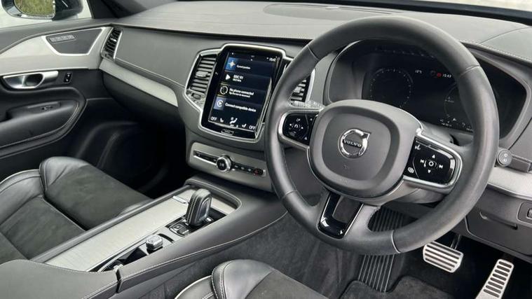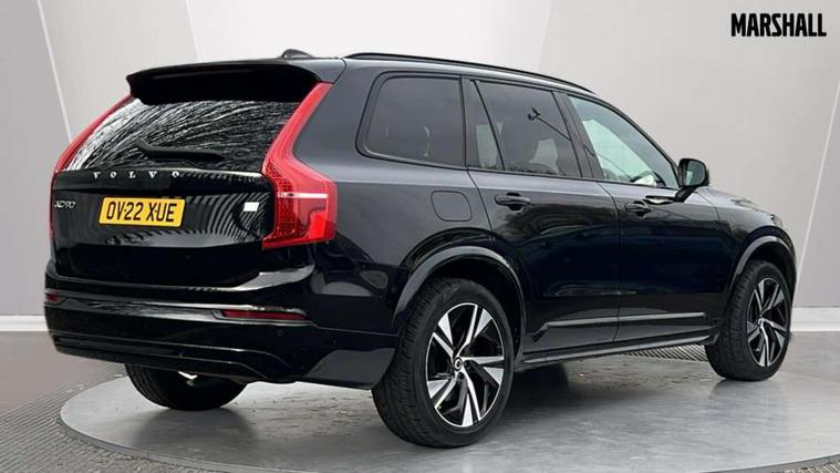 12.3" Active TFT crystal driver's instrument display, 9" centre console portrait touch screen, Adjustable steering wheel force, Bluetooth hands free telephone connection, Drive mode settings, Driver alert control with lane keeping aid, Driver assistance (pilot assist and adaptive cruise control), Driver awareness - Blind spot information system with steer assist, cross traffic alert with autobrake and rear collision warning and mitigation, Emergency call service, Front and rear park assist, Handsfree power tailgate opening and closing, Oncoming Lane Mitigation, Sensus navigation with European mapping and traffic information, Service interval indicator, Speed limiter, Speed sensitive steering, Trip computer, Voice activated control for key functions, Volvo on call, 7m Charge Cable with 3 Pin Plug, 7m Type 2/mode 3 charge cable, 8 speed automatic transmission with start/stop + manual change functions, All wheel drive system, Electric rear axle drive, Lithium-ion battery, Recharging port located in nearside front wing, Touring chassis, DAB Radio (Digital Audio Broadcasting), Steering wheel remote infotainment controls, Adaptive brake lights with high level LED brake lights, Auto dimming interior + exterior mirrors, Automatic headlight levelling system, Automatic LED Headlights + Active high beam incorporating daytime running lights, Body colour bumpers, Dark tinted windows for rear side windows and cargo area, Dual integrated exhaust pipes with high gloss black surround, Electric folding and heated door mirrors, Front and rear power windows, Heated washer nozzles, High gloss black Deco lower front bumper, High gloss black door mirrors, High gloss black lower rear valance, High gloss black mesh front grille with surround, High gloss black window surround, Home safe and approach lighting, Integrated roof rails in high gloss black, Puddle lights, Rain sensor with automatic windscreen wiper activation, Rear side wing doors, Rear wash/wipe with intermittent wipe setting, Roof antenna, Roof spoiler, Visible VIN plate, 12V socket front tunnel console, rear passenger compartment and cargo area, 2 seat bench in 3rd row, 3 seat bench in 2nd row, 4 Zone electronic climate control + cooled glovebox, A-pillar parking ticket holder, Ambient door and instrument panel lighting, B Pillar ventilation, Bright metal luggage threshold, Cargo divider with grocery bag holder, Centre console cupholders and storage, Charcoal headlining, Driver's side lower dashboard storage compartment, Front and rear door pocket and front cupholder illumination, Front footwell and side step illumination, Front headrests, Front seat cushion extensions, Heated front seats, Height/reach adjustable steering column, Illuminated luggage compartment, Illuminated tailgate, Illuminated vanity mirrors + ticket holder, Illumination lockable glovebox compartment, Integrated sun curtains in rear doors, Load protection net, Lower dashboard, tunnel console, Lower door panel in blond, Multicolour theatre lighting, Outboard armrest with cupholder and storage for third row passengers, Power driver seat with multi directional lumbar support and memory for seat and exterior mirrors, Power folding 2nd row headrests, Power passenger seat with multi directional lumbar support and memory, Rear footwell and side step illumination, Rear headrests, Recharge aluminium tread plates, Semi automatic load cover, Single front passenger seat, Sports floor mats, Sports leather gear knob, Sports pedals, Underfloor cargo storage, 7 three point seatbelts, City safety includes pedestrian, cyclist and large animal detection and front collision warning with full auto brake, Drivers knee airbag, Dual stage driver/passenger airbags, First aid kit, Front seats SIPS airbags, Hill descent control, Hill start assist, IC (Inflatable Curtains) - Full Length, Passenger airbag cut-off switch, Power parking brake with auto hold function, Road sign information display, Run off Road Mitigation, Run off Road Protection, Seatbelt reminder and pretensioners for all seats, SIPS (Side Impact Protection System), Slippery road and hazard light alert, Stability and Traction Control with Spin control, Engine Drag Control and Corner Traction Control, Tyre pressure monitoring system, Vehicle deceleration control with Anti-lock Brake System, Electronic Brake Distribution and Emergency Brake Assist, Warning triangle, WHIPS whiplash protection system - front, Anti-theft alarm including immobiliser/volume sensor + level sensor, Care key with user defined top speed, Key integrated remote control central locking + fuel flap with deadlocking system and auto open/close power windows, Keyless drive (includes keyless entry and keyless start) with remote tag, Locking wheel nuts, Private locking for glovebox and tailgate, Metal mesh inlays, Tailored Instrument Panel and Door Tops with Contrast Stitching, Tyre sealant kit + 12v compressor,