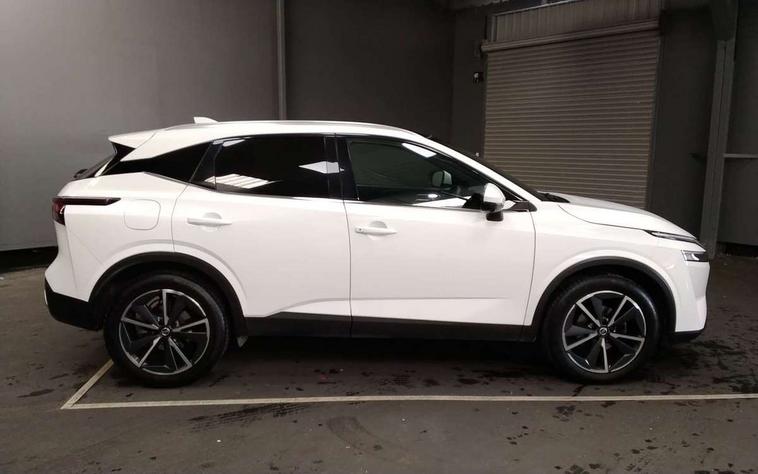 Blind spot warning, Drive modes (sport, normal, eco), Electric speed sensitive power steering, Emergency and breakdown call, Front and rear parking sensors, Full Digital 12.3" TFT Digital Combimeter, Google maps services - search, weather, 3D maps and Google street view, Hands free power tailgate, Idle stop/start system, Intelligent around view monitor, Intelligent Cruise control (ICC), Intelligent driver alert system, Intelligent forward collision warning, Intelligent lane intervention, Lane departure prevention, Lane departure warning system, Moving object detection, Nissan connect 9" touchscreen infotainment system, Nissan connect navigation, Push button starter, Rear cross traffic alert, Remote control services - door locks, lights, horn and car locator, Telematics - notifications and connectivity services, TomTom live traffic services, Traffic sign recognition with legal speed adjustment, Trip computer, Virtual personal assistant and firmware over the air capability, Wireless Apple CarPlay and wired Android Auto, Wireless charging pad, 6 speakers, AM/FM audio system with DAB, Bluetooth audio streaming, Front USB connections (Type-A and Type-C), Rear USB charging only ports (Type-A and Type-C), Auto dimming rear view mirror, Auto rear wiper when reversing, Body colour mirror caps, Body coloured door handles, Bodyside mouldings, Chrome side window finisher, Door handle with button, Dusk sensor, Electric auto folding door mirrors, Electrically adjustable and heated door mirrors with LED turn indicator, Fixed panoramic glass roof with electric sunshade, Follow me home headlights, Front and rear LED turning signals, Intelligent auto headlights, LED daytime running lights, LED rear lights, One touch front and rear electric windows with remote opening and closing, Partially body coloured bumpers, Privacy glass, Rear roof spoiler, Rear side wing doors, Rear styling plate, Roof rails, Shark fin antenna, Splash free rain sensing wipers, Super UV and infrared cut glass, Three blink turn signal, 12v power socket in dashboard and luggage, 2 way electrical driver lumbar adjustment, 2x Rear coat hooks, 3 bench rear seats in 2nd row, 3 rear headrests, 4 folding assist grip, 6 Luggage hooks - 4 on floor, 2 on side, 60/40 split folding rear seat bench, 8 way electric adjustable drivers seat, Ambient lighting around centre console, Ambient lighting in front doors, Centre console storage tray, Chrome interior door handles, Cloth/syntech leather monoform upholstery, Dark headlining, Driver and front passenger sunvisors with illuminated vanity mirrors, Driver seat back pocket, Dual zone automatic climate control with pollen filter, Front and rear door storage, Front cupholders x 2, Front door with bottle holders, Glovebox with light, Hard trunk cover, Height adjustable front headrests, Leather steering wheel, Luggage board system, Luggage space lighting, Manual lumbar support on passenger seat, Manually adjustable passenger (slide recline + lifter), Multifunction steering wheel, Passenger seat back pocket, PVC front centre console and armrest, Rear armrest with 2 cupholders, Rear door bottle holders, Single front passenger seat, Soft PVC kneepad, Steering wheel gearshift paddles, Steering wheel switches, Tilt/telescopic adjustable steering wheel, Two rear isofix child seat anchorage points with top tether, Welcome light and doors with console tray ambient lighting, Heat pack - Qashqai, Tech Pack (ProPILOT + HUD), 3x3 point rear seatbelt pretensioners + load limiters, ABS, ESP, EBD and brake assist, Active brake limited slip, Auto hold function, Child locks on rear doors, Curtain and front side, far side airbags, Driver and passenger airbags, Driver, passenger and 2nd row rear seat belt reminder, Electronic parking brake, Front seatbelt pretensioners + load limiters, Height adjustable front seatbelts, Hill start assist, Intelligent blind spot intervention, Intelligent front emergency braking with pedestrian, cyclist recognition and junction assist, Intelligent rear automatic braking, Tyre pressure monitoring system, Vehicle dynamic control, Capless fuel filler, Engine immobiliser, Nissan i-key, Rear bumper with silver insert, Remote central door locking with deadlocking, Thatcham Cat.1 alarm, 19" Alloy wheels,