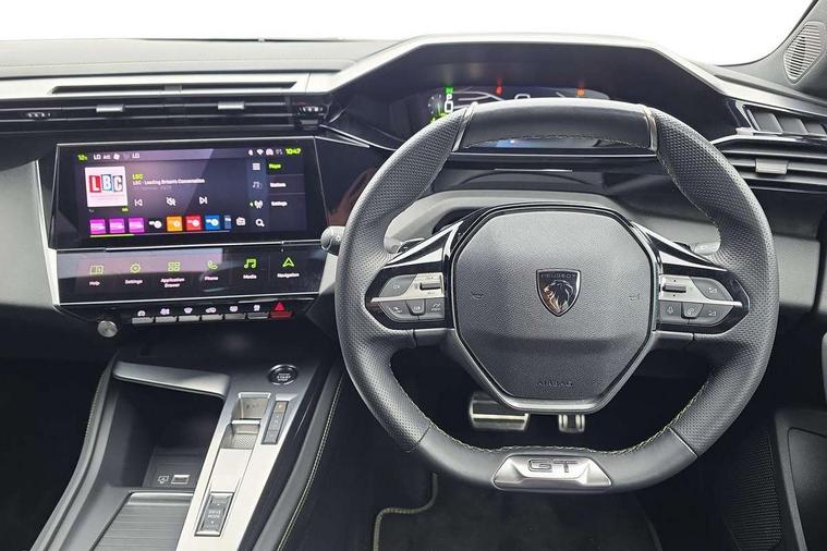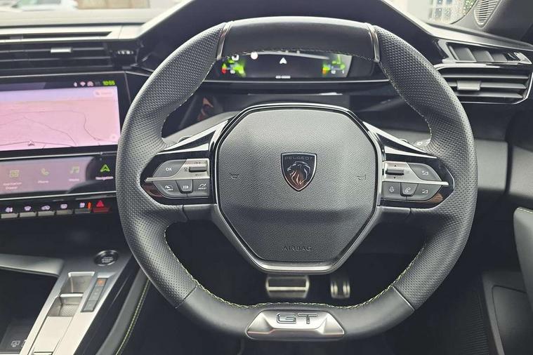 10" capacitive colour touchscreen with connected 3D navigation includes Peugeot Connect SOS and assistance, Bluetooth telephone facility, Compact automatic gearbox impulse selector, Driver attention warning, eCall emergency call system, Exterior temperature indicator with ice warning, Lane keep assist, Mirror screen with mirror link, apple carplay and android auto, Multi driving mode selector - Eco / Normal / Sport mode selector, Multi function trip computer, New PEUGEOT i-Connect, PEUGEOT i-Cockpit with 10" digital instrument panel display, PEUGEOT i-Cockpit with compact steering wheel, Service interval indicator, Speed limit recognition and recommendation, Sport pedals with foot rest, Wireless apple car play/android Auto, DAB Digital radio, Peugeot customisable iToggles, Steering column mounted multifunction controls, Voice recognition for radio, navigation and telephony features, Acoustic and tinted windscreen, Automatic hazard light activation upon heavy brake application, Automatic triggered rear windscreen wiper in reverse gear, Body colour door handles, Dark chrome chequered radiator grille, Dark tinted rear side and tailgate windows, Electric operated/heated door mirrors, Extended lower body sills to the front and side, Frameless electrochrome rear view mirror, Front and rear electric windows with one touch/anti pinch, Full LED matrix headlights with automatic adjustment, Gloss black finish B pillar, Gloss black rear cluster connecting strip, GT model designation badging on tailgate, High beam assist, LED rear number plate lights, LED side indicator lights integrated into door mirrors, Lion emblem badging on front wings, Model designation badges on front and rear, Nera black door mirrors, Peugeot aluminium door sills, Peugeot signature LED daytime running lights, Power folding door mirrors, Rain sensor, Rear full LED 3D Peugeot new claw effect lights with sequential welcome sequence upon unlocking the vehicle, Rear lower bumper gloss black diffuser effect trim, Rear reversing lights, Rear side wing doors, Tailgate with heated rear windscreen and wiper blade, Twin exhaust pipes with chrome surround, 1/3 to 2/3 split folding rear seats, 12V socket, 2 front USB socket including 1 USB type c, 3 seat bench in 2nd row, 8 Colour personalisable ambient lighting, Automatic air conditioning with AQS 3, Carpet mats, Central front armrest with storage compartment, Dynamic front seats, Electric power steering with reach and rake adjustable steering column, Front central console with two cup holders, LED Glovebox light, Manual driving mode - change gear manually via steering mounted paddles, Multifunction full grain leather steering wheel with admite green stitching & GT badging, Piano keys gloss black plated toggle switches to access main functions of the vehicle, Roof lining - Mistral black, Seatbelt unfastened on the move audible and visual alert for front and rear seats, Single front passenger seat, Ski hatch with central rear armrest with cup holder, Sunvisor with concealable mirrors and LED lighting, Drive assist pack with rear cross traffic alert- 308, Driver sport pack with sports power steering - 308, Visibility pack with automatic magic wash windscreen wipers - 308, 2x Isofix child seat fitting on outer rear seats, 3x Rear three-point retractable seatbelts with force limiters in the outer rear seats, ABS + EBD + EBA, Active safety brake with night function/cyclists/pedestrians, Adaptive driver and front passenger airbags with passenger airbag deactivation function, Automatic post collision braking, Child locks on rear doors, Driver/front passenger side airbags, Electronic parking brake, ESP, Front and rear curtain airbags, Front optimised safety headrests and rear retractable headrests (x3), height adjustable, Front three point retractable seatbelts with force limiters, Front/rear disc brakes, Hill start assist, Tyre pressure sensor, Automatic door locking when moving off, Deadlocking system, Electronic code immobiliser, Locking wheel nuts, Peugeot open and go system includes keyless entry with push start button, Thatcham cat. 1 alarm with anti lift sensor,