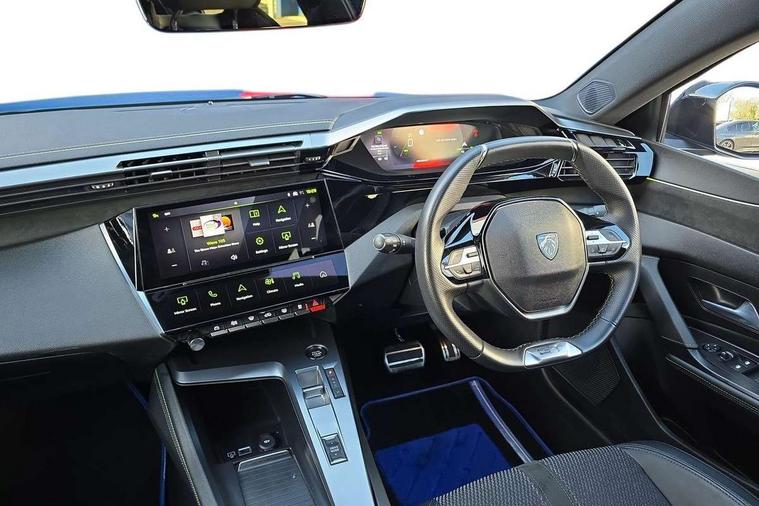 Bluetooth telephone facility, Compact drive selector, Driver attention warning, Emergency call service, Exterior temperature indicator with ice warning, Front and rear parking sensors, Intelligent speed adaptation, Lane keep assist, Mirror screen with wireless apple carplay and android auto, Multi driving mode selector - Eco / Normal / Sport mode selector, Multi function trip computer, Peugeot connect advanced with connected 3D navigation, PEUGEOT i-Cockpit - compact steering wheel, 10" HD colour touchscreen with configurable 3D headup instrument panel, PEUGEOT SOS and assistance, Service interval indicator, Speed limit recognition and recommendation, Sport pedals with foot rest, DAB Digital radio, Peugeot customisable iToggles, Voice recognition for radio, navigation and telephony features, 2 X LED rear number plate lights, Acoustic and tinted windscreen, Automatic hazard light activation upon heavy brake application, Automatic triggered rear windscreen wiper in reverse gear, Body colour door handles, Body colour rear roof spoiler, Dark chrome chequered radiator grille, Dark tinted rear side and tailgate windows, Electric operated/heated door mirrors, Extended lower body sills to the front and side, Frameless electrochrome rear view mirror, Front and rear electric windows with one touch/anti pinch, Full LED matrix headlights with automatic adjustment, Gloss black finish B pillar, Gloss black rear cluster connecting strip, GT model designation badging on tailgate, High beam assist, LED 3rd brake light, LED side indicator lights integrated into door mirrors, Lion emblem badging on front wings, Model designation badges on front and rear, Nera black door mirrors, Peugeot aluminium door sills, Peugeot signature LED daytime running lights, Power folding door mirrors, Rear full LED 3D Peugeot new claw effect lights with sequential welcome sequence upon unlocking the vehicle, Rear lower bumper gloss black diffuser effect trim, Rear reversing lights, Rear side wing doors, Tailgate with heated rear windscreen and wiper blade, Twin exhaust pipes with chrome surround, 1/3 to 2/3 split folding rear seats, 12V socket, 2 front USB socket including 1 USB type c, 3 seat bench in 2nd row, 8 Colour personalisable ambient lighting, Automatic air conditioning with AQS 3, Carpet mats, Central front armrest with storage compartment, Dynamic front seats, Electric power steering with reach and rake adjustable steering column, Front central console with two cup holders, LED Glovebox light, Manual driving mode - change gear manually via steering mounted paddles, Multifunction full grain leather steering wheel with admite green stitching & GT badging, Piano keys gloss black plated toggle switches to access main functions of the vehicle, Roof lining - Mistral black, Seatbelt unfastened on the move audible and visual alert for front and rear seats, Single front passenger seat, Ski hatch with central rear armrest with cup holder, Sunvisor with concealable mirrors and LED lighting, Twin USB charging ports in the rear (Type C), Driver sport pack with sports power steering - 308, Visibility pack with automatic magic wash windscreen wipers - 308, 2x Isofix child seat fitting on outer rear seats, 3x Rear three-point retractable seatbelts with force limiters in the outer rear seats, ABS + EBD + EBA, Active safety brake with night function/cyclists/pedestrians, Adaptive driver and front passenger airbags with passenger airbag deactivation function, Automatic post collision braking, Child locks on rear doors, Driver/front passenger side airbags, Electronic parking brake, ESP, Front and rear curtain airbags, Front optimised safety headrests and rear retractable headrests (x3), height adjustable, Front three point retractable seatbelts with force limiters, Front/rear disc brakes, Hill start assist, Tyre pressure sensor, Automatic door locking when moving off, Deadlocking system, Electronic code immobiliser, Locking wheel nuts, PEUGEOT Open and Go keyless entry system, Thatcham cat. 1 alarm with anti lift sensor,