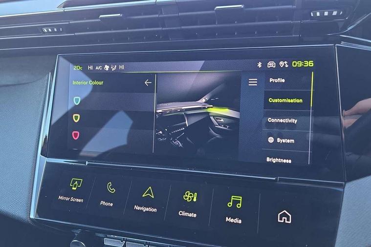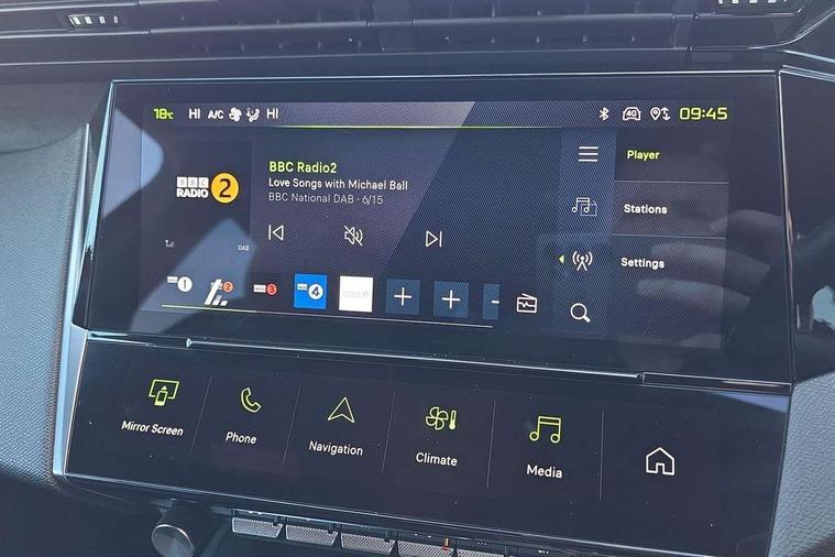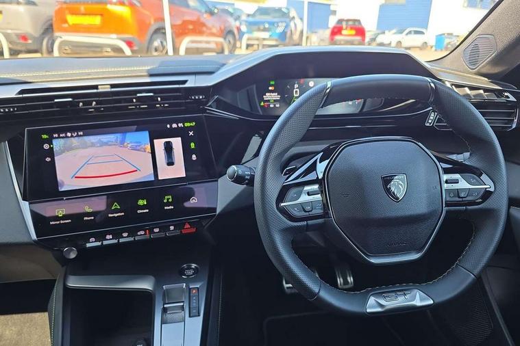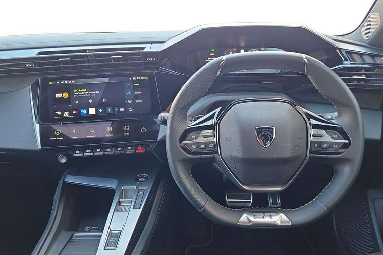 Bluetooth telephone facility, Compact automatic gearbox impulse selector, Driver attention warning, Driver's profile setting, Emergency call service, Extended traffic sign recognition, Exterior temperature indicator with ice warning, Front and rear parking sensors, Intelligent speed adaptation, Lane keep assist, Multi driving mode selector - Eco / Normal / Sport mode selector, Multi function trip computer, PEUGEOT i-Cockpit with 10.0" high definition (HD) capacitive touchscreen, PEUGEOT i-Cockpit with compact steering wheel, PEUGEOT i-Connect Advanced - Over the air updates, PEUGEOT SOS and assistance, Push button start, Speed limit recognition and recommendation, Wifi and voice recognition, Wireless apple car play/android Auto, 2x USB sockets in front, 2x USB sockets in rear, DAB Digital radio, PEUGEOT i-Cockpit with PEUGEOT configurable i-Toggles, 3rd brake light, 408 Model designation badges on front and rear, Acoustic laminated front windows, Acoustic tinted windscreen, Automatic hazard light activation upon heavy brake application, Body colour door handles, Body colour rear spoiler, Dark tinted rear side and tailgate windows, Electric, heated, and power folding door mirrors, Electrochrome rear view mirror, Front and rear electric windows with one touch/anti pinch, Front grille with vertical body colour stamping, Full LED matrix headlights with automatic adjustment, Gloss black finish B pillar, Gloss black rear cluster connecting strip, High beam assist, LED rear number plate lights, LED side indicator lights integrated into door mirrors, Lower body and wheel arch "SUV style" protection, Nera black door mirrors, PEUGEOT shield on front doors, PEUGEOT signature LED front daytime running lights incorporating indicators, Rear bumper grained black, Rear full LED 3D Peugeot new claw effect lights with sequential welcome sequence upon unlocking the vehicle, Rear Hybrid badging, Rear reversing lights, Rear side wing doors, Roof mounted 'fin' style antenna, Smart electric tailgate, Tailgate with heated rear windscreen and wiper blade, 1/3 2/3 'Magic Flat' folding rear seats with controls located in the boot, 2x 12V sockets, 3 seat bench in 2nd row, 4 Grab handles retractable and damped, 8 Colour personalisable ambient lighting, Aluminium door sills and boot sill, Aluminium pedals and footrest, Arch design central console with storage, Central front armrest with storage compartment, Dual Zone automatic air conditioning with AQS 3, Dynamic front seats, Electric power steering with reach and rake adjustable steering column, Front central console with two cup holders, Gloss black waistbelt (window weather strips), Glovebox with LED lighting, Heated steering wheel, High air vent system, Luggage cover, Luxury carpet mats with adamite green stitching, Multifunction full grain leather steering wheel with admite green stitching & GT badging, Piano keys toggle switches to access main functions, Roof lining - Mistral black, Seatbelt unfastened on the move audible and visual alert for front and rear seats, Single front passenger seat, Ski hatch with central rear armrest with cup holder, Steering wheel mounted gearshift paddles, Sunvisor with concealable vanity mirrors with LED lighting, Driver Sport Pack - 408, Visibility pack - 408, 2x Isofix child seat fitting on outer rear seats, 3x3 point rear seat belts, ABS + EBD + EBA, Active safety brake with night function/cyclists/pedestrians, Adaptive driver and front passenger airbags with passenger airbag deactivation function, Advanced emergency braking system (Video - AEB) includes Radar, Automatic post collision braking, Child locks on rear doors, Driver/front passenger side airbags, Electronic parking brake, ESP, Front and outer rear seatbelts with pyrotechnic pretensioners, Front and rear curtain airbags, Front and rear disc brakes, Front optimised safety headrests and rear retractable headrests (x3), height adjustable, Front three point retractable seatbelts with force limiters, Hill start assist, Tyre under inflation monitoring and indirect detection with visual indicator and warning sound, 2x keys, Acoustic vehicle alert system (AVAS), Anti-theft wheel bolts, Automatic door locking when moving off, Deadlocking system, Electronic code immobiliser, Locking wheel nuts, Peugeot open and go system includes keyless entry with proximity locking and unlocking, Thatcham cat. 1 alarm with anti lift sensor, 19" Graphite diamond cut alloy wheels in Onyx black gloss, Alloy wheel 'star' centre cap,