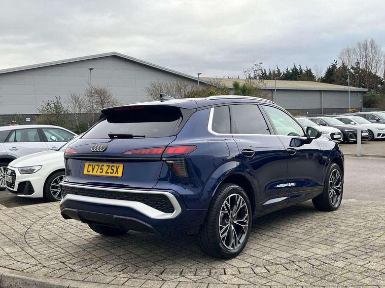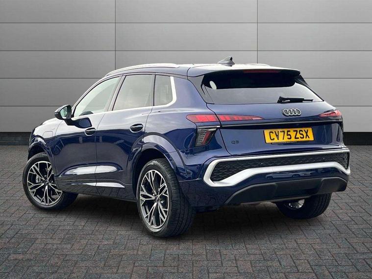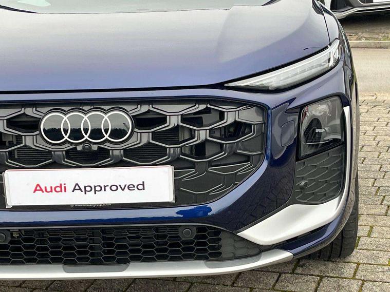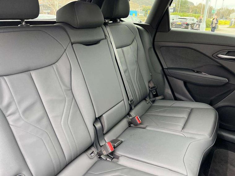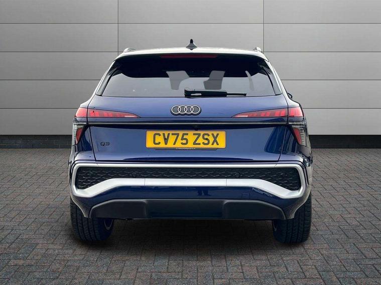 Adaptive cruise control, Audi connect emergency call and service, Audi connect remote and controls, Audi drive select (Balanced/Individual, effeciency, comfort and dynamic), Audi virtual cockpit plus - 11.9" display, Bluetooth interface, Camera based traffic sign recognition, Driver attention and fatigue monitor with driver monitoring, Front cross traffic assist, Lane departure warning with emergency assist, Panoramic curved display with 12.8" MMI navigation plus and MMI touch, Park assist plus with parking system and 360 display, Phonebox light with wireless charging, Reversing camera, Smartphone interface includes wireless Apple carplay/Android Auto, Start/stop system, Swerve assist and turn assist, Traffic sign based speed limiter, Voice control system with natural language interaction, 3 pin 10 amp domestic charging cable, Charging socket CCS type 2, Comfort suspension, Compact charging system, Industrial connector CEE 32A, 230V, Mode 3 charging cable for public charging, 22 KW (AC), Petrol Particulate Filter, 2 USB-C ports with charge and data functions, Audi sound system with 10 loudspeakers, subwoofer, 8 channel amplifier with 260 watts, DAB digital radio module, Acoustic glass for front door windows, Acoustic windscreen, Aluminium roof rails, Aluminium window trim, Audi Q3 lettering on the B-pillars, Auto dimming door mirrors, Auto dimming rear view mirror, Body colour door mirrors, Contrasting finish in volcano grey, Electrically folding, adjustable and heated door mirrors with integrated LED side indicators and kerb view function for passenger side, Full paint finish, Illuminated door sills with aluminium inserts at the front with S logo, LED daytime running lights, LED headlights plus with LED rear lights pro with continous light strip, illuminated Audi rings, rear, LED third brake light, Loading sill protector in stainless steel, Main beam assist, Privacy glass - dark tinted rear window, rear door and side windows, Projection light in the exterior mirrors - Projects a graphic element onto the ground, Q3 badging on the rear, Rain and light sensors, Rear side wing doors, Rear window, rear door windows and rear side windows in clear glass, Rear wiper, Sports bumpers, 3 seat bench in 2nd row, 3 spoke flat top and bottomed leather multi function sport steering wheel with gear shift paddles and "S" badging, 3-zone deluxe automatic air conditioning, 4 way lumbar support for the front seats - electric with horizontal and vertical adjustment in four directions, Black cloth headlining, Convenience auxiliary air conditioning, Front and rear floor mats, Front and rear headrests, Front centre armrest, Heated front seats, Height and reach adjustable steering wheel, Interior storage compartment, Leather/artificial leather upholstery combination with S emblem + front sports seats, Luggage compartment lid, electrically opening and closing, Manual front seats with height adjustment, Rear seat bench plus with split folded 40:20:40, Single front passenger seat, Stainless steel pedals, Steering wheel operating unit, gloss black, Storage compartment in front centre console, Ambient lighting package pro - Q3, S line exterior styling pack - Q3, 3x3 point rear seatbelts, Acoustic vehicle alerting system, Convenience key with safelock, Driver and front passenger airbag with passenger airbag deactivation, Electromechanical parking brake, Electronic stabilisation control including ABS, ASR and EDL, First aid kit with warning triangle and high visibility vests, Front emergency brake assist, Hill hold assist, i - Size child seat mounting on the front passenger side and i - Size and top tether on the outer rear seats, Power operated child locks, Seatbelt monitoring, Three point automatic belts with belt tensioner and height adjustment, Tyre pressure loss indicator, Anti theft wheel bolts, Remote central locking, Thatcham approved category 1 anti theft alarm, Dark aluminium divergence inlay, Interior elements in dinamica microfibre, Interior trims in aluminium look, Tool kit and Jack, Tyre repair kit,