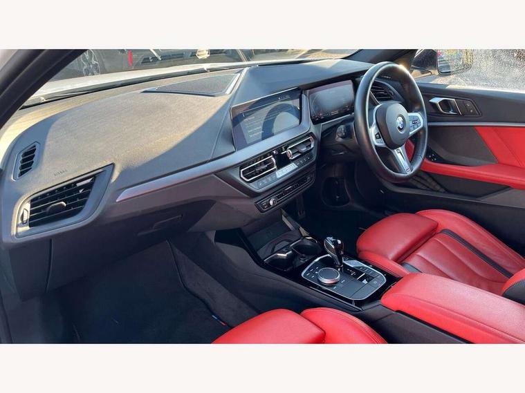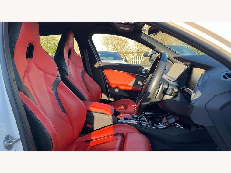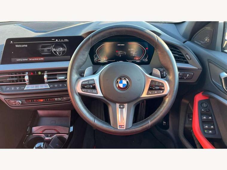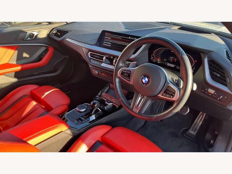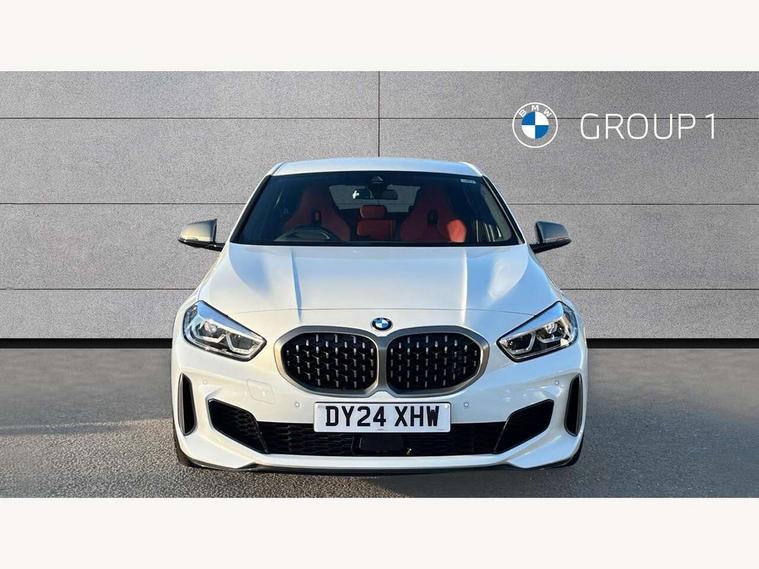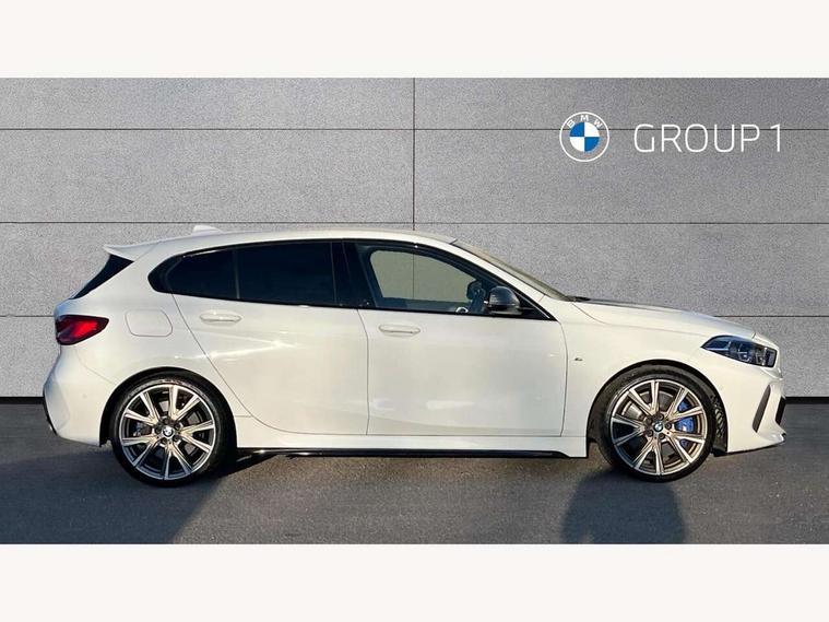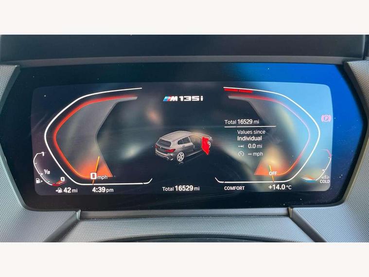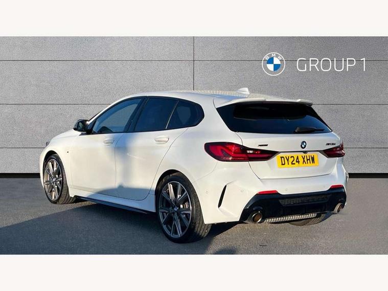 Active guard plus, Attentiveness assist, BMW ConnectedDrive online services, BMW Teleservices, Check Control warning system for monitoring of lights and door/luggage compartment open warning, Cruise control with speed limiter, Eco pro mode, Electric power steering, Electro hydraulically controlled multi-plate clutch transfers drive to rear axle and with power take-off device located on the front differential., Energy efficient operating strategy, Front axle single joint with specific axle kinematics to minimise drive influences on steering + provide increased rigidity agile driving behaviour, Gearshift time display in manual mode, Integrated owners handbook, Lane departure warning system, M Sports steering with M135i xDrive specific settings, Oil sensor for level and grade, On board computer, Optimum shift indicator, Personal Profile, Pull away assistant, Rigidly mounted rear subframe - Multi link construction with separate spring / damper configuration and excellent driving characteristics, Speed limit Info including no-overtaking indicator, Sporty fast gear shifting in sport mode, Aluminium lightweight construction, Anti roll bar front and rear, Balancer shaft, Double VANOS, Drive Performance Control, Eight speed sport automatic transmission with gearshift paddle switches, Electronic differential lock, Electronic selector lever, Engine cover with M performance designation, High precision injection, Larger fuel tank capacity (50 litres), Launch control, M135i specific heavily de-throttled engine intake air guide, M135i specific high-performance cooling package, M135i specific larger turbocharger with integrated divert-air valve, Petrol Particulate Filter, Twin tube gas filled shock absorbers with degressive characteristic curve, VALVETRONIC engine management, Variable, stepless and infinitely adjustable distribution of drive torque between the front and rear axles, xDrive intelligent all wheel drive with M135i specific reinforced components, DAB Digital radio, Auto dimming rear view mirror, Automatic headlight beam throw control, Automatic windscreen wipers and automatic headlight, Body colour door handles, Body colour roof trims, Cerium grey exterior mirror caps, Direction indicator side lights in exterior mirrors, Electrically adjustable exterior mirror with mirror adjustment switch on drivers armrest and aspheric on driver side, convex on passenger side, Exhaust tailpipe, Cerium Grey with bevelled finish - twin, round 100mm, left and right split, Fading support, Folding side mirrors with auto dimming/folding wing mirrors with auto dimming, Follow me home headlights, Front and rear bumper system with replaceable deformation elements, Front and rear electric windows with open and close fingertip control, anti trap facility and comfort closing, Front door sill finishers with M135i designation, Green tinted heat protection glazing, High gloss shadowline window frame, Recess cover mirror frames and B/C pillar embelisher trim, High level third brake light, Integrated front windscreen with washer jets, Kidney grille frame in Cerium Grey with Mesh design, LED daytime running lights, LED eyebrow turn indicators, Lightweight engineering, M logo designation side in cerium grey, M Performance exhaust system with valve control and minimised exhaust back pressure, M Performance specific setup, M Sport spoiler, Matt black air guide grilles, Matt black wheel arch trim, Model designation on electric bootlid includes xDrive designation for M135i xDrive, Nearside reverse light in rear light cluster, Preparation for high beam assistant, Rear fog lights, Rear side wing doors, Rear window wiper, Reinforced crank drive, new pistons and adapted con rods, Shark fin antenna, Trailer stabilisation logic, Visible VIN plate, Welcome lighting, 12V power socket in front centre console with blanking plug, 3 rear seat head restraints, 3 seat bench in 2nd row, 3 spoke sports leather steering wheel with black leather and stitching, pearl chrome decorative finish, specific M Badge, Anthracite headlining, Black boot net with lashing eyes, Cargo function on 2nd seat row, Child seat ISOFIX attachment for two outer rear seats and front passenger seat with anchorage points, Conditioned based service, Driver and front passenger backrest net on rear, Driver and front passenger seat heating, Driver side folding compartment in instrument panel, Folding rear clothes hook, Four grab handles integrated in roof lining, Front and rear door pockets with bottle holders, Front and rear side armrest integrated into door trim, Front armrest, Front M sports seats, Glove compartment, Height adjustable front head restraints, Luggage compartment for bag hooks on left and right, foldable luggage compartment liner and four lashing eyelets, Manual adjust steering wheel, Multi-function controls for steering wheel, Single front passenger seat, Storage compartment in centre console, Storage compartment in luggage compartment, Stowage of the parcel shelf in luggage compartment trim, Sun visors with vanity mirrors and insert tab, Two front centre console cupholders, Two zone automatic air conditioning, Type C two USB ports in rear centre console, Velour floor mats, Additional interior lighting pack - 1 Series M135i, BMW live cockpit professional pack- 1 Series, Connected pack professional - 1 Series, Interior lights pack - 1 Series, M Sport exterior styling aerodynamics pack - 1 Series 135i, 2 tone horn, 3 point seatbelts on all seats, front pyrotechnic belt tensioners, stopper and belt force limiters, rear coded belt buckles, Airbags - Front driver/passenger, front and rear curtain head protection, front side, manual deactivation of front passenger airbag, Anti lock braking system (ABS) with brake assist, BMW emergency call, Brake drying, Braking readiness, Child proof locking system in rear door, City braking function, Comfort modes, Cornering brake control, Crash sensor activating of airbags, Unlocking doors, hazard warning lights, fuel cut off, 