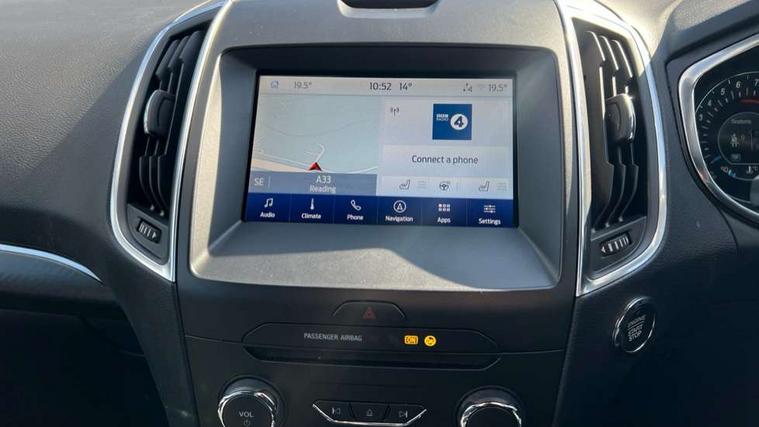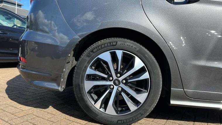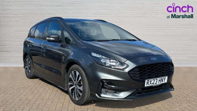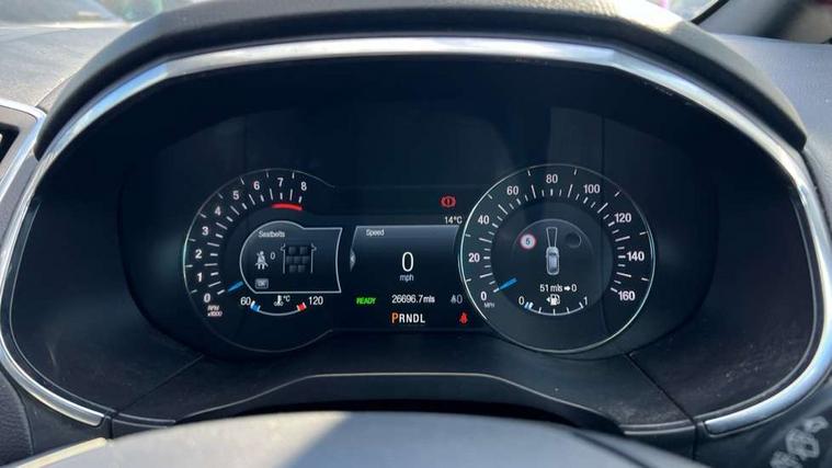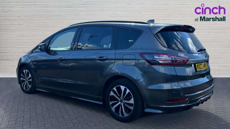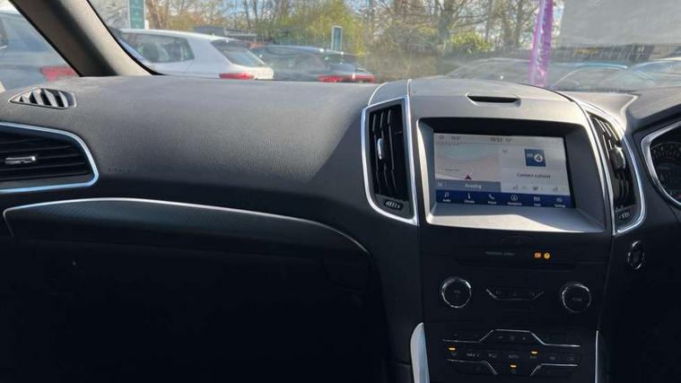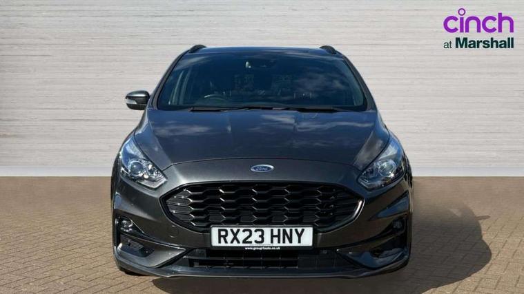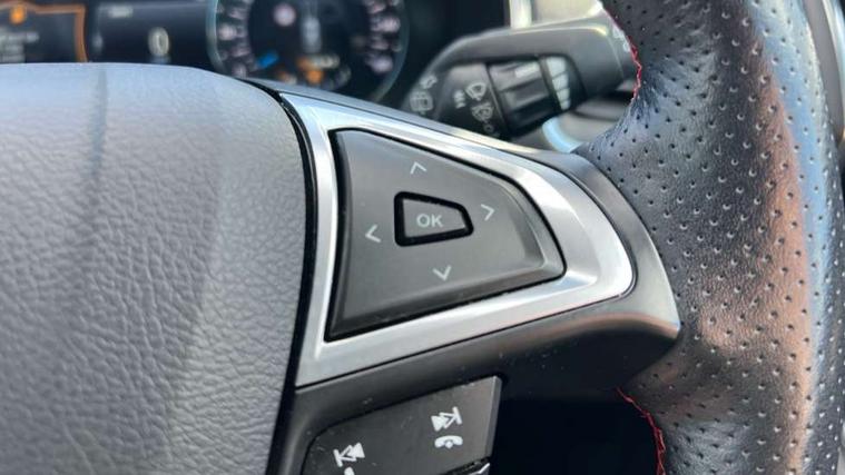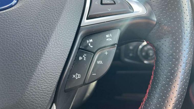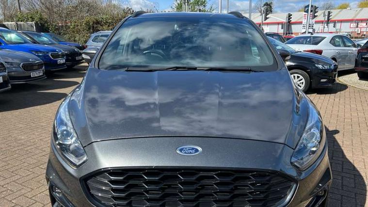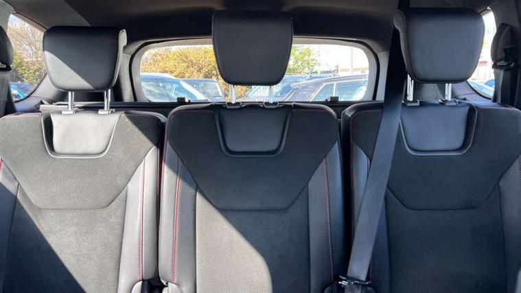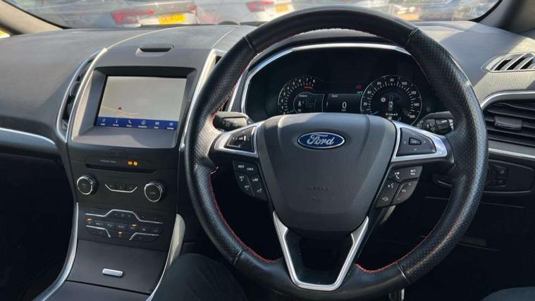 'Ford Power' starter button, 10.1" semi digital cluster, Easy fuel capless refuelling system, eCall emergency call system, Lane keeping aid including driver impairment monitor and active steering with lane departure warning, PAS, Rotary gear shift dial, Traffic sign recognition, Unique instrument cluster, Sports suspension, Steering wheel mounted controls, 3rd brake light, Auto dimming rear view mirror, Automatic headlights, Automatic wipers with variable sensitivity adjustment, Black trim to side windows, Body colour door handles, Body coloured bumpers, Full body coloured trim, Halogen front fog lights, Halogen projector headlights, LED daytime running lights, LED rear lights, Power fold mirrors - heated, indicators with puddle lamps, Power operated front and rear windows, Quickclear heated front windscreen, Rear privacy glass - dark glass to rear windows, Rear side wing doors, Rear spoiler, ST-Line illuminated scuff plates, Tailgate wash/wipe, Tinted glass, Unique front, rear and side sports bodystyling with dark exterior detailing, Unique ST-Line badging, 10 way power adjustable drivers seat with memory function, 10 way power passenger seats, 2 x 3rd row individual seats with fold flat, 230V power outlet in centre console, 3 x 2nd row individual seats wih fold flat, slide and recline, Aluminium sports pedals, Ambient lighting, Dark headliner, Dual zone electronic automatic temperature control, Floor mats in all three rows, Front and rear head restraints, Front seat back table trays, Heated steering wheel, ISOFIX attachments for child seats in 2nd row, Overhead console with sunglasses stowage, Perforated leather trimmed steering wheel with red stitching, Pollen and odor air filter, Reach and rake adjustable steering column, Salerno part leather upholstery with perforated miko suede inserts + red stitching, Single front passenger seat, Sports seats, Variable heated front seats, 3 point seatbelts on all seats, ABS/EBD, Driver/Front Passenger airbags, Drivers knee airbag, Electric handbrake, ESP+EBA, Front and rear (row 2) curtain airbags, Front side airbags, Manual child lock in rear doors, Passenger airbag deactivate switch, Pre collision assist system, Traction control, Tyre pressure monitoring system, Immobiliser, Keyless entry system, Locking wheel nuts, MyKey system, Remote control central locking, Thatcham alarm, Tyre inflation kit,