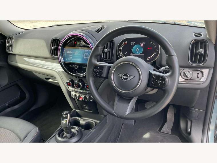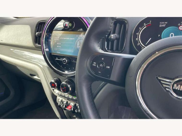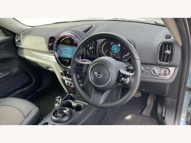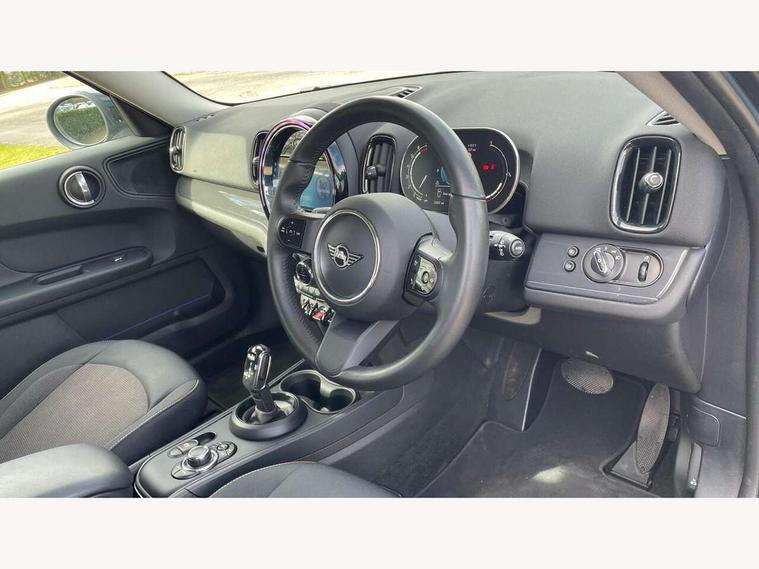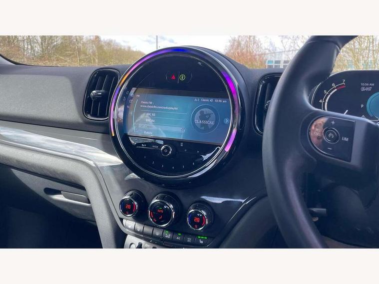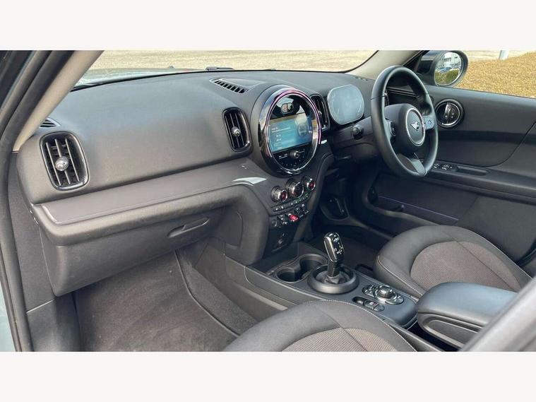 Active Guard incl speed limiting and lane departure functions with auto steering, and front collision warning with brake intervention, Automatic start/stop function with brake energy recuperation, Compatible mobile phone bluetooth with audio streaming, Cruise control with brake assist, Electro-mechanical speed dependant steering assistance, Instrument cluster, Mini E-call, On board computer, Rear parking distance control, 51 Litre fuel tank, Double Vanos system, Fully variable valve control, High precision injection, Performance Control, Steptronic transmission with double clutch, FM tuner and DAB digital radio, 3rd brake light, Body colour fuel filler cap, Day time driving lights, Door sill strips, Dynamic brake lights, Electric windows, Heated rear window, Heated windscreen washer jets, LED fog lights, LED Headlights, Left exhaust tailpipe with chrome finisher, Model logo, Model logo on Tailgate, Radiator grille, Rain sensor with auto headlights, Rear fog lights, Rear side wing doors, Rear window wiper, Side scuttle panel with integrated indicator, Split rear doors, Sun/heat protection glass, White indicator lenses, 12V socket in centre console, 3 seat bench in 2nd row, 3 spoke sport leather steering wheel + limiter function and audio controls, 360L luggage compartment capacity, 4 lashing eyes in luggage compartment, 40:20:40 split folding rear seats, Chrome interior highlights, Colour line - Carbon black, Cupholders, English handbook, Floor mats, Front headrests, Glove compartment, Headliner with grab handles and clothes hooks, Height and length steering column adjustment, Interior lighting with 12 basic colours selectable via toggle switch in roof, Isofix rear child seat preparation, Leather gearshift lever and handbrake gaiters, LED reading lights, vanity mirror lights, front foot well light and spotlight on front seats, Manual air conditioning, Mechanical seat adjustment, driver seat height adjust, forward/back and front seats backrest, Multifunction steering wheel, Passenger seat height adjuster, Rear headrests, Single front passenger seat, Storage compartments in doors, Sunvisors with vanity mirrors, Excitement pack - Countryman, Navigation pack - Countryman, 2 tone horn, 3 point seatbelts on all seats, 6 Airbags - front, side, head and seat belt tensioners, Anti-lock braking system (ABS), DSC - Dynamic Stability Control, Electronic handbrake, Front and rear disc brakes, Hill start assist, Manual rear child locks, Tyre pressure monitoring system, Alarm system with tilt sensor, monitoring doors, bonnet interior and tailgate, Auto drive away locking, Deadlocking function, Electronic vehicle immobiliser, Locking wheel bolts, Start/stop toggle with keyless go, Tool kit,