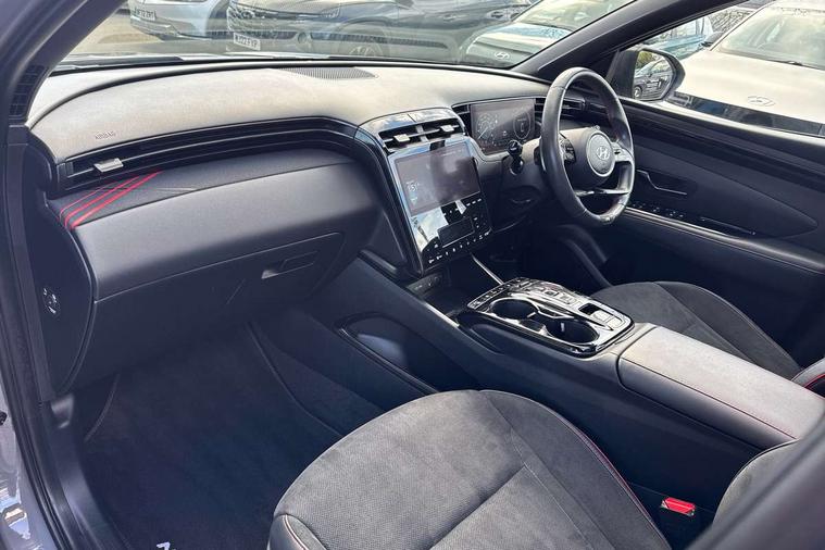 10.25" super vision instrument cluster, 10.25" touchscreen satellite navigation with mapcare and live services, Apple car play/Android Auto, Blind spot collision avoidance assist, Blind spot Collision Warning (BCW), Bluetooth system, Cruise control - smart adaptive speed control with stop and go function, Digital clock, Drive mode selector, Driver attention warning, E-call, Emergency stop signalling system, Forward Collision Avoidance Assist (FCA) - Car, Pedestrian and Cycle, Forward Collision Avoidance Assist Junction Turning (FCAJX), Front and rear parking sensors, Intelligent speed limit assist, Lane follow assist, Lane keep assist, PAS, Rear cross traffic collision avoidance (RCCA), Rear cross traffic collision warning (RCCW), Rev counter, Reversing camera, Roll over sensor, Smart power tailgate, Tailgate open warning light, Trip computer, Trip odometer, Voice recognition, Water temperature gauge, Windscreen washer fluid sensor and warning indicator, Wireless phone charging pad, DAB Digital radio, Krell premium audio system with 8 speakers and subwoofer, Steering wheel mounted audio/phone controls, USB connections in front and rear, Adjustable intermittent front windscreen wipers with aero wiper blade, Auto dimming rear view mirror, Automatic defog system, Automatic headlights with dusk sensor, Automatic windscreen wipers with rain sensor, Black headlamp bezels, Body colour bumpers, Body colour door mirrors with integrated indicators, Body colour exterior door handles, Body coloured wheel arches, Dark chrome effect radiator grille, Electric tilt/slide panoramic sunroof, Electrically adjustable, heated and power folding door mirrors, Follow me home headlights, Front and rear electric windows with anti-trap mechanism and one touch control, Front fog lights, Gloss black door frame moulding, High beam assist, High level third brake light, LED daytime running lights, LED rear lights, MFR - LED headlight with static bending light, N Line body coloured side mouldings, N Line design front grille, N Line Exclusive front and rear bumpers, N Line rear spoiler with fins, Positioning Lights - LED, Privacy glass - Rear windows and tailgate, Rear side window blinds, Rear side wing doors, Rear wash/wipe with intermittent wipe setting, Roof rails, Silver front and rear skid plate, Sports twin tip exhaust and diffuser, Tinted glass with windscreen shade band, Trailer stability assist, 12V power outlets in front console and luggage compartment, 3 seat bench in 2nd row, 40/20/40 split folding rear seat, Adjustable head restraints (Up and down), Alloy pedals, Ambient lighting, Black headliner, Cupholders in rear armrest, Door courtesy lights, Driver and passenger sunvisors with illuminated LED vanity mirrors, Driver's seat electric lumbar support, Driver's seat manual height adjust, Front and rear door pockets, Front armrest with storage box, Front door pocket bottle holders, Front passenger seat lumbar adjustment, Heated front seats, Heated steering wheel, Height/reach adjustable steering column, Illuminated/air conditioned glove compartment, ISOFIX child seat anchorage points attached on outer rear seats, Leather wrapped steering wheel, Leather/suede upholstery, LED personal and overhead console lamp, Luggage area underfloor compartment, Luggage compartment lighting, Luggage cover, Luggage hooks, Manual height adjustable front passenger seat, Map and reading lights, N Line logo on steering wheel, Retractable load cover, Single front passenger seat, Sunglasses holder, Three zone climate control, 3x3 point rear seatbelts, Active bonnet, Airbag - Front, front side, curtain and centre front airbags, Anti-lock brake system (ABS), Brake assist function, Childproof rear door locks, Downhill brake control, Electric parking brake with auto hold function, Electronic stability control, Front and rear seatbelt reminder, Front passenger airbag deactivation switch, Front seatbelt pretensioners, Hill start assist control (HAC), Multi-Collision braking, Outer rear seatbelt height adjustment, Seatbelt height adjustment for front seats, Traction control, Tyre pressure monitoring system with individual tyre pressure display - TPMS, Alarm, Deadlocks, Immobiliser, Locking wheel nuts, Remote control central locking, Smart key with keyless entry and engine start/stop button, Speed sensitive auto door locking, 19" Alloy wheels, Tyre repair kit,
