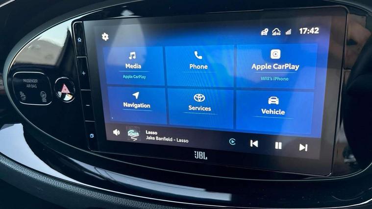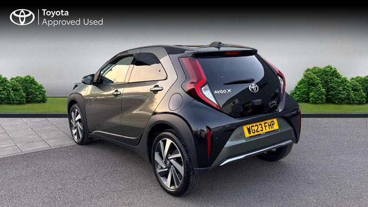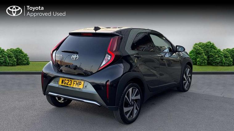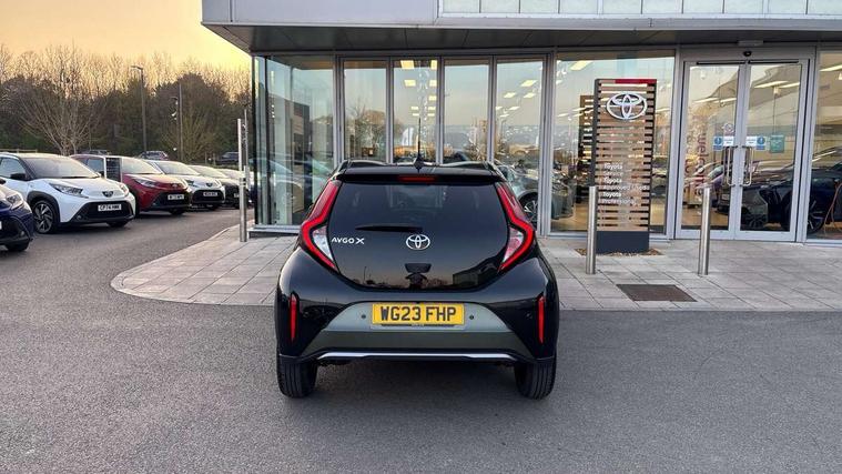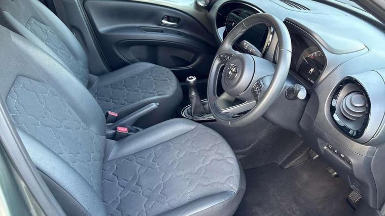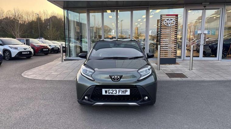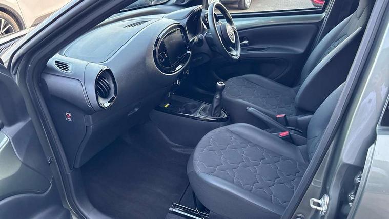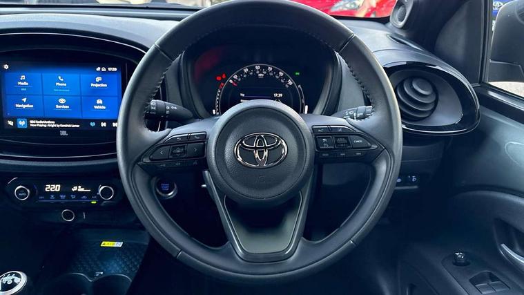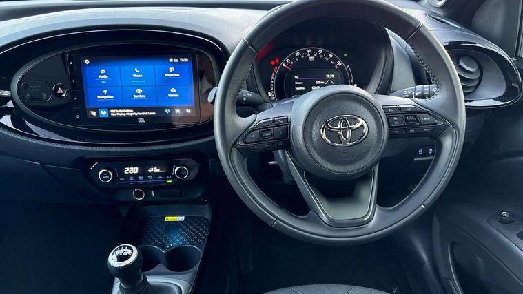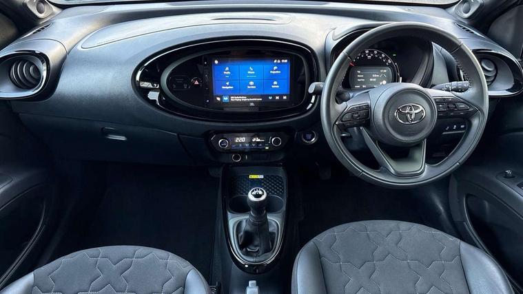 4.2" TFT colour screen, Adjustable speed limiter, Analogue speedometer, Bluetooth connectivity, Digital tachograph, Driver attention alert system, eCall emergency call system, Electric power steering, Front and rear parking sensors with auto brake, Intersection turn assist, Key reminder warning, Noise reduction kit, Pre collision system with emergency steering assist, Remote boot door release on key, Reversing camera with static guide lines, Smart entry and push button start, Speed limit display, Start and stop, Wireless charger, Wireless Smartphone Integration includes Apple CarPlay and Android auto, Vehicle Stability Control (VSC), 4 speakers, 9" HD multimedia display touch screen with Toyota smart connect, DAB digital audio broadcast, USB connector, Auto headlights, Auto wipers, Automatic headlights cut-off, Automatic high beam On/Off switch, Bicycle towing hook, Black fog light surrounds, Black side protection mouldings, Black wheel arch mouldings, Body colour door handles, Body coloured front bumper, Boot door scuff plate, Eclipse black rear bumper, Electric heated door mirrors, Follow me home headlights, Front and rear underruns in silver, Front fog lights, Front power windows, Gloss black door mirrors, Gloss black upper front grille, Headlight cut-off reminder, LED daytime running lights guide, LED front light guide, LED High mounted stop lamp, LED projector headlights, Manual day/night rear view mirror, Manual headlight levelling, Pagoda roof, Power adjustable door mirrors, Power back door, Privacy glass, Rain sensor, Rear combination lights LED bulb type, Rear side wing doors, Rear windscreen defogger, Rear windscreen wiper, Remote hazard lights system, Short antenna, Variable intermittent windscreen wipers, 12v power outlet - front, 2 seat bench in 2nd row, 3 spoke leather steering wheel, 50/50 split folding rear seat, Adhesive roof headlining, Adjustable speed limiter switch on steering wheel, Audio and telephone switches on steering wheel, Auto air conditioning, Black roof lining, Body colour satin anodised insert on steering wheel, Boot light, Centre room light, Chrome interior door handles, Chrome surround on air conditioning buttons, Clean air filter, Console box storage, Floor mats, Front and rear cup holders, Front head rest deco art, Front head restraints, Height adjustable driver seat, Intelligent adaptive cruise control switch on steering wheel, ISOFIX child restraint system on rear seats, Lane departure alert switch on steering wheel, Leather gearshift knob, Light blue ambient lighting in centre console, Manual tilt steering wheel, Manually reclining and sliding driver seat, Manually reclining and sliding front passenger seat, Multimedia switches on steering wheel, Partial synthetic leather upholstery, Pollen filter, Rear door pockets, Rear head restraints, Satin silver insert on gear shift knob, Single compartment glovebox with lights, Single front passenger seat, Soft tonneau cover, Sun visors with mirror on driver and passenger side, Voice recognition switch on steering wheel, Toyota safety sense pack - Aygo X, Anti lock braking system + Electronic brake force distribution, Child safety door lock, Emergency brake light signal (EBS), Hill start assist control (HAC), Passenger airbag on/off switch, Seat belt reminder for front and rear seats, Supplement restraints system (SRS) - 6 airbags, Traction control, Tyre pressure warning system, Immobiliser, Remote power door locks, Black wheel centre caps, Tyre repair kit,