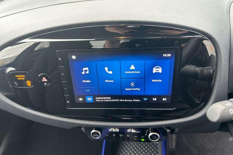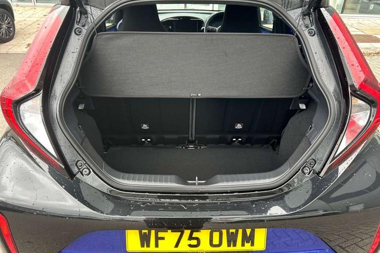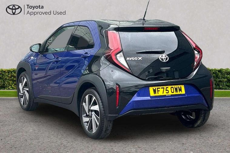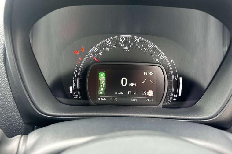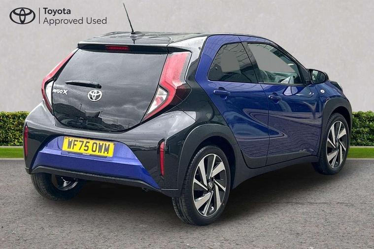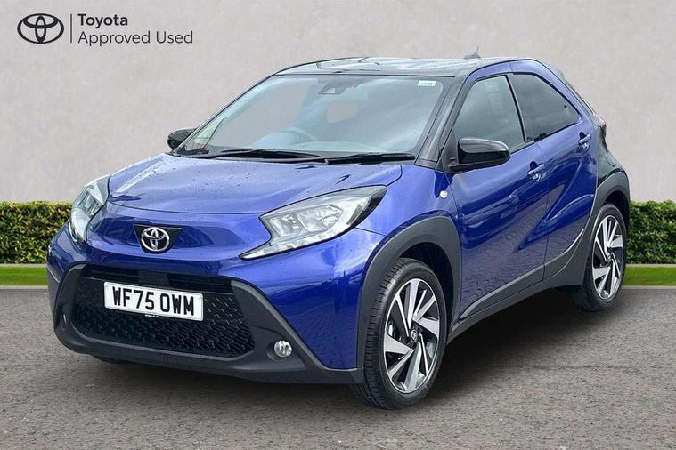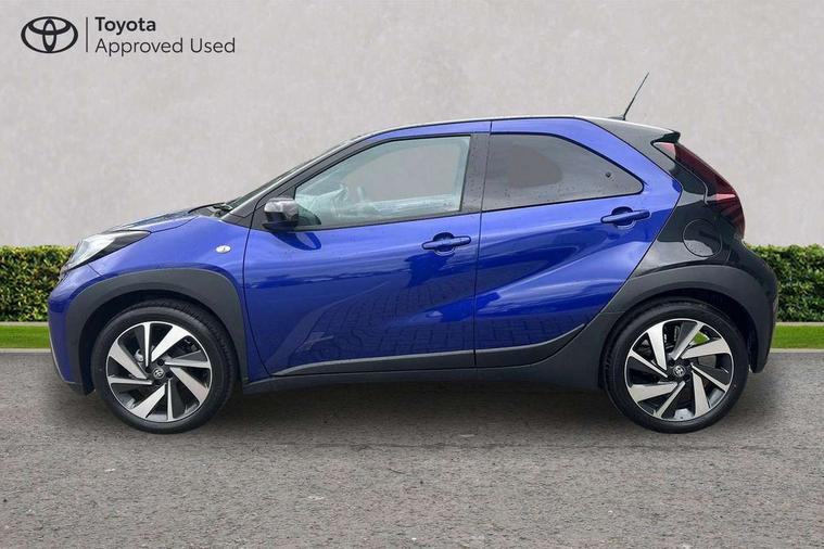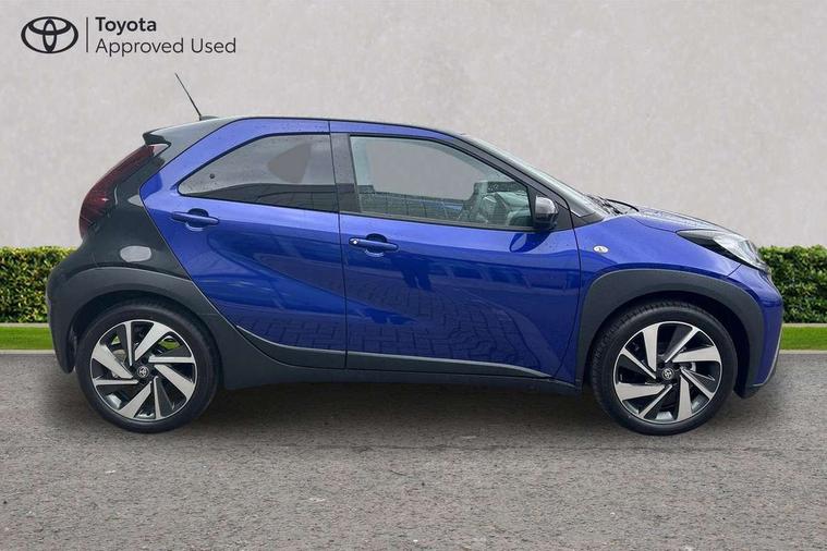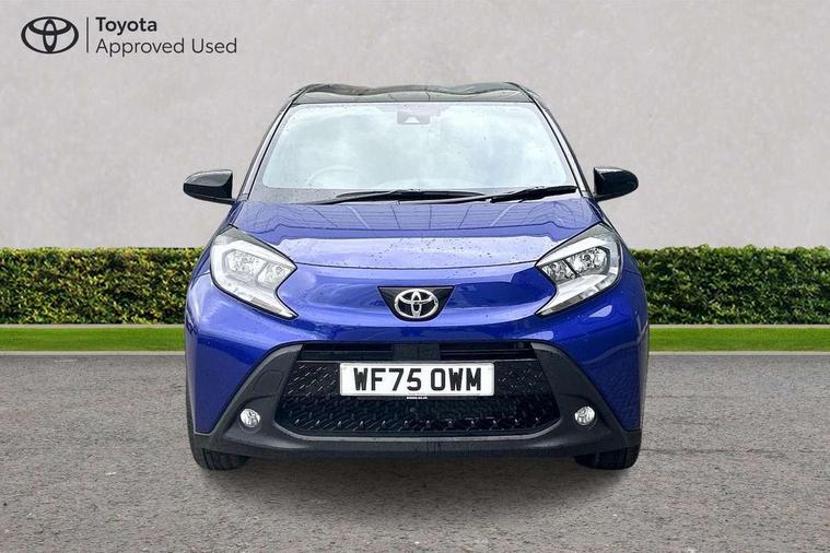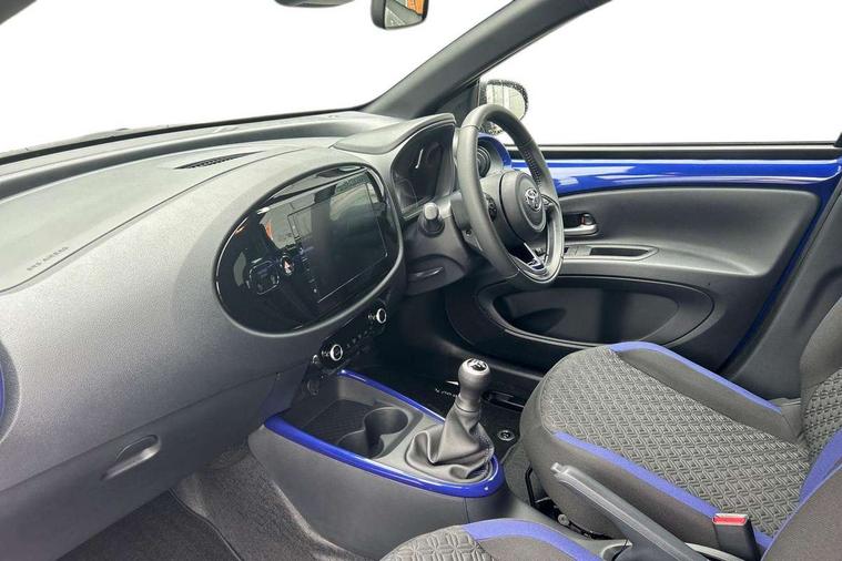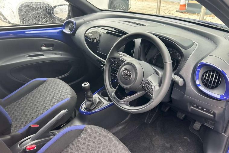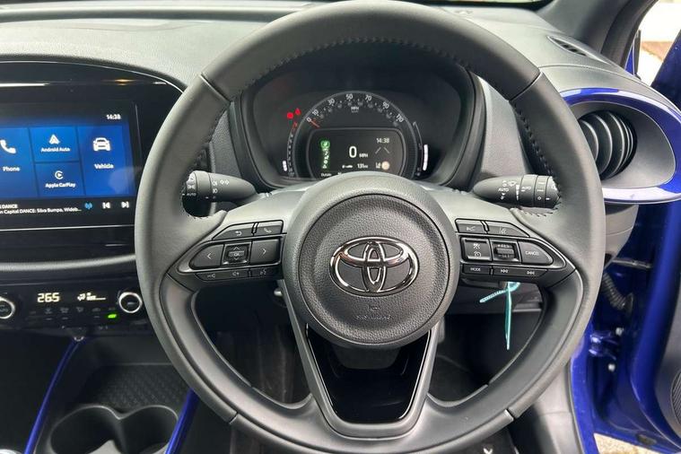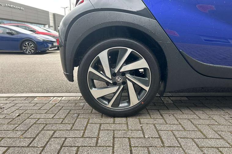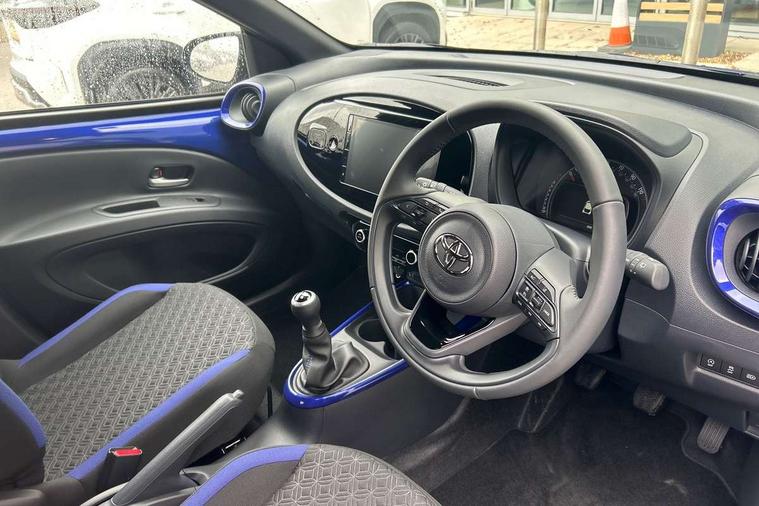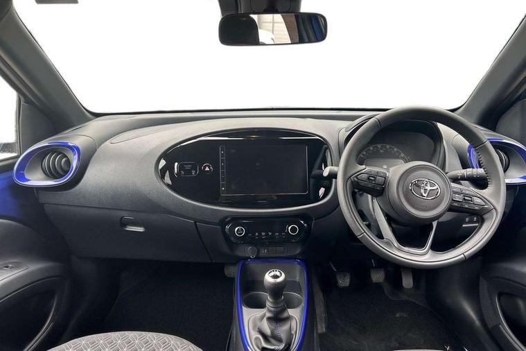 4.2" TFT colour screen, Adjustable speed limiter, Analogue speedometer, Bluetooth connectivity, Digital tachograph, Driver attention alert system, eCall emergency call system, Electric power steering, Intersection turn assist, Key reminder warning, Noise reduction kit, Pre collision system with emergency steering assist, Reversing camera with static guide lines, Smart phone integration with Apple car play/Android Auto, Speed limit display, Start and stop, Vehicle Stability Control (VSC), 4 speakers, 9" HD multimedia display touch screen with Toyota smart connect, DAB digital audio broadcast, USB connector, Auto headlights, Auto wipers, Automatic headlights cut-off, Bicycle towing hook, Black contrast roof, Black side protection mouldings, Black wheel arch mouldings, Body colour door handles, Body coloured front bumper, Boot door scuff plate, Eclipse black rear bumper, Electric heated door mirrors, Follow me home headlights, Front fog lights, Front power windows, Gloss black door mirrors, Gloss black upper front grille, Headlight cut-off reminder, LED daytime running lights, LED front light guide, LED High mounted stop lamp, Manual day/night rear view mirror, Manual headlight levelling, Pagoda roof, Power adjustable door mirrors, Power back door, Privacy glass, Projector halogen headlights, Rain sensor, Rear combination lights LED bulb type, Rear side wing doors, Rear windscreen defogger, Rear windscreen wiper, Short antenna, Variable intermittent windscreen wipers, 12v power outlet - front, 2 seat bench in 2nd row, 3 spoke leather steering wheel, 50/50 split folding rear seat, Adhesive roof headlining, Adjustable speed limiter switch on steering wheel, Audio and telephone switches on steering wheel, Auto air conditioning, Black insert on steering wheel, Black roof lining, Boot light, Centre room light, Chrome interior door handles, Chrome surround on air conditioning buttons, Clean air filter, Console box storage in body color, Fabric upholstery, Floor mats, Front and rear cup holders, Front head rest deco art, Front head restraints, Height adjustable driver seat, Intelligent adaptive cruise control switch on steering wheel, ISOFIX child restraint system on rear seats, Lane departure alert switch on steering wheel, Leather gearshift knob, Manual tilt steering wheel, Manually reclining and sliding driver seat, Manually reclining and sliding front passenger seat, Multimedia switches on steering wheel, Pollen filter, Rear door pockets, Rear head restraints, Satin silver insert on gear shift knob, Single compartment glovebox with lights, Single front passenger seat, Soft tonneau cover, Sun visors with mirror on driver and passenger side, Voice recognition switch on steering wheel, Toyota safety sense pack - Aygo X, Anti lock braking system + Electronic brake force distribution, Child safety door lock, Emergency brake light signal (EBS), Hill start assist control (HAC), Passenger airbag on/off switch, Seat belt reminder for front and rear seats, Supplement restraints system (SRS) - 6 airbags, Traction control, Tyre pressure warning system, Immobiliser, Remote power door locks, Black wheel centre caps, Tyre repair kit,