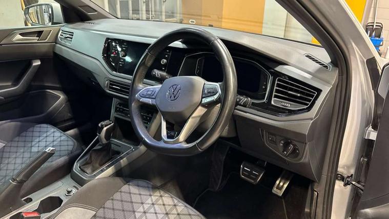 Adaptive cruise control with follow-to-stop and speed limiter, Advanced driver attention and drowsiness monitor, Bluetooth mobile phone interface, Digital Cockpit Pro with 10.25" Display, Dynamic road sign display, Emergency call service, Power assisted speed sensitive steering, Preparation for We connect and We connect plus, Speedo and rev counter, electronic odometer, trip, service interval display and fuel gauge, Standard rear axle, Travel Assist - Lane keeping system and traffic jam assist, Travel assist including emergency assist, Trip computer, Warning signal and warning light for front and rear seatbelts not fastened, Washer fluid level indicator, Wireless app connect, Front wheel drive, Rear shock absorpion, Start-stop system with battery regeneration (recuperation - energy recovery during braking), DAB Digital radio, Diversity antenna for FM reception, Front and rear 6 speakers, Body colour bumpers, Body colour door handles, Electric front windows, Front scuff plates with R-Line logo, Heat insulating darkened glass in side and rear windows, Heat insulating glass windscreen, Power folding adjustable/heated exterior mirrors and front passenger exterior mirror lowering function, Rear electric windows, Rear fog light, Rear side wing doors, Rear windscreen washer and wiper with interval delay, Third brake light, 12V power socket in centre console, 2 USB-C ports in the front, 2 USB-C charging sockets on the center console in the rear, 3 rear head restraints, 60/40 split folding rear seat and rear seat bench not split, Air care climatronic air conditoning system with active combination filter and 2-zone temperature control, Black roof lining, Chrome plated radiator grille inserts, air vent surrounds and light switch surrounds, Door and side trim panel, Driver and front passenger seat height adjustment, Driver/passenger sunvisors with illuminated vanity mirrors, Front + rear carpet mats in recycled material, Front centre armrest, Front footwell illumination, Front seat backrest storage pockets, Front sports comfort seats, Handbrake lever handle in leather, Headliner in recycled material, Isofix child seat preparation easy-fit (for two outer rear seats, and front passenger seat) compatible with I-size, Karoso artvelours cloth upholstery, Leather trimmed gear knob, LED interior light with switch off delay and dimmer, 2 reading lights front and rear, Luggage compartment cover, Luggage compartment floor, Luggage compartment lighting, Lumbar adjustment for front seats, Single front passenger seat, Stainless steel pedals, Standard pedal cluster, Three spoke leather wrapped multifunction steering wheel with shifting paddles, Light and sight pack - Polo R-Line/Black Edition, 3 point height adj front seatbelts + pretensioners, 3x3 point rear seatbelts, ABS, Driver and front passenger airbag with front passenger airbag deactivation, Drivers and front passengers safety optimised head restraints, ESC (Electronic stability control) + EDL (Electronic Differntial lock) and ASR (Traction control), Extended and predictive pedestrian/ cyclist protection, Front curtain and side airbags with center airbag, Hill hold control, Manual child lock in rear doors, Single tone horn, Tyre pressure loss indicator, Alarm with interior protection, Anti-theft alarm system with interior monitoring, backup horn, and towing protection, Anti-theft wheel bolts, Electronic engine immobiliser, Chrome applications on rotary light, mirror adjustment, window regulator switches, outlet with frame in black, Dark grey anodised matt decorative inserts in dash and front door panels, Low rolling resistance tyres,