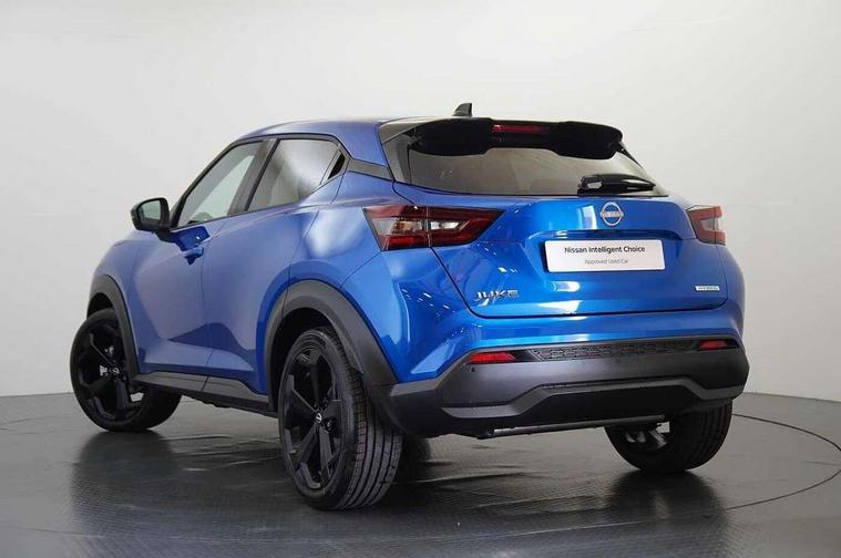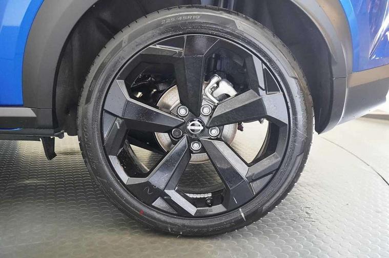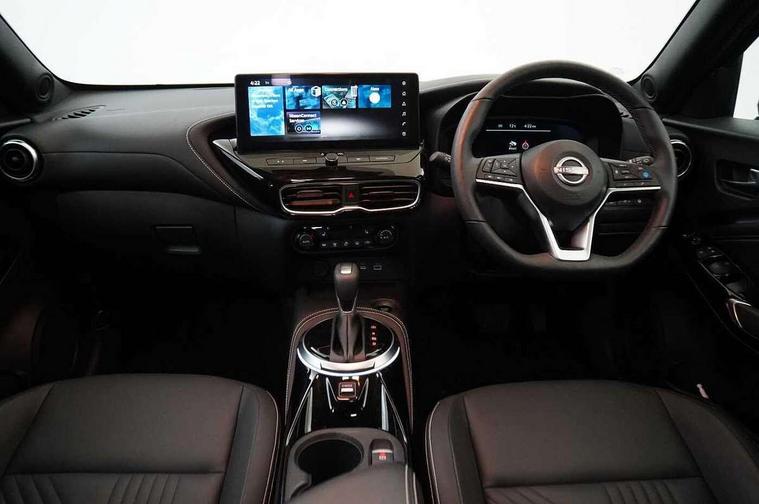 12.3" full colour TFT screen combimeter, Drive modes select (Eco, normal and sport), e-Pedal step, Emergency and breakdown call, EV mode switch, Front parking sensor, Intelligent driver alert system, Intelligent lane intervention, Lane departure warning system, Nissan connect 12.3" touch screen entertainment system, Nissan connect nav with TomTom traffic, Nissan connect services, Outside temperature sensor, Power Steering, Rear parking sensor, Stop/start button, Traffic sign recognition, Trip computer, Voice recognition, WiFi connectivity, Wireless Apple CarPlay and Google Android auto, Wireless Smartphone charger, 10 Bose speakers 6 speakers and 2 headrest speakers for driver/passenger seats, 2 X Rear console USB port, Bluetooth system, USB, Aux-in and 12V socket, Bose personal sound stage control, DAB Digital radio, Auto dimming frameless rear view mirror, Automatic hazard signal with emergency stop signal, Body colour door handles, Electrically adjustable door mirrors with integrated indicators, Follow me home headlights, Front and rear electric window with one touch driver window, Heated and auto folding door mirrors, High beam assist, LED 3rd brake light, LED daytime running lights, LED front fog lights, LED headlamps, LED rear fog lamp, LED rear lamps, One touch passenger window, Rain sensor windscreen wipers, Rear privacy glass, Rear side wing doors, Rear wiper, Roof spoiler, Shark fin roof antenna in solid Black, Three blink turn signal, 3 height adjustable rear headrests, 3 seat bench in 2nd row, 60/40 split folding rear seat, Automatic climate control, Card holder on driver sunvisor, Door ambient lighting, Driver seat back pocket, Driver side rear coat hanger, Driver/passenger sunvisors and vanity mirrors, Front and rear cabin lights, Front armrest, Front door pockets with bottle holders, Front head restraints, Front/rear passenger grab handles, Gear console ambient circle lighting, Height adjustable driver's seat, Internal chrome door handles, Leather gearshift knob, Luggage board, Luggage space lighting, Monoform sporty seats, Multifunction steering wheel, Passenger seat back pocket, Rear door bottle holders, Single front passenger seat, Smooth synthetic leather steering wheel, Synthetic leather kneepad, Synthetic leather upholstery, Telescopic steering wheel adjustment, Two cupholders in front centre console, Two rear isofix child seat anchorage points with top tether, Welcome light and console tray ambient lighting, Heat pack with height adjustable passenger seats - Juke, ProPilot pack - Juke Auto, ABS with EBD and brake assist, Active ride control, Active Trace Control, Driver and passenger airbags, Driver and passenger side airbags, Electric handbrake with auto hold function, Electronic Stability Programme (ESP), Front and rear curtain airbags, Height adjustable seatbelts, Hill start assist, Intelligent emergency braking with pedestrian and cyclist recognition, Rear door child safety locks, Seatbelt reminder for driver/front passenger and rear seats, Three 3 point rear seatbelts, Traction control, Tyre pressure monitoring system, VDC Dynamic Vehicle Control, Alarm, Immobiliser, Intelligent key and start push button with walk away lock and approach unlock functions, Remote central locking, 19" Alloy wheels, Tyre puncture repair kit,